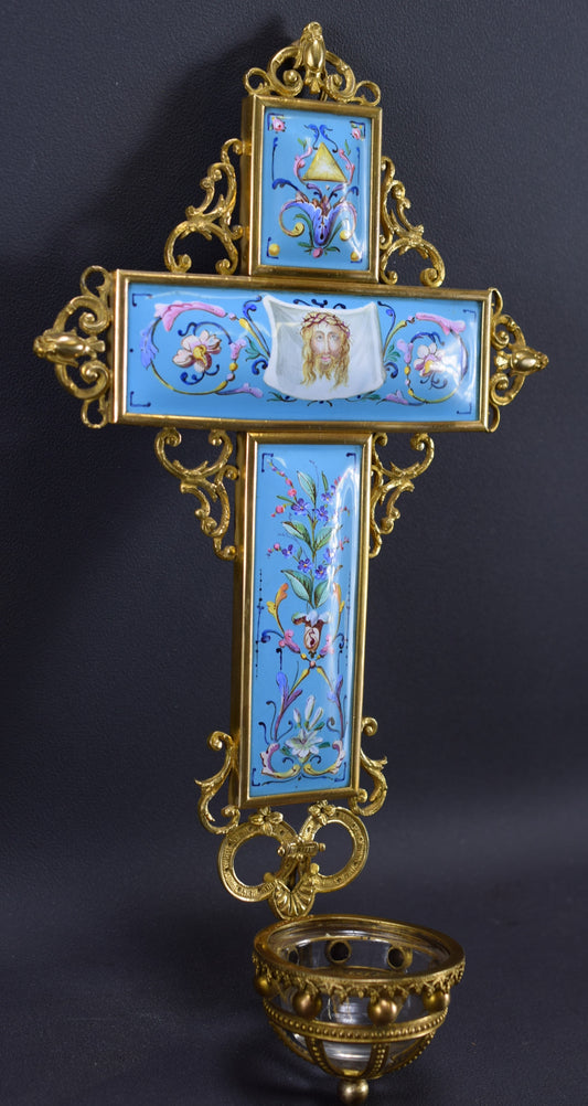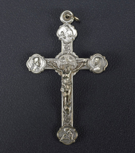 A selection of antique and vintage Catholic gifts: medals, rosaries, crosses, holy water fonts etc