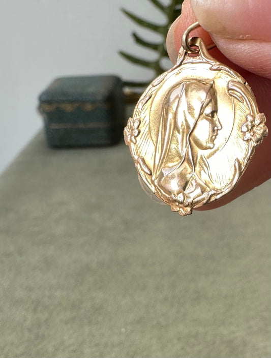 En venteArt Nouveau 18K Gold Mary Pendant