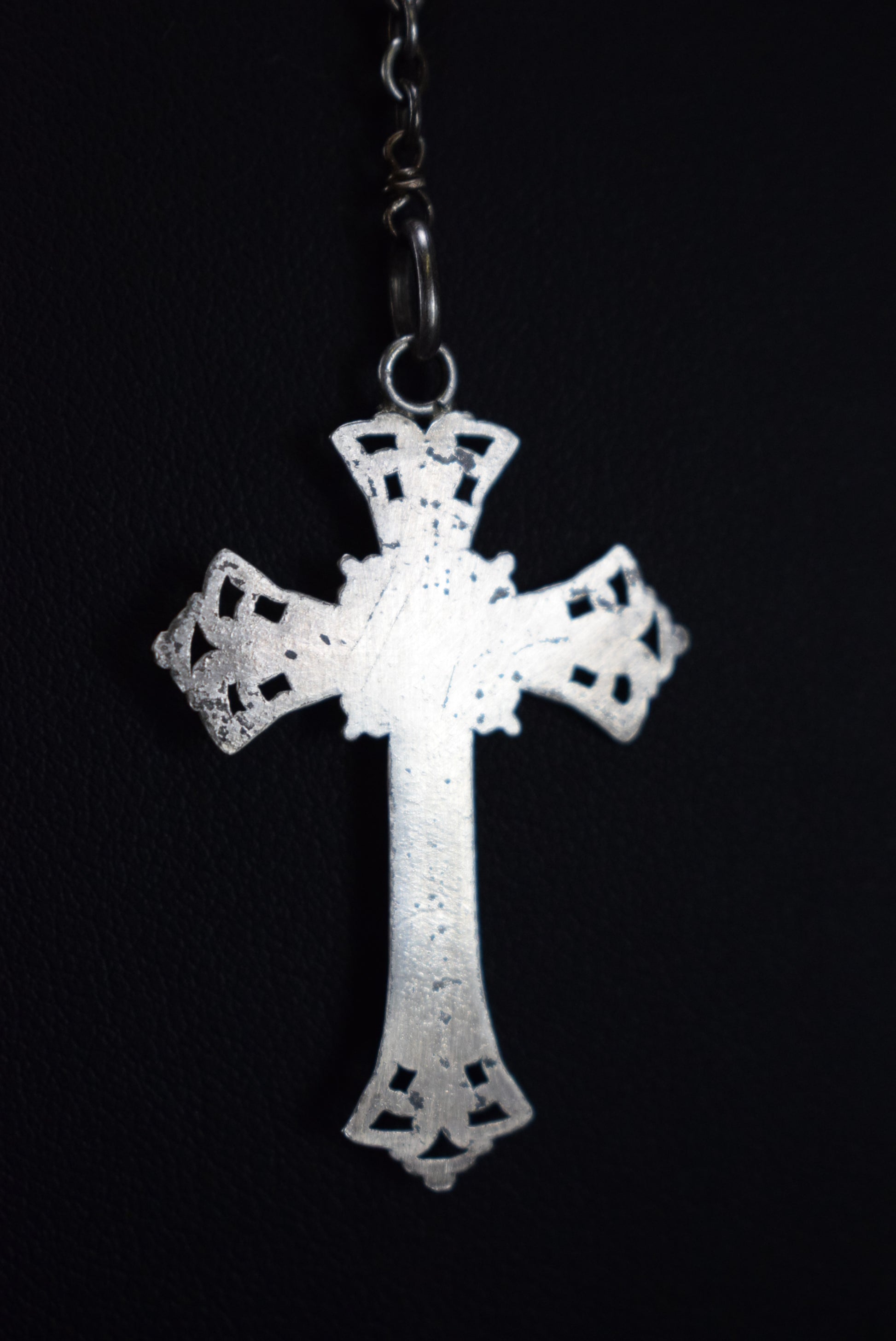 La chaîne et la pièce maîtresse portent le poinçon français en argent sterling, et non le crucifix.