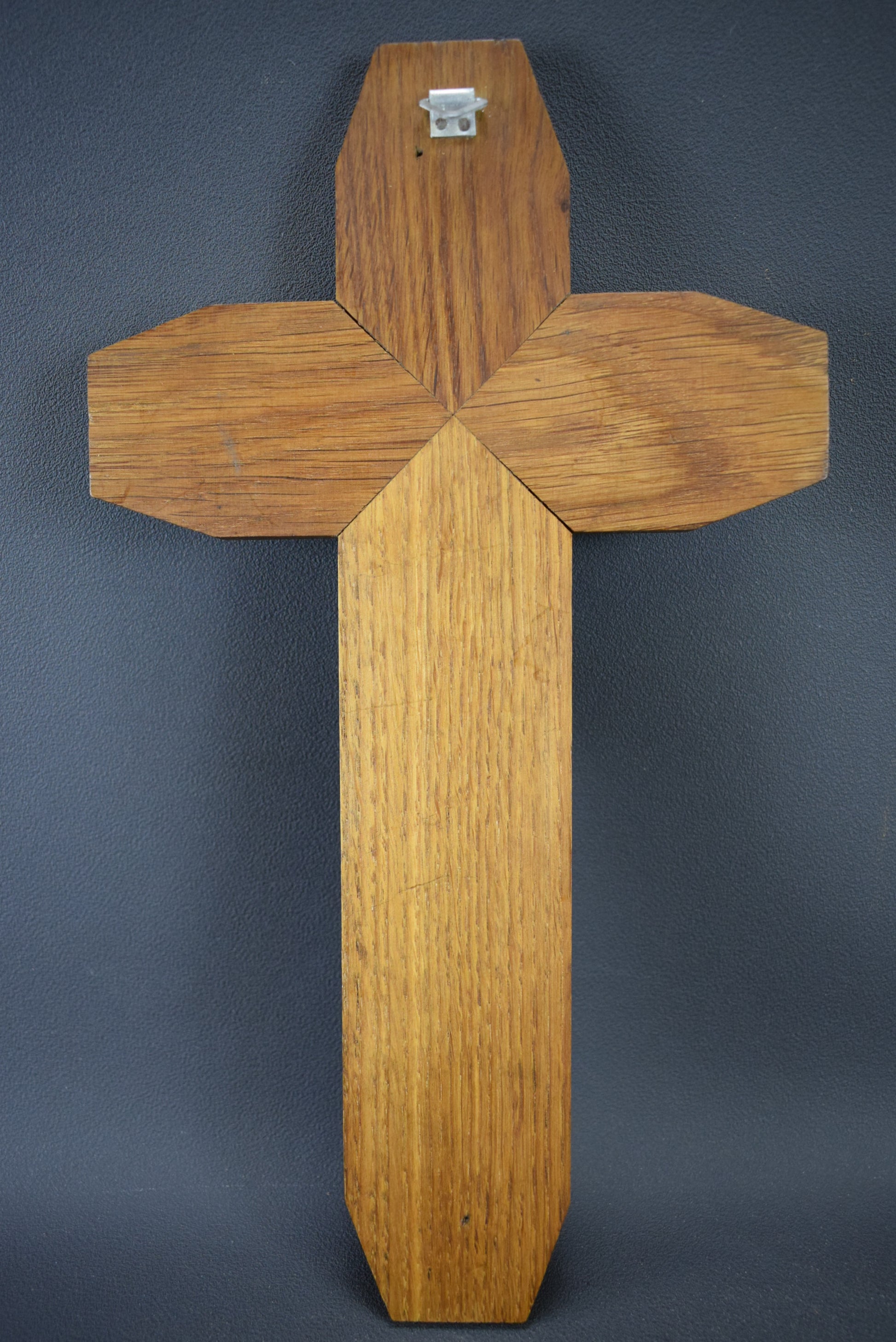 Le crucifix mural est en bon état vintage avec quelques signes normaux du temps.