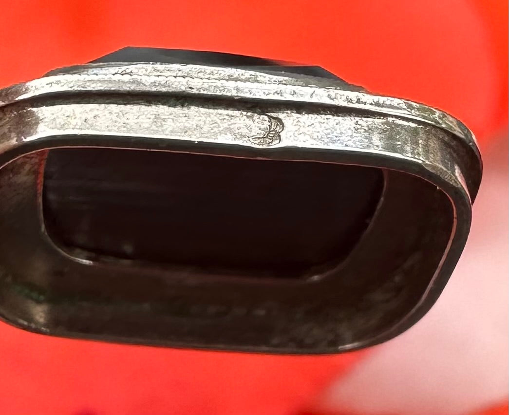 The square faceted hematite stone has been set in a sterling silver mount, adorned all around with small faceted marcasites.