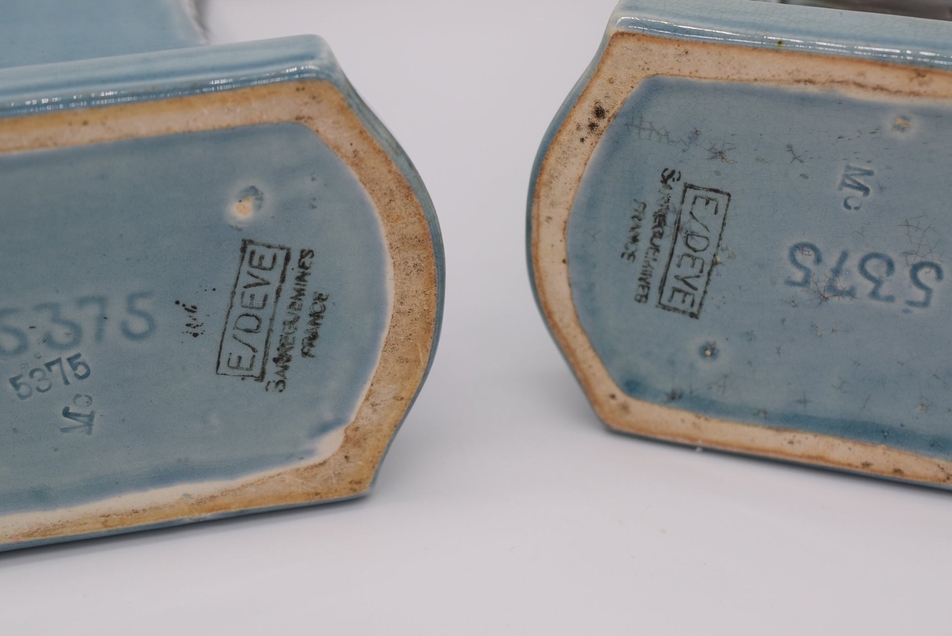 Each piece in this set is marked with the Esdeves Sarreguemines hallmark, confirming their authenticity and craftsmanship.