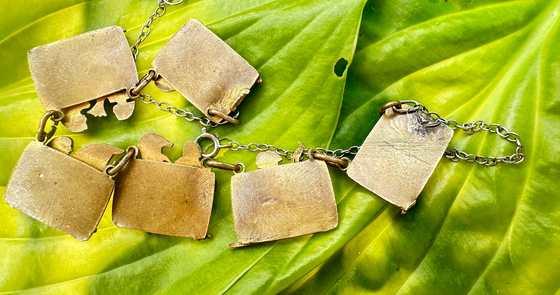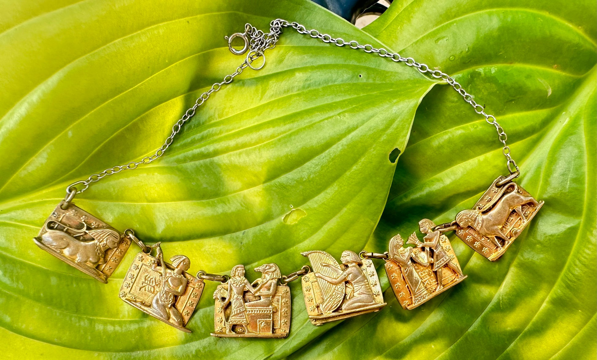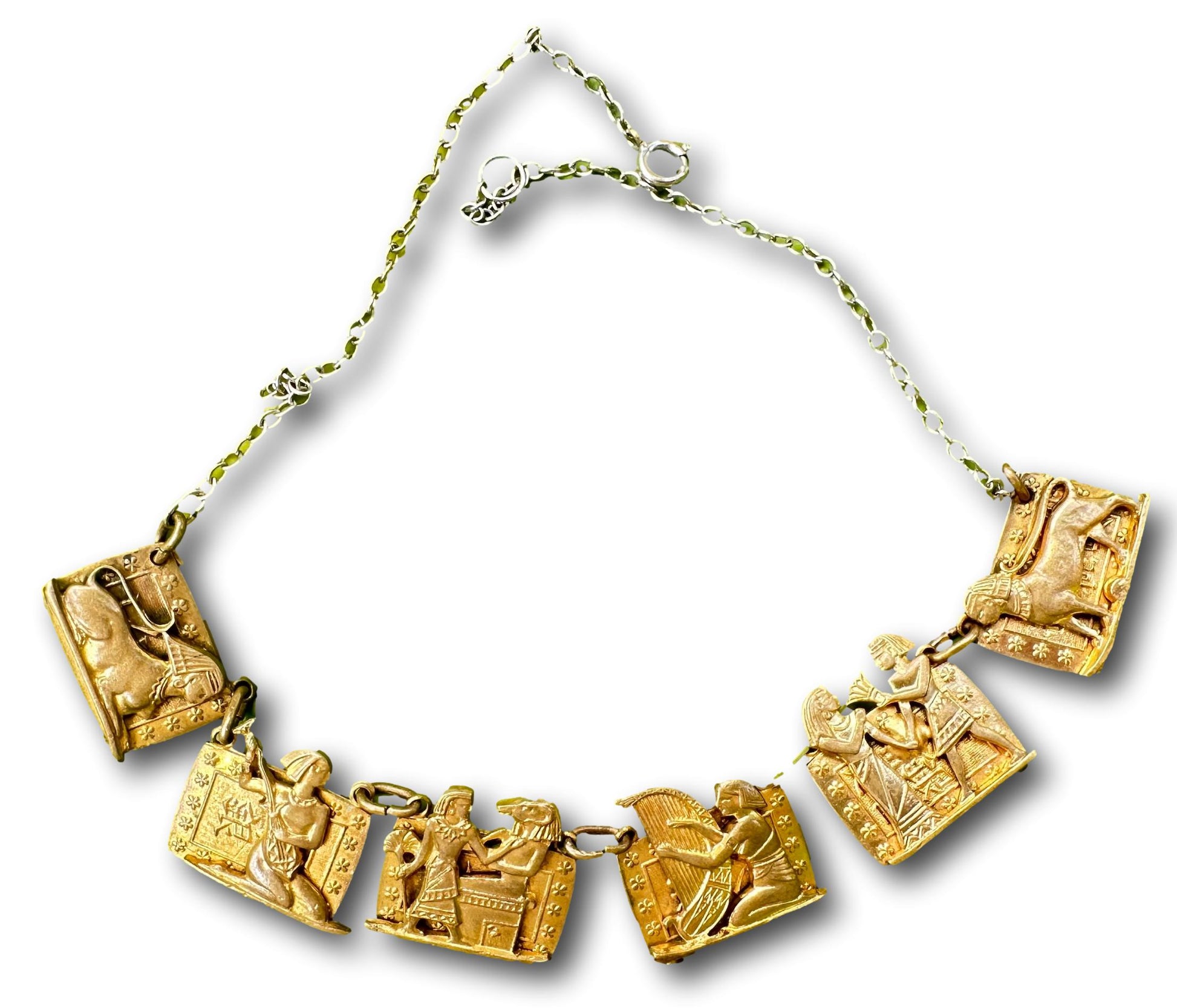 Egyptian Revival Necklace, Vintage Gilded Brass Choker