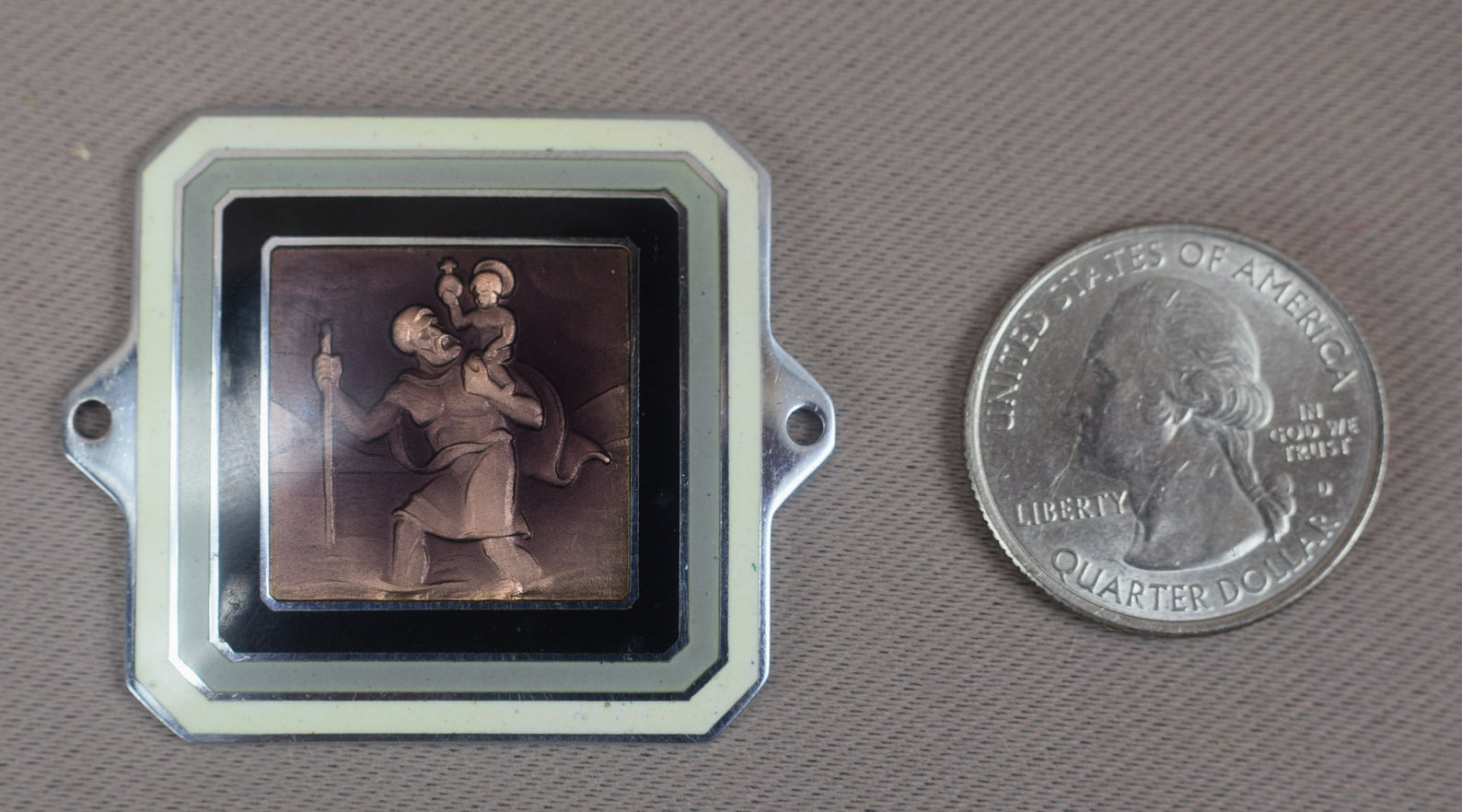 Cette plaque catholique provient du stock d'un ancien bijoutier.
