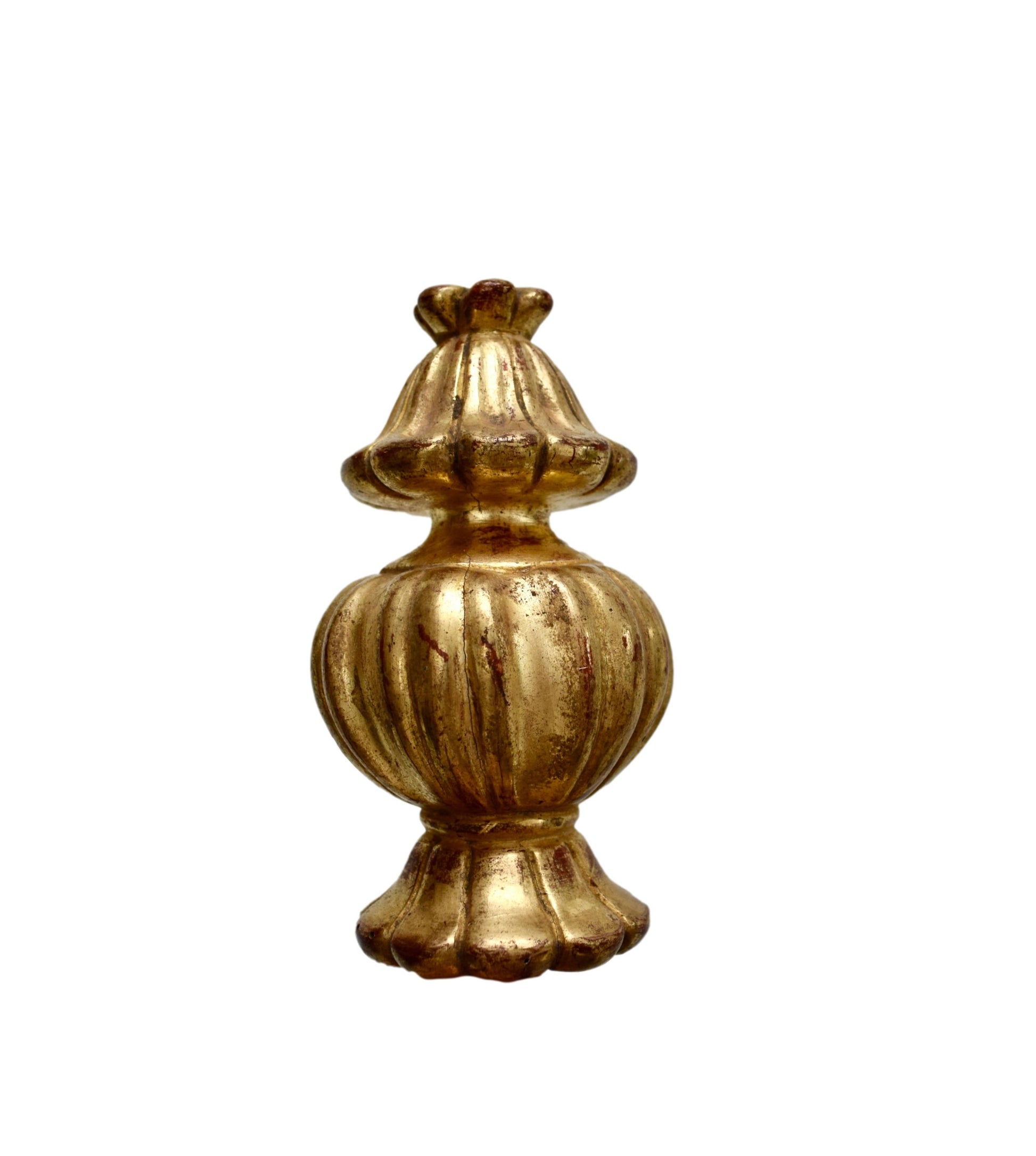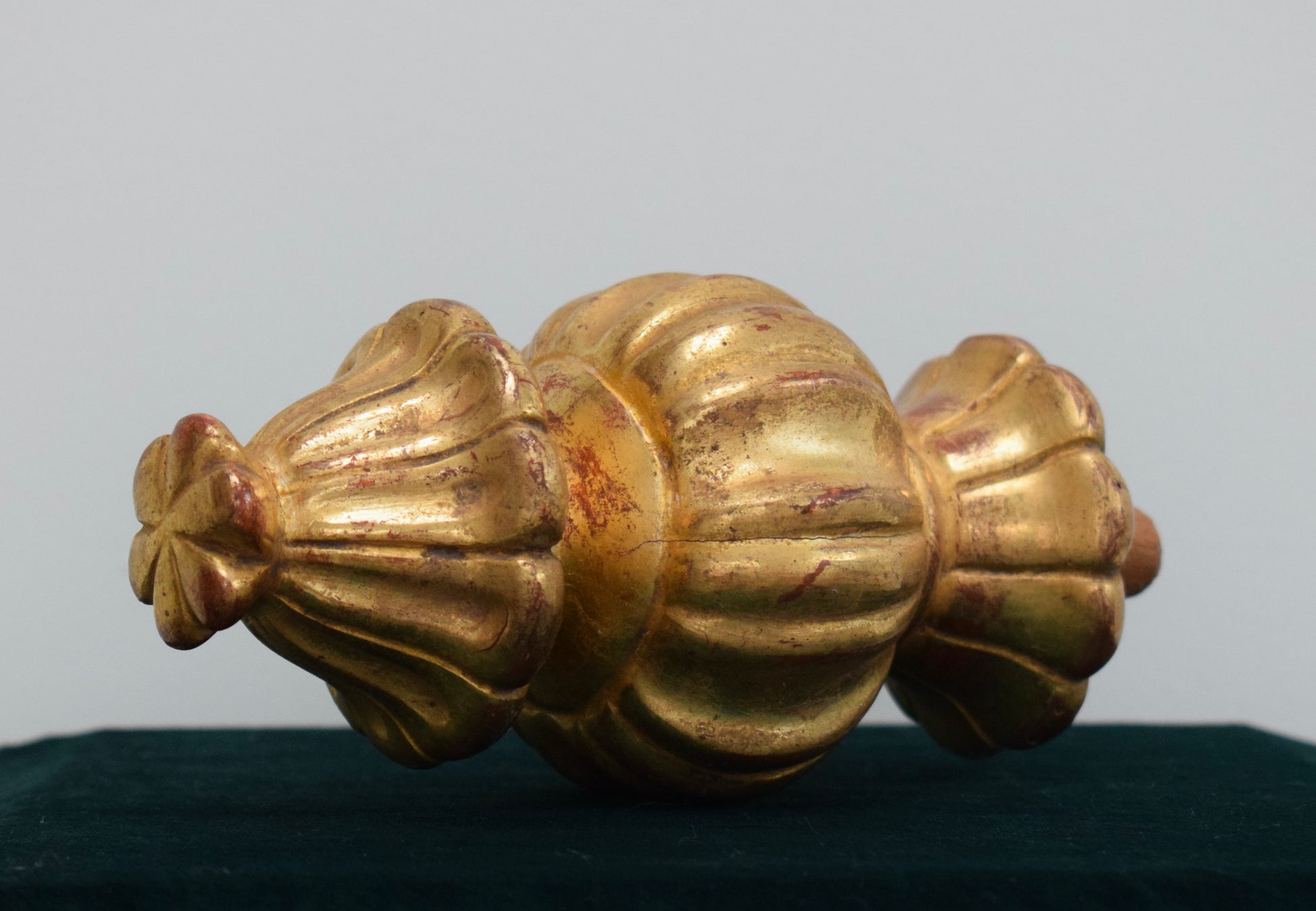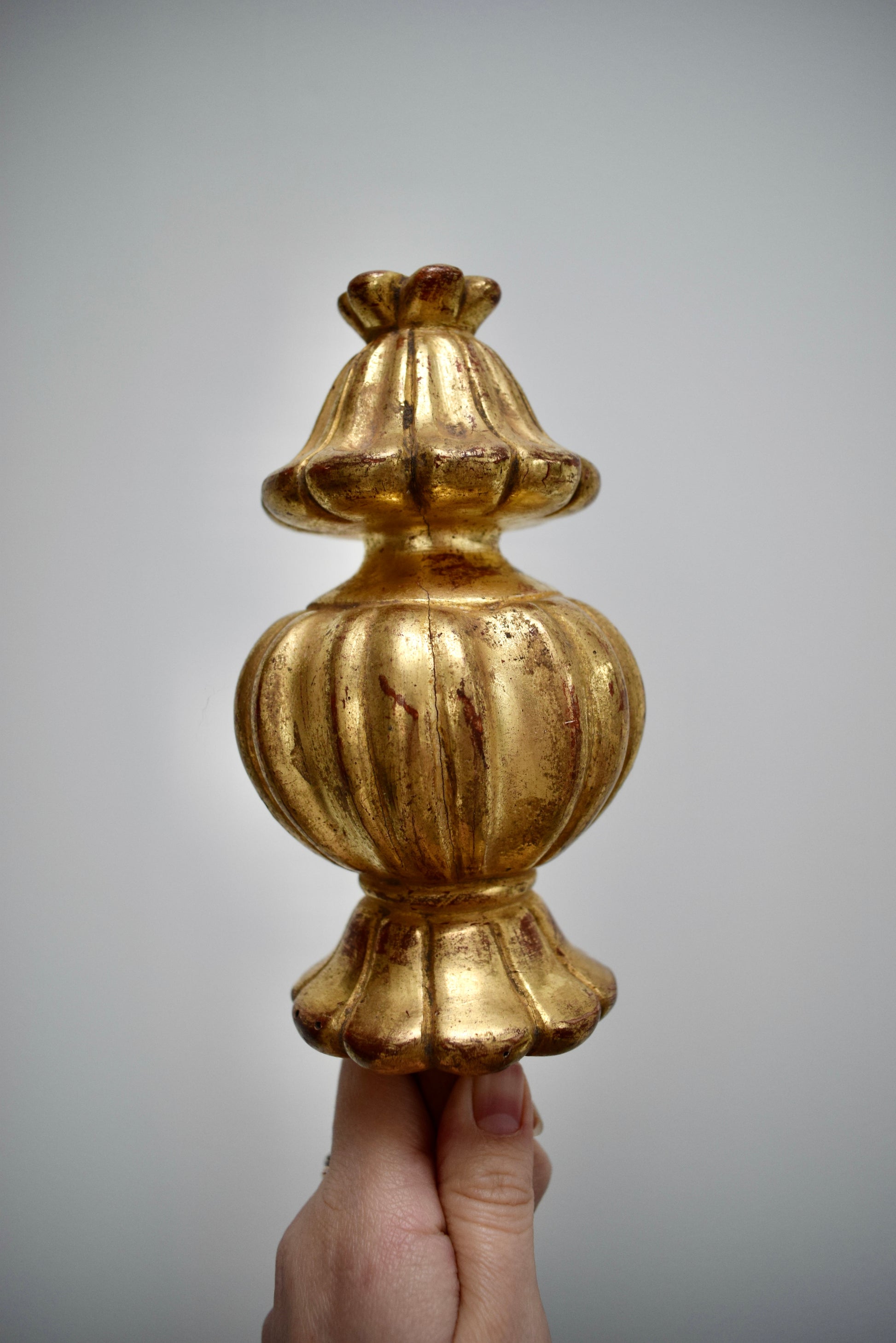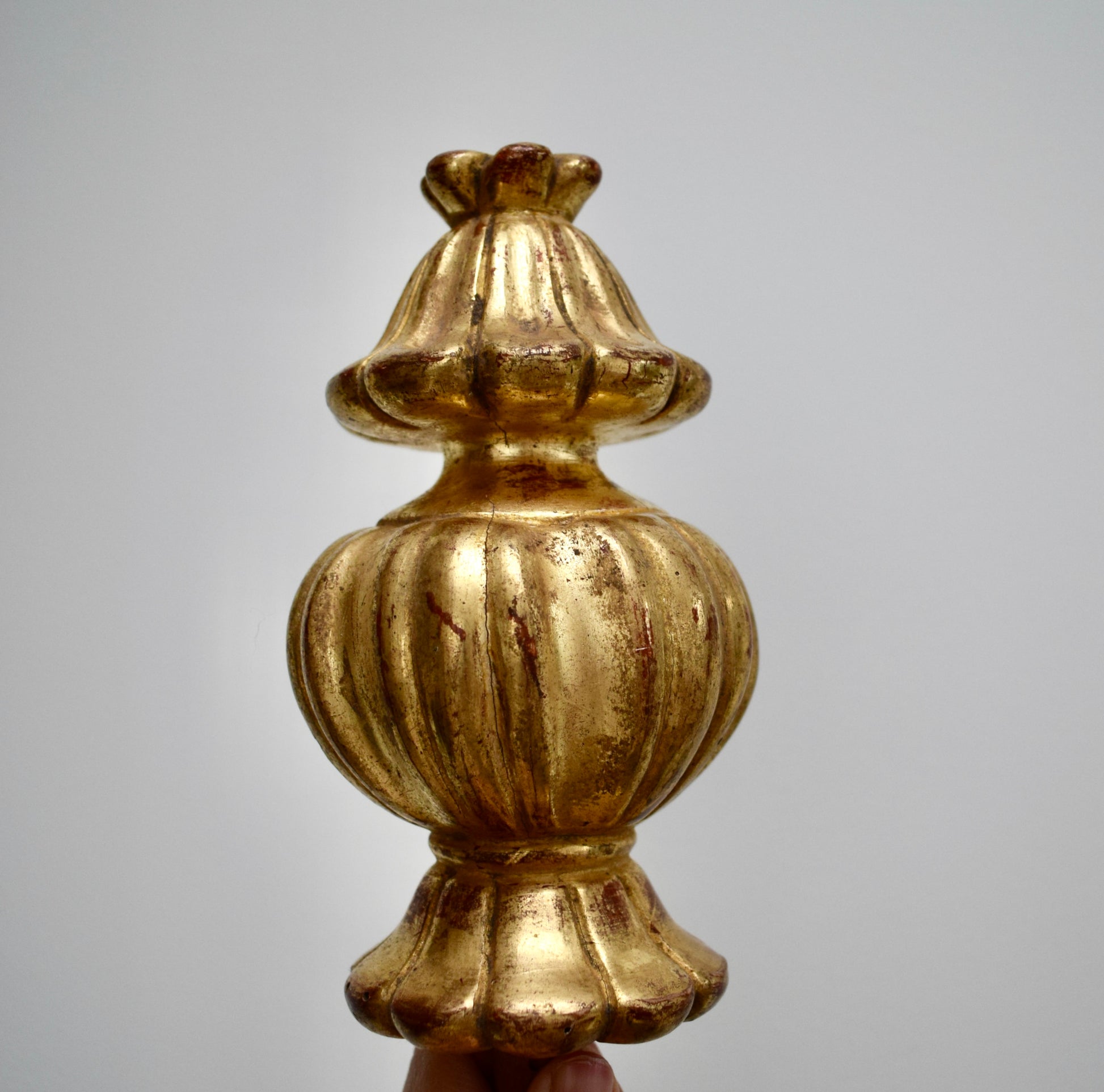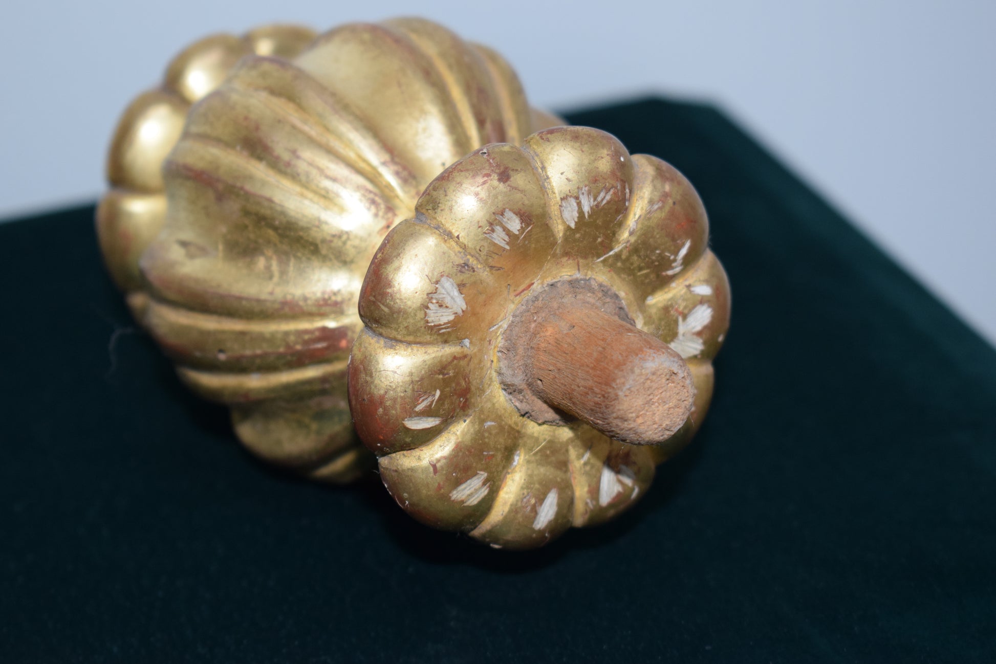 Il s'agit d'un superbe embout de poteau d'escalier/embout de meuble/embout de tringle à rideau en bois doré, datant du milieu du 19ème siècle, vers 1850. Design élégant et somptueux qui apportera une touche de château français. Ce fleuron tourné à la main pourrait être utilisé au sommet d’un poteau au pied d’un escalier.