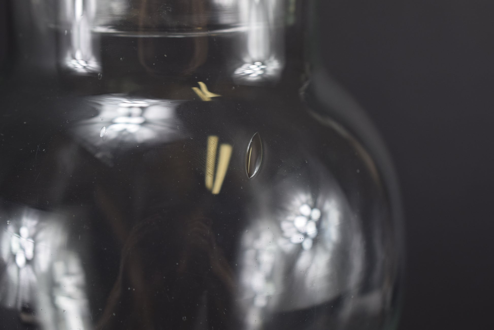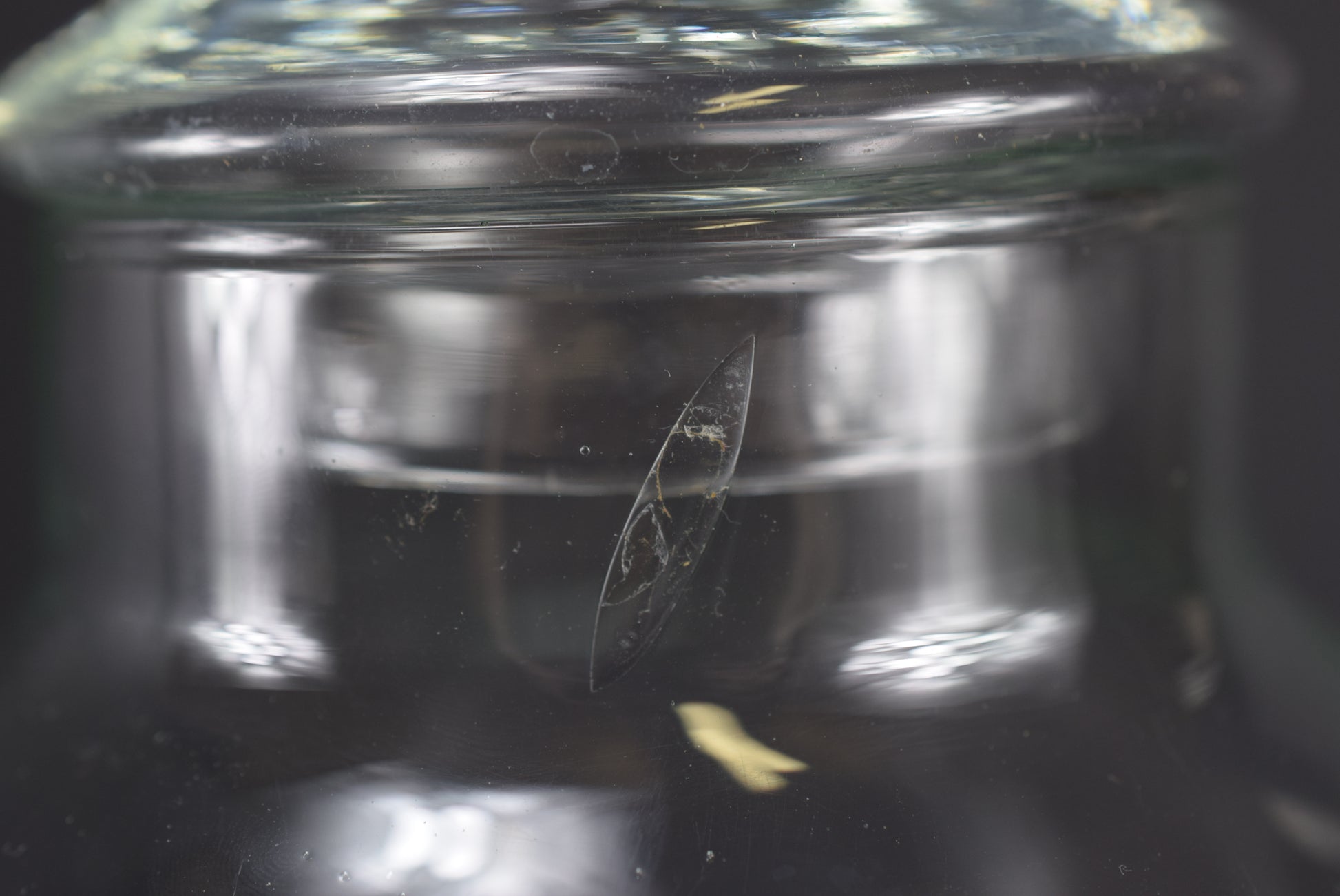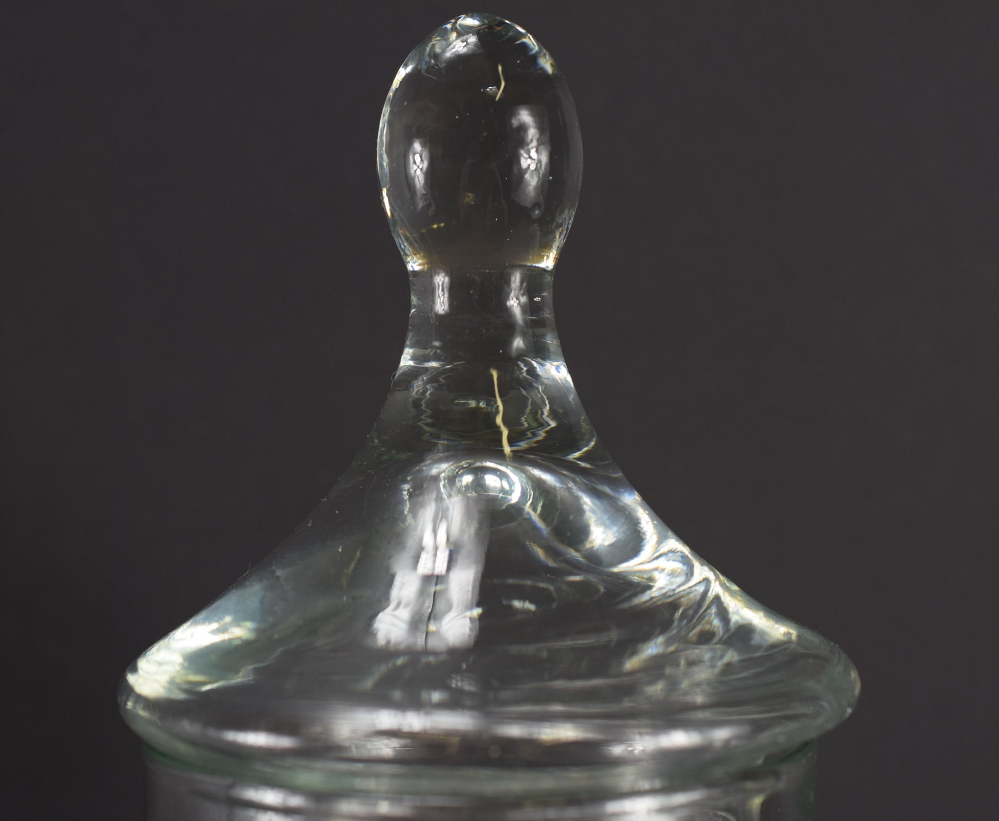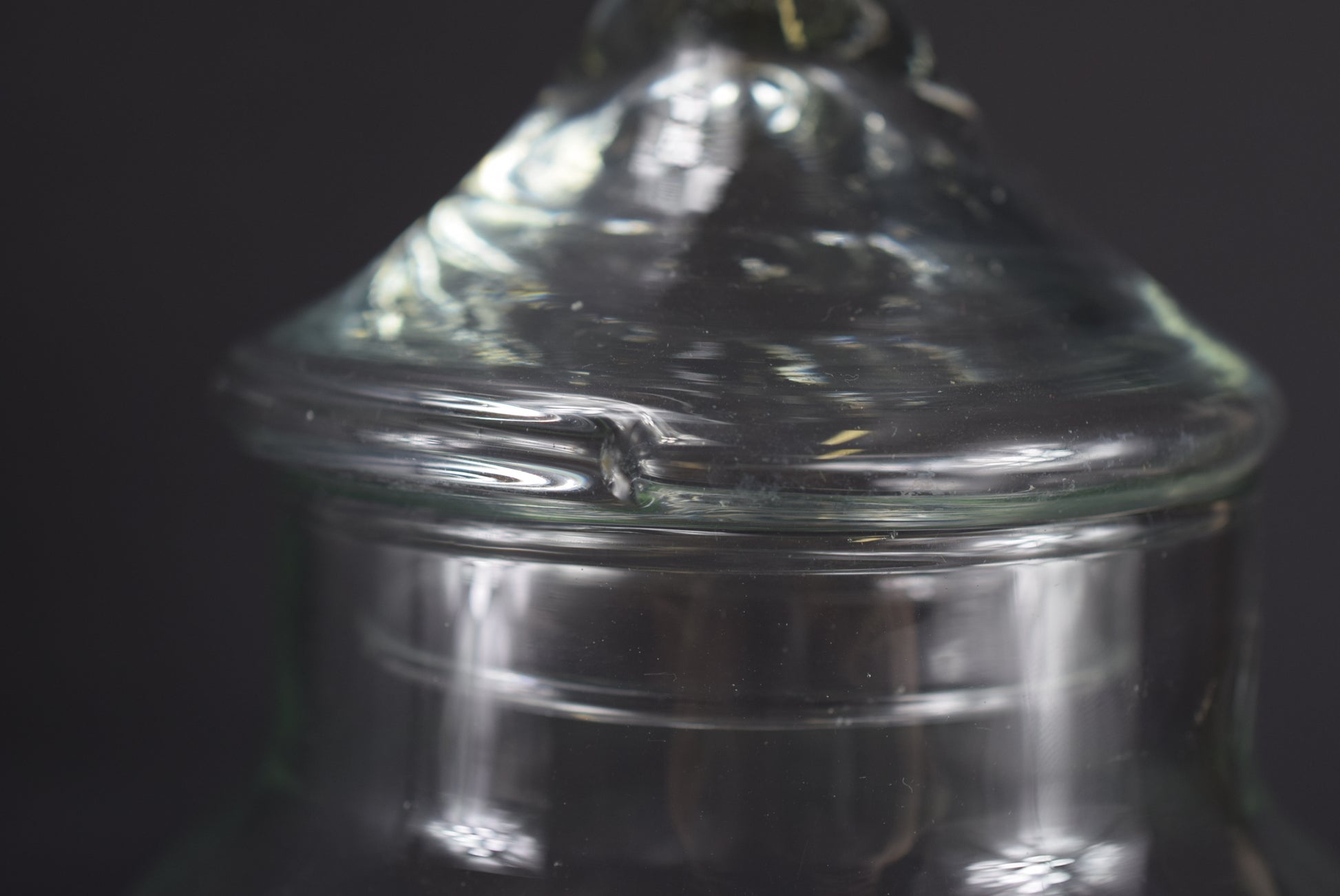 Un charmant pot en verre soufflé à la main datant de la fin du 19ème siècle. Ce pot d’exposition d’apothicaire ou pot de bonbons et de bonbons mesure 14 1/8 pouces de haut.
