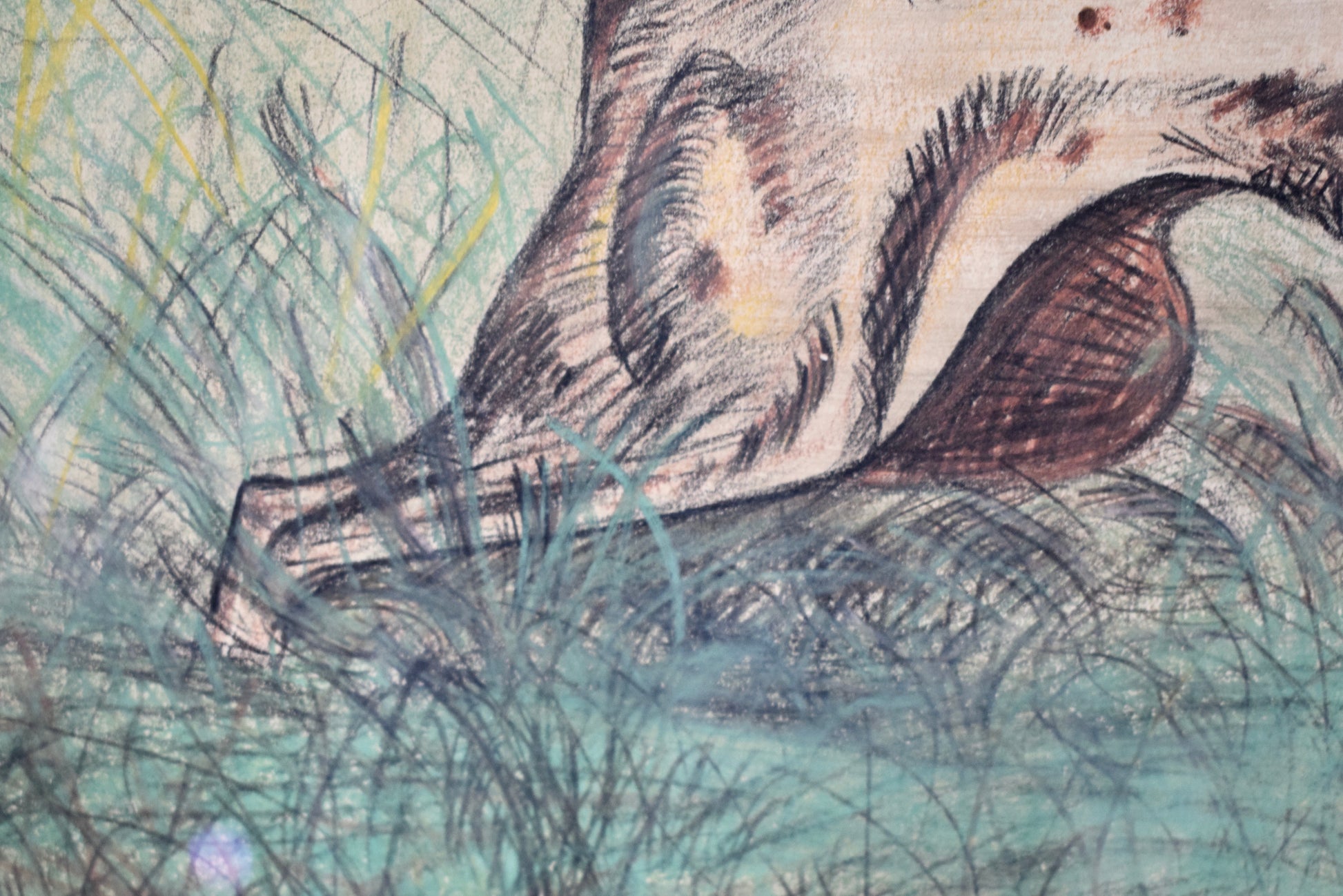 Il s’agit d’un magnifique pastel vintage français datant des années 1960. La belle photo présente un beau portrait de chien d’arrêt français. Le cadre est en chêne.