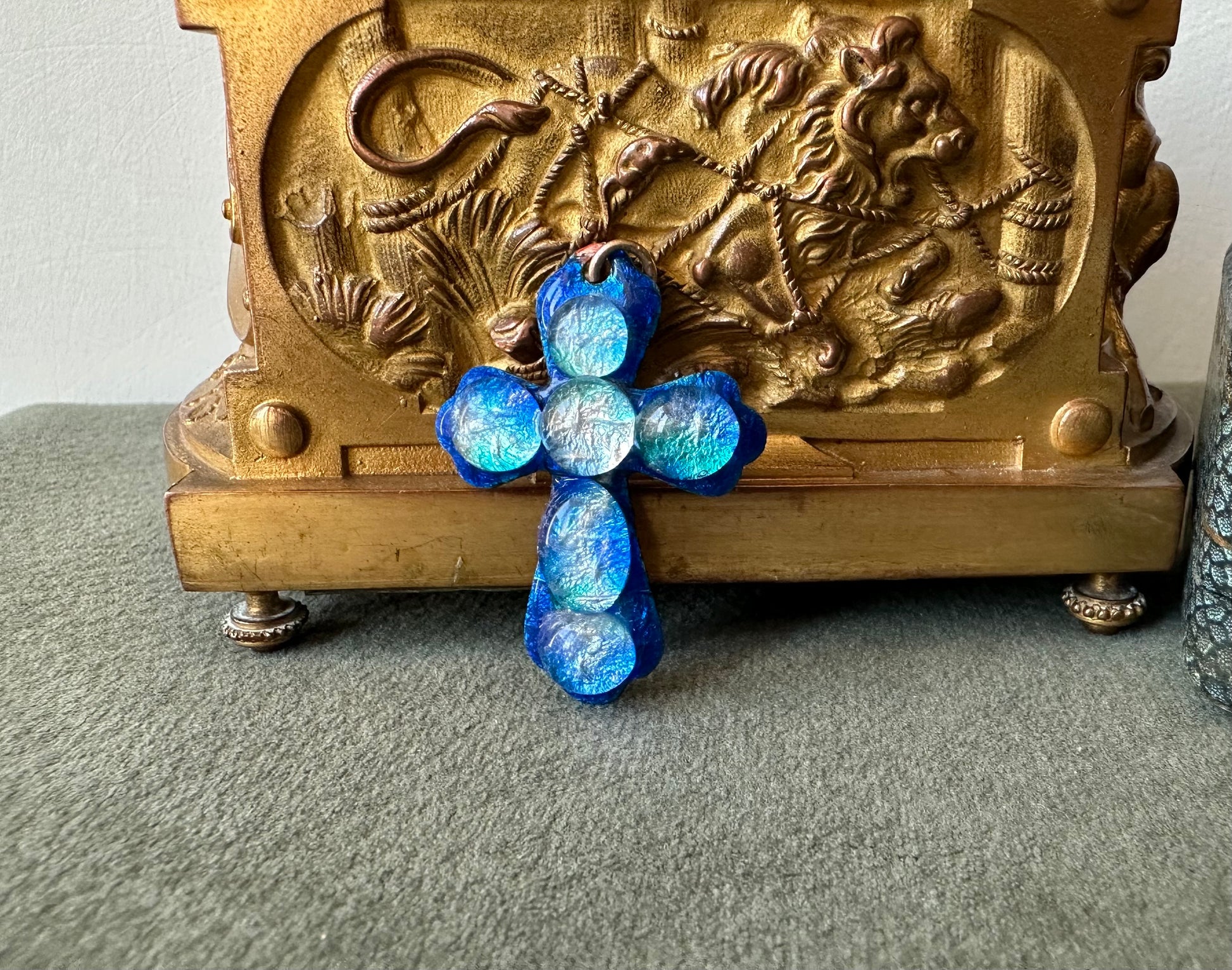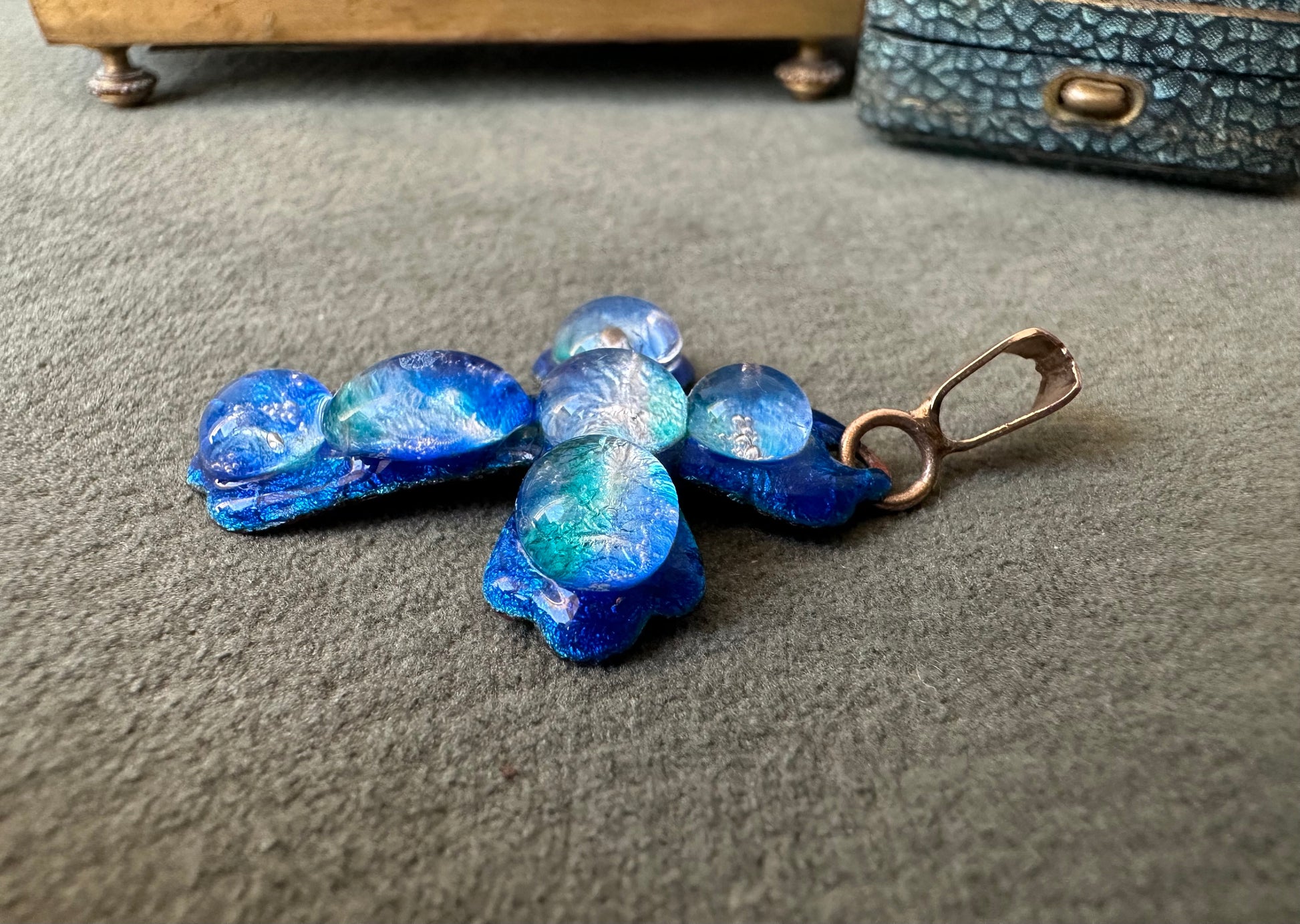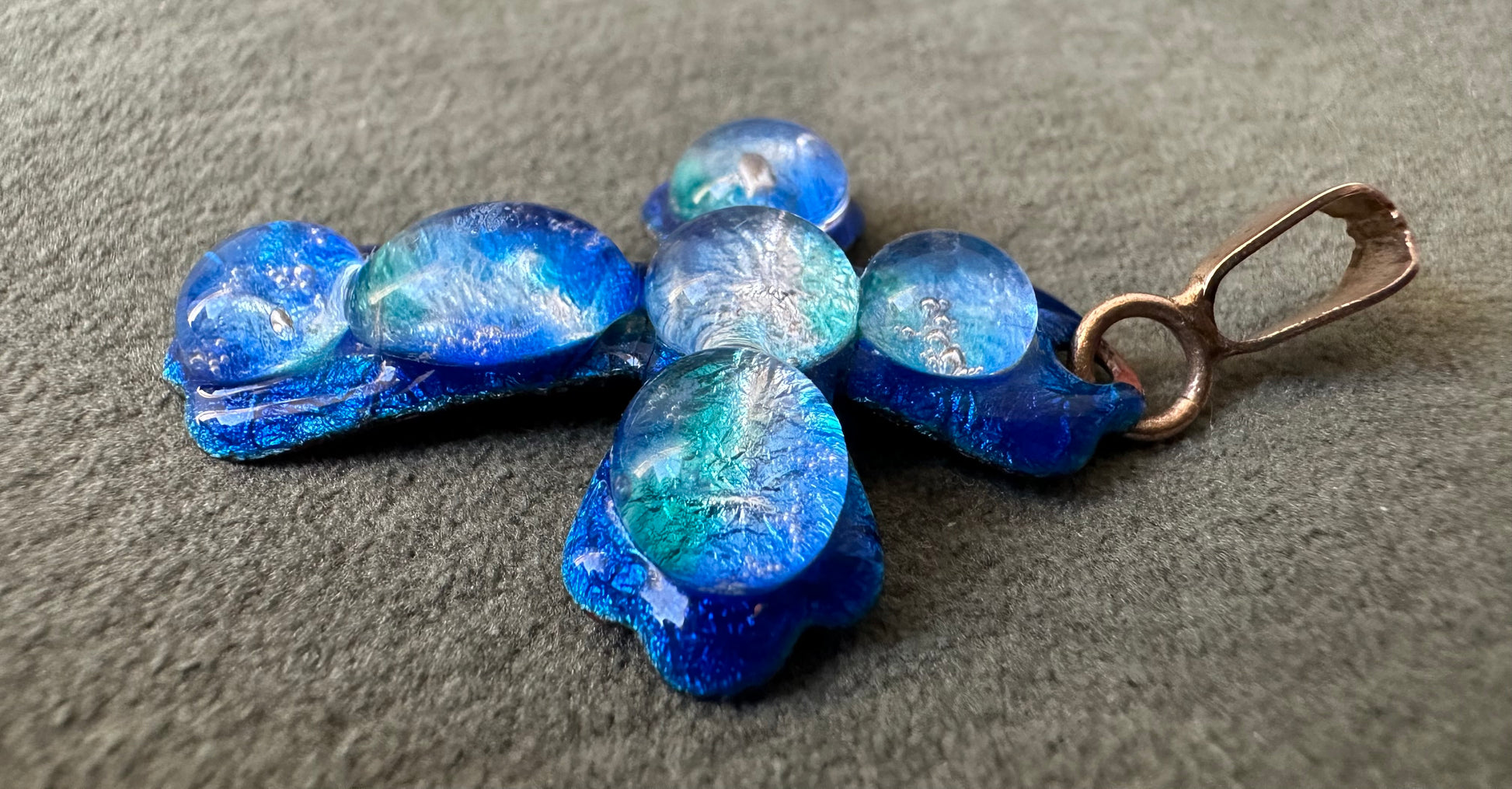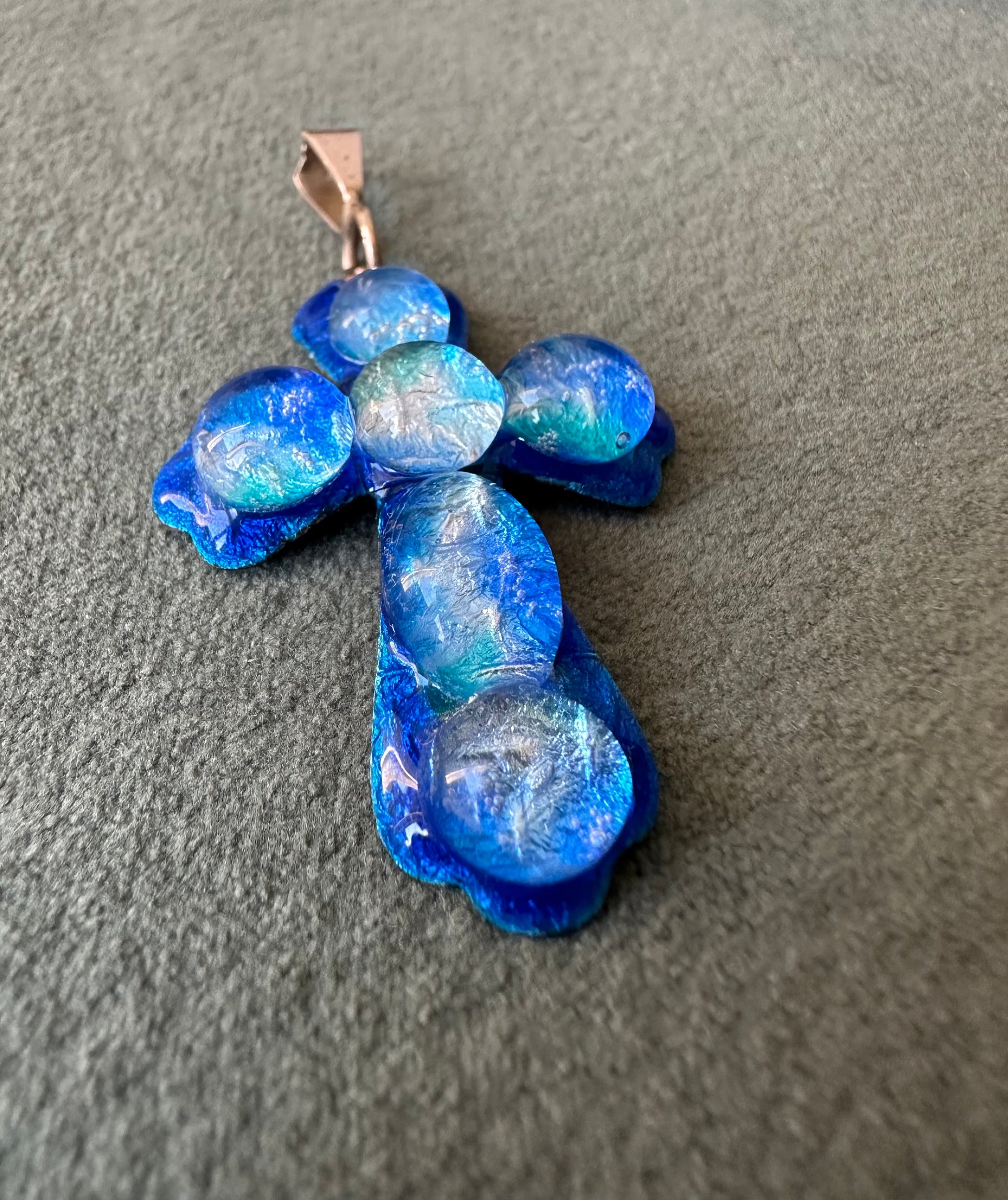 Rare Blue Limoges Enameled Cross Pendant by Michel Betourne, Drop of Water, Gift for Her or Him