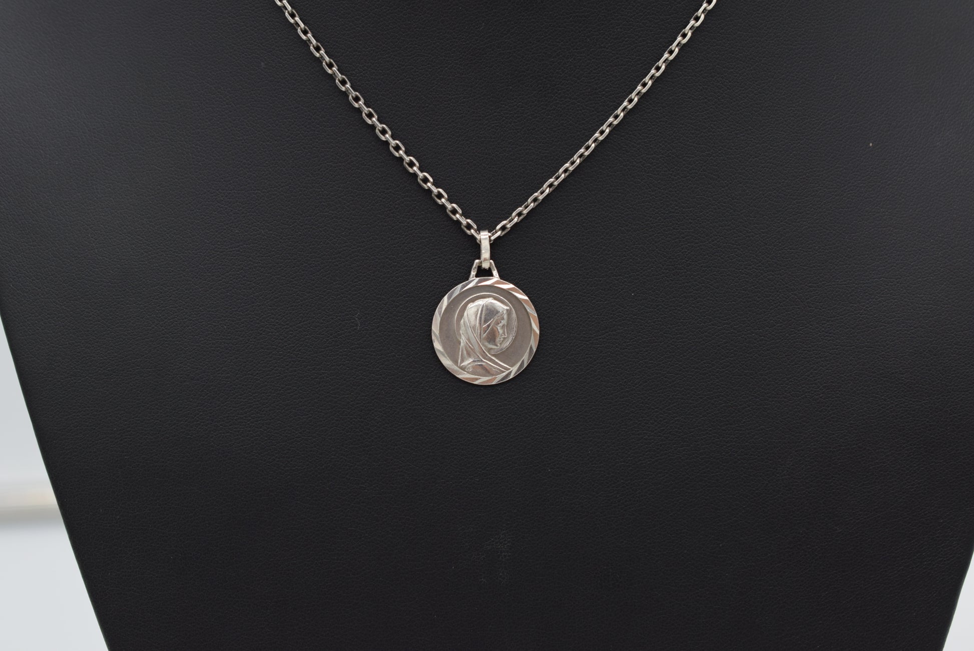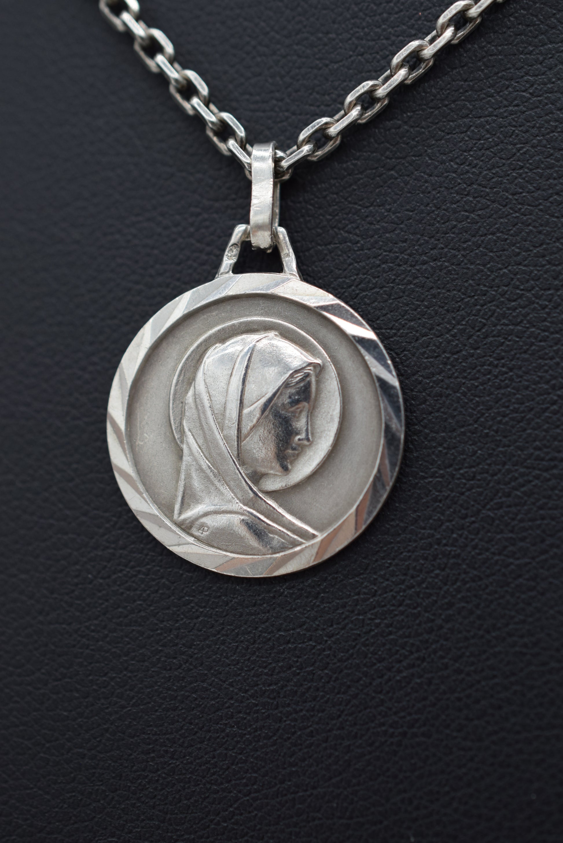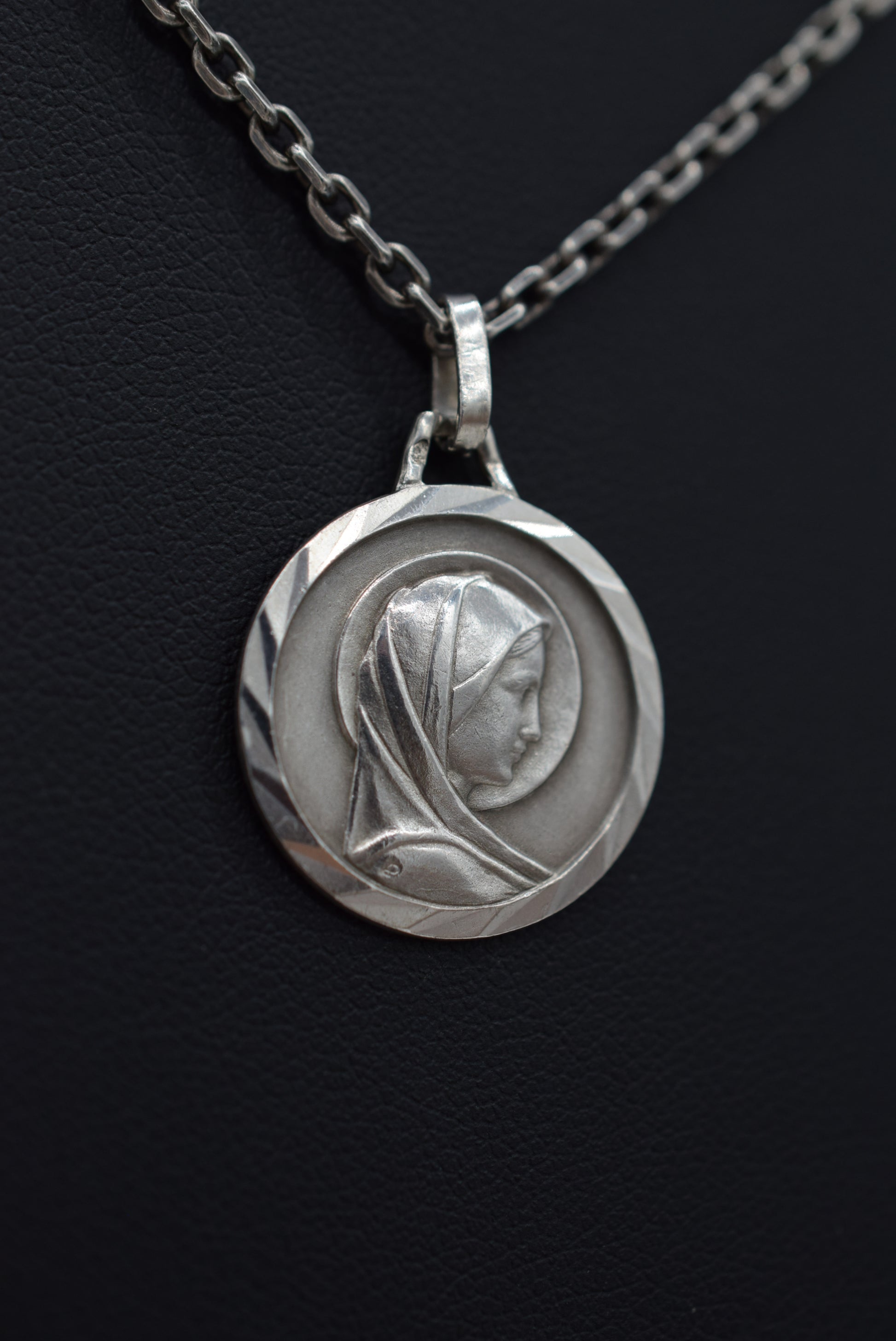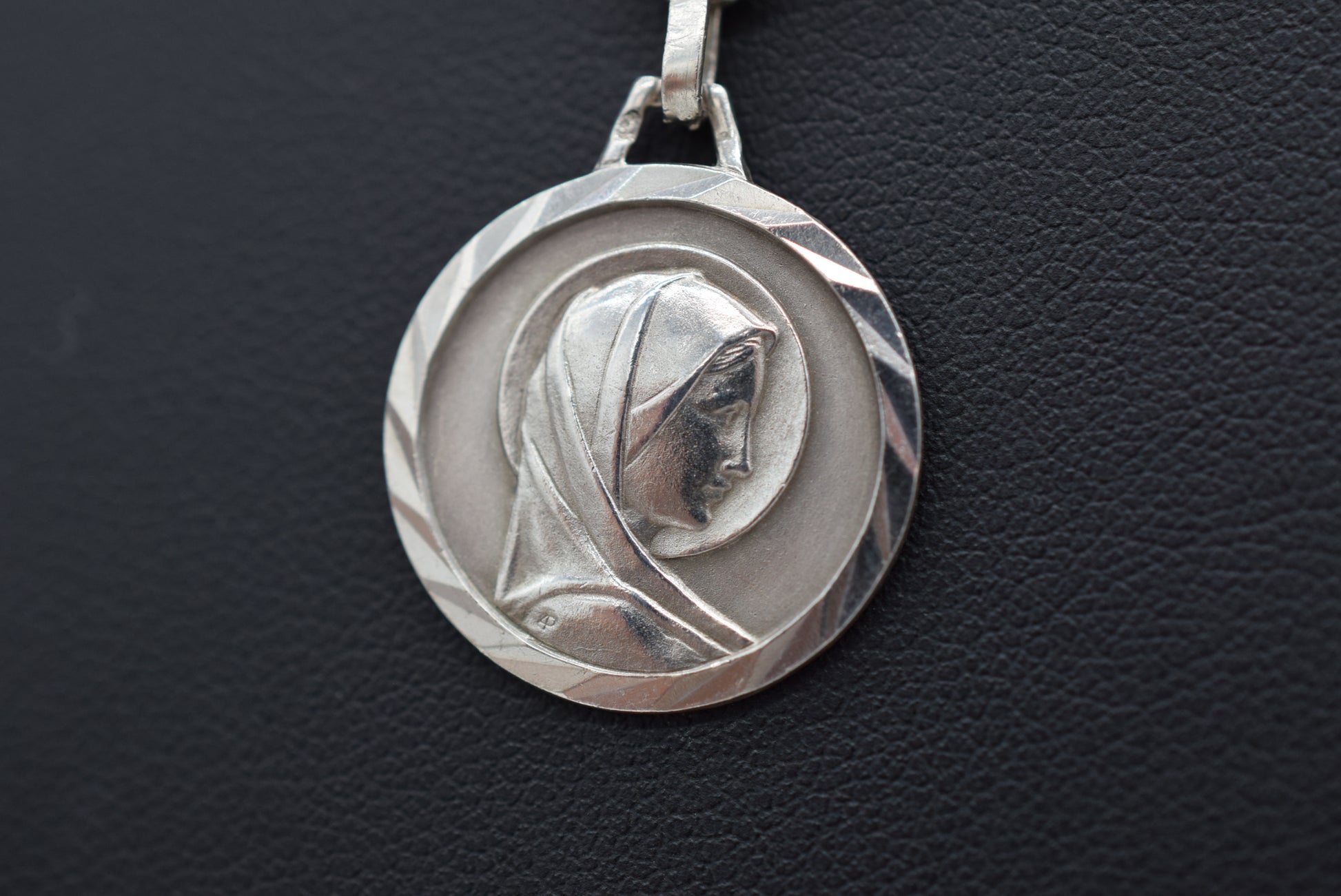 Il s'agit d'une médaille religieuse vintage représentant Notre-Dame Vierge Marie. Il est en argent sterling.