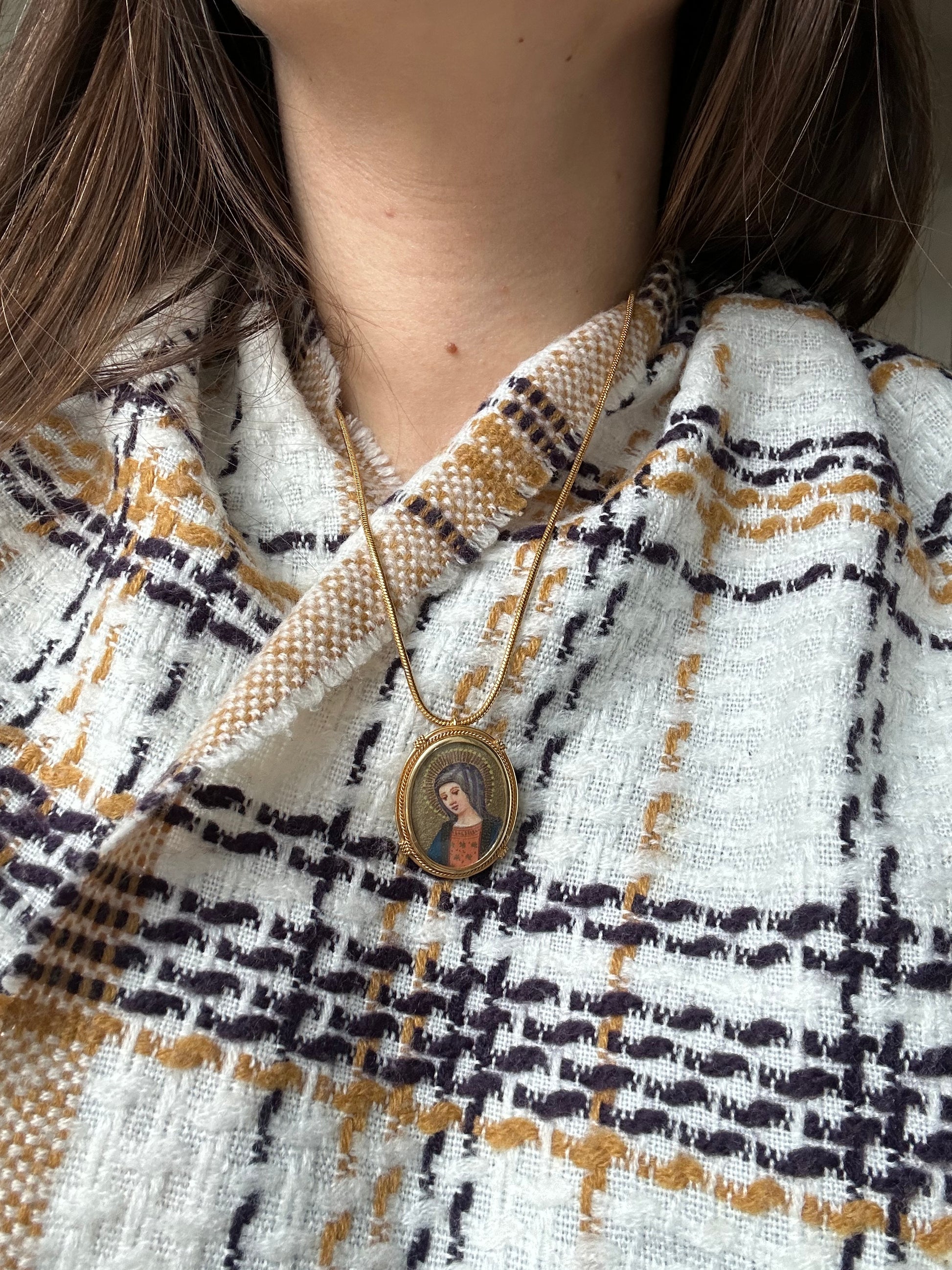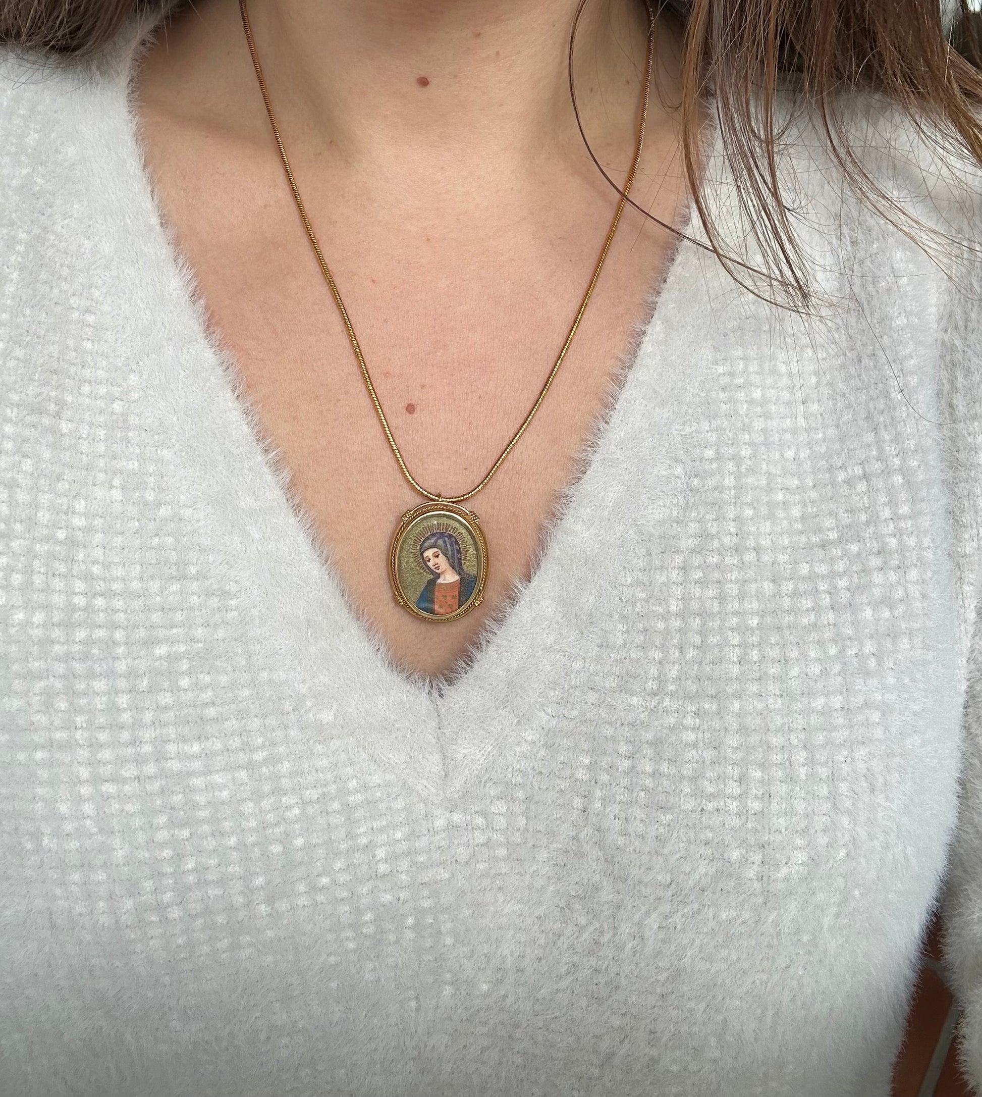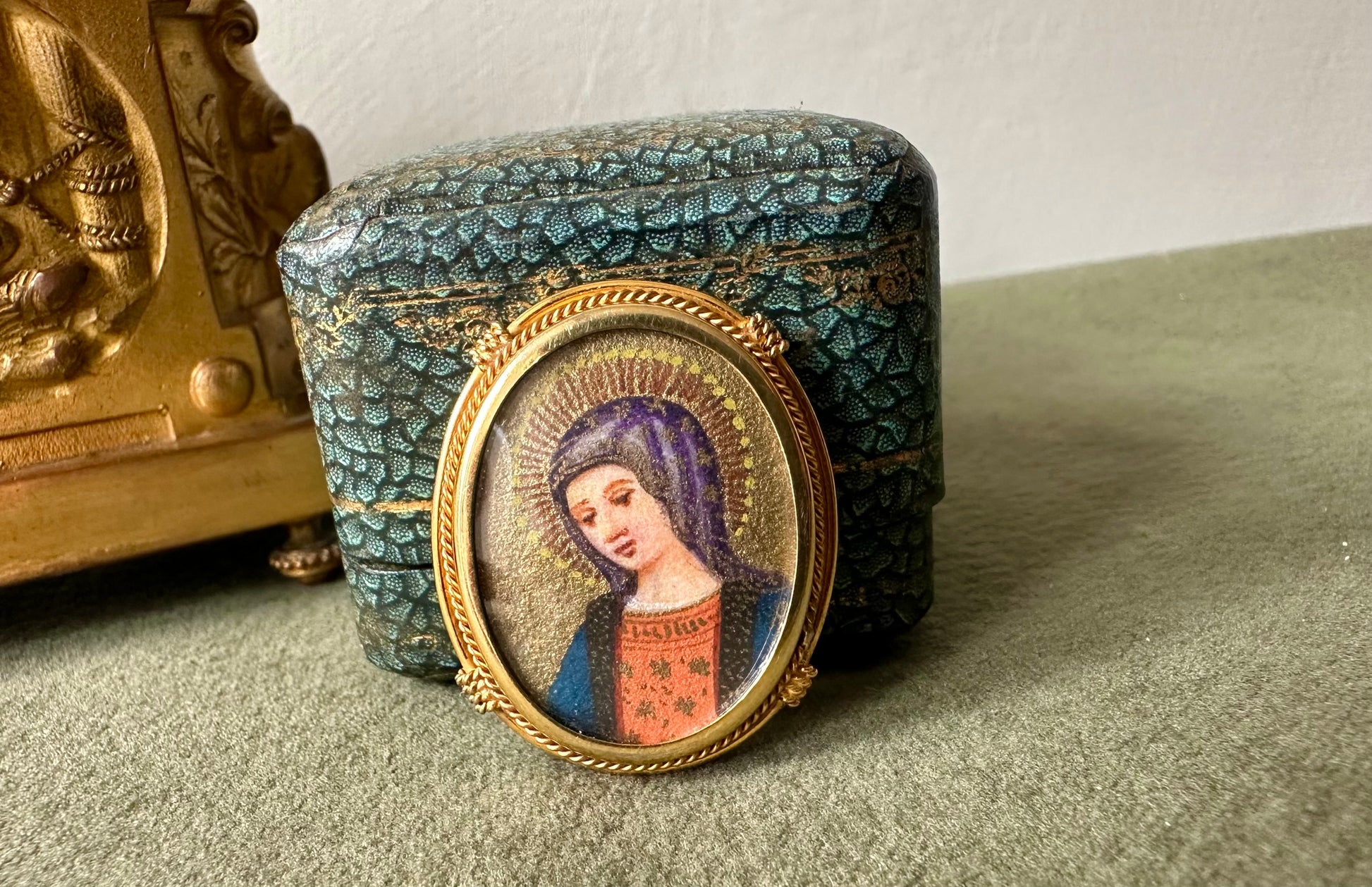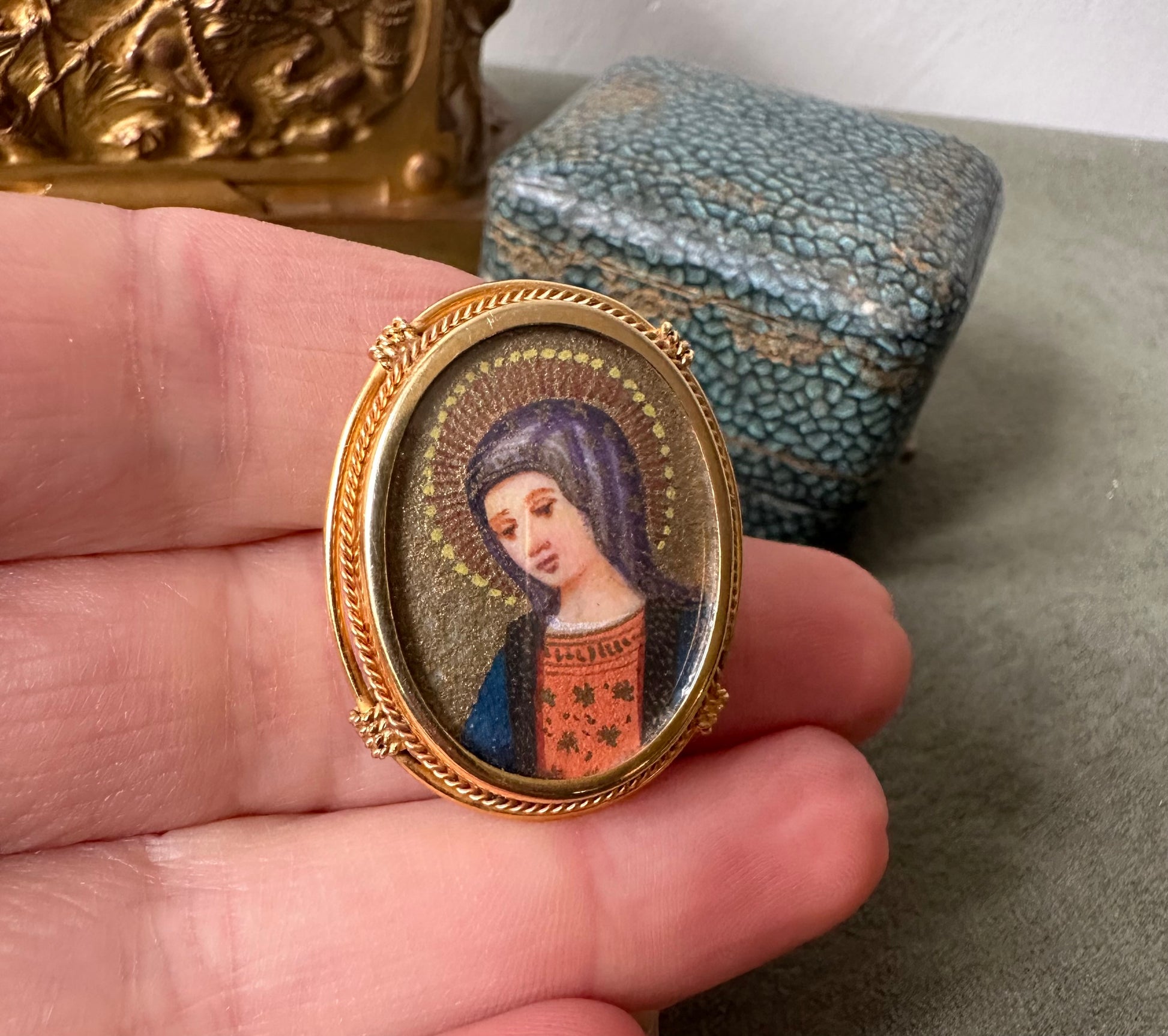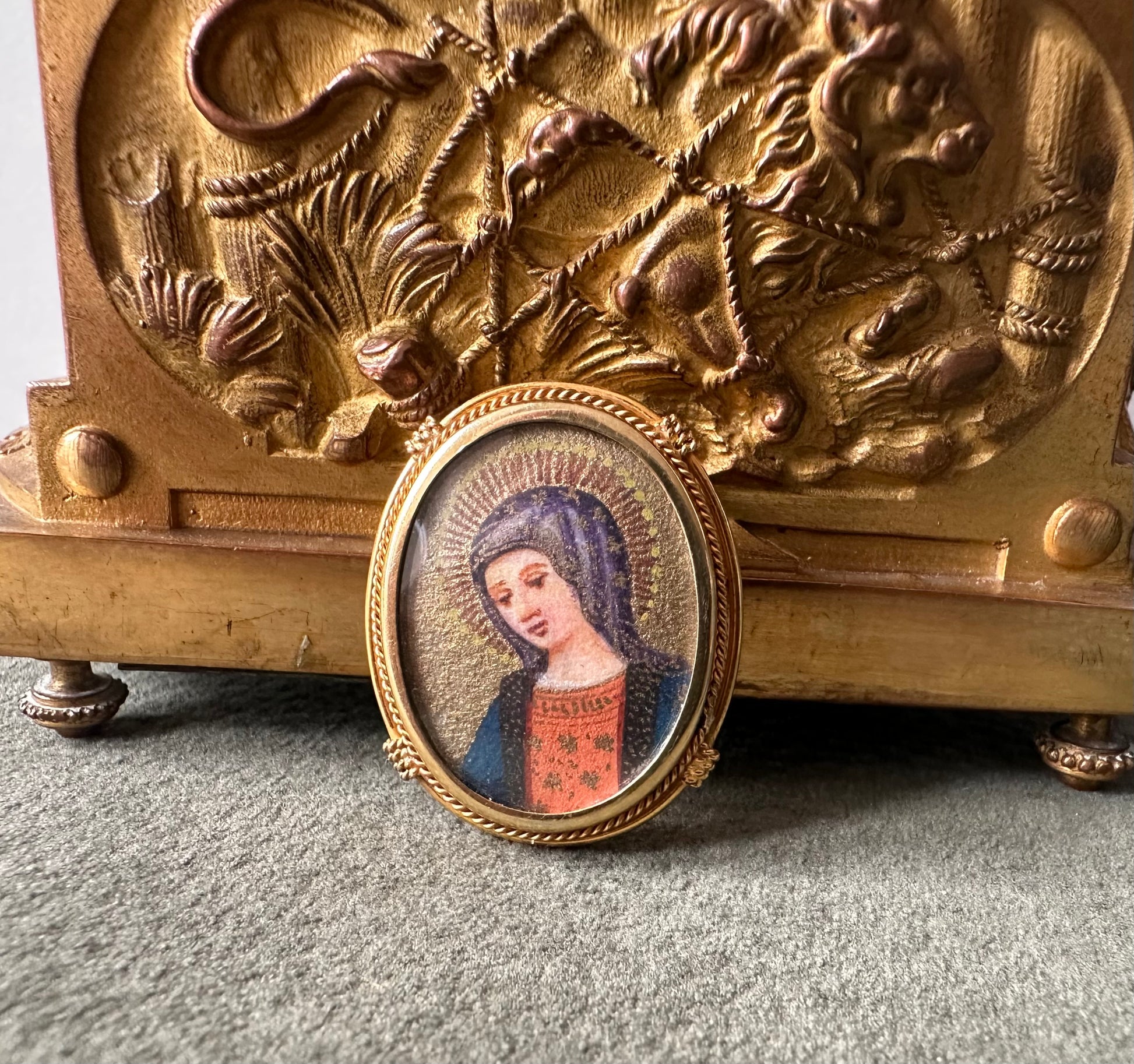 Hand Painted Mary Portrait Miniature Gold Silver Pendant Pin Brooch, Gift for Her,