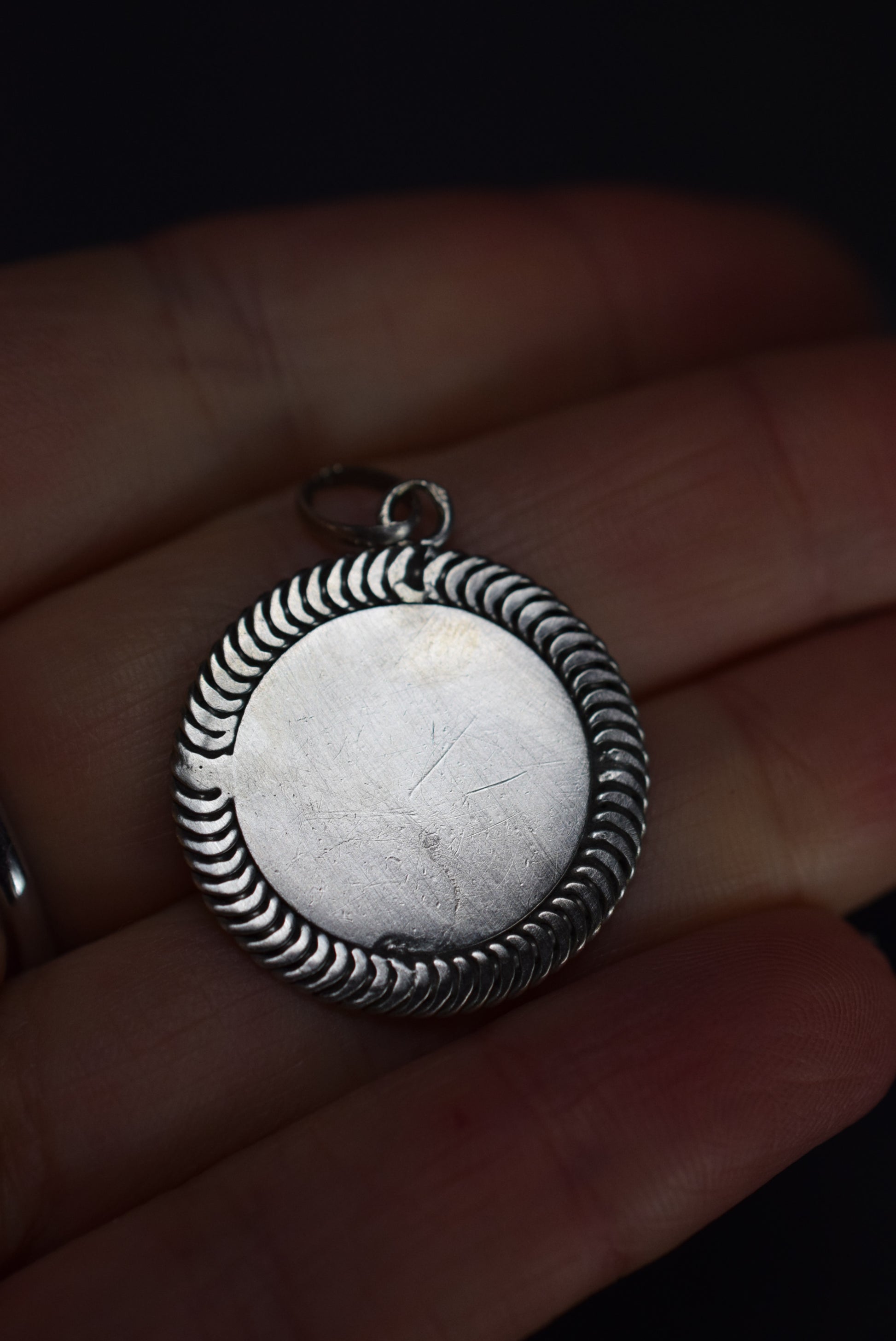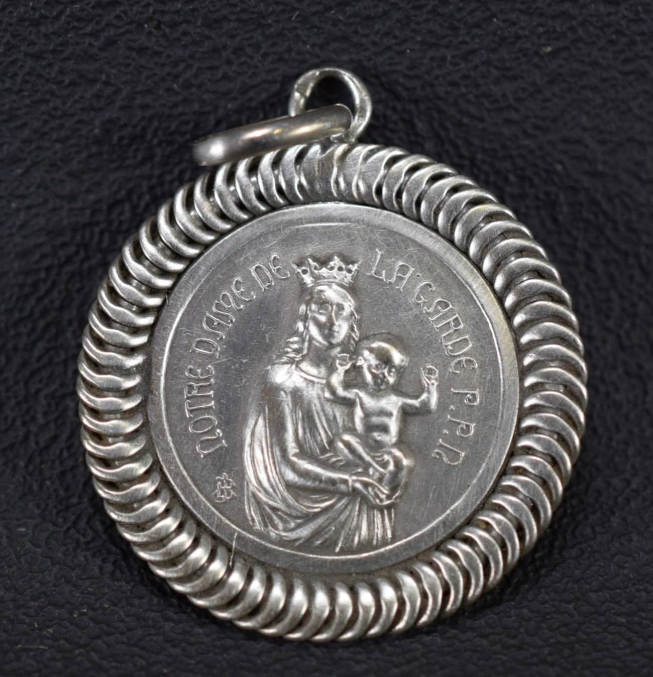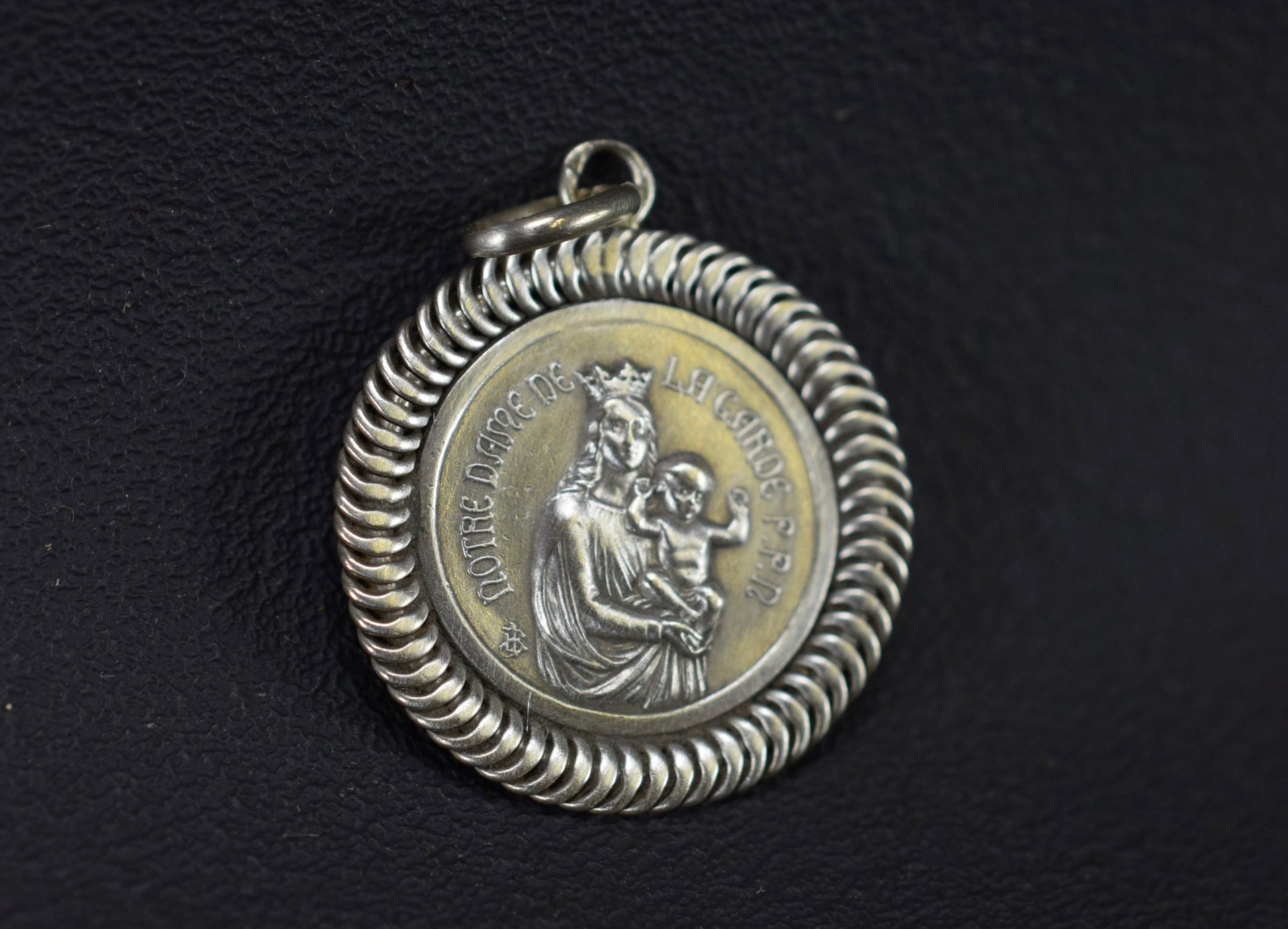 Une médaille religieuse française datant du début du XXe siècle. Il représente finement Notre-Dame de la Garde et l'enfant Jésus. Ce fabuleux pendentif a été fabriqué en argent sterling massif (925).