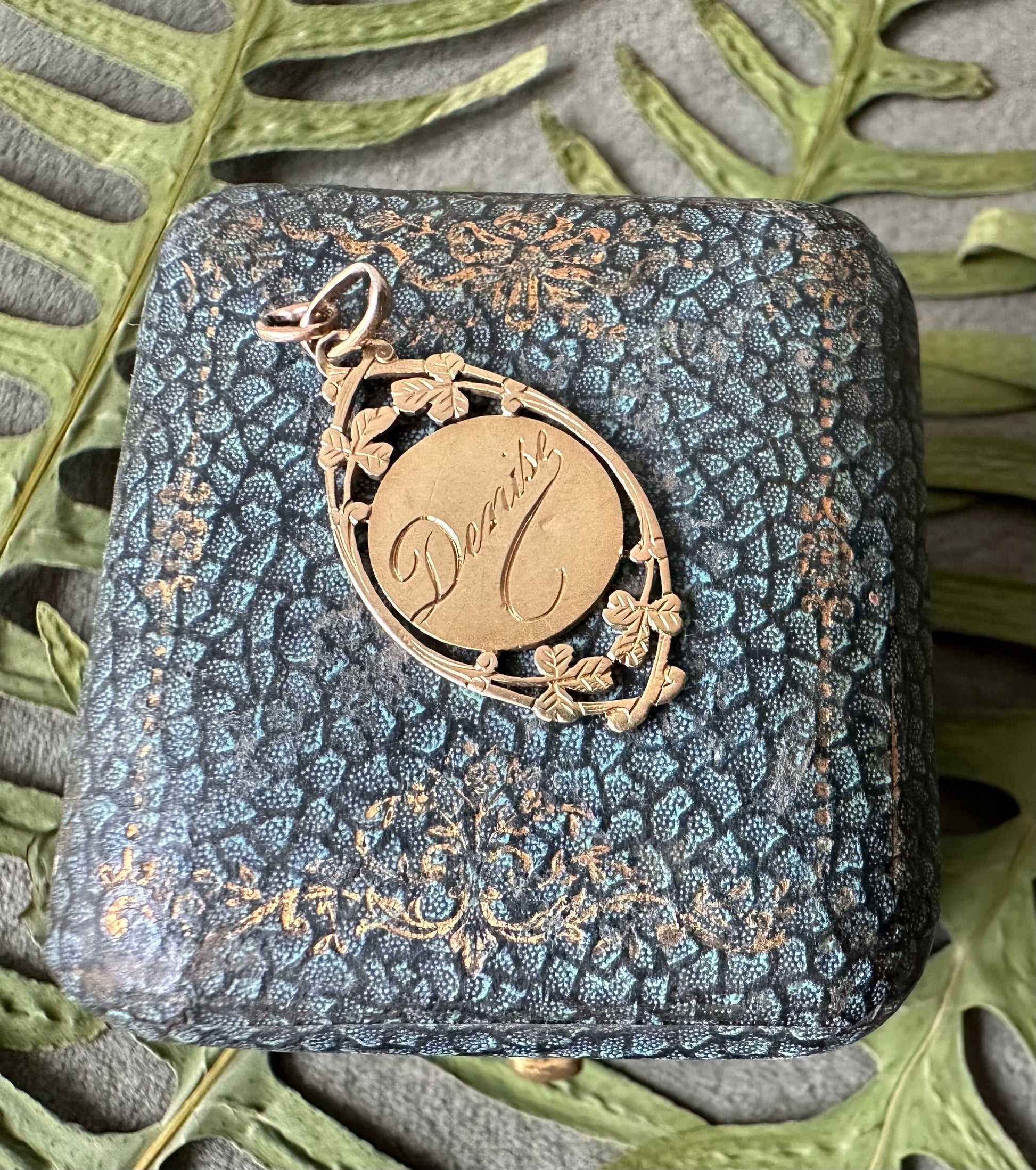 An incredible Art Nouveau openwork pendant made of 18K yellow gold. The jugendstil jewelry dates to the early 20th century and features a beautiful portrait of Our lady Virgin Mary surrounded by an openwork design with clovers. The gold medallion measures 1 inch high, perfect size to wear it everyday or for special occasions. High quality religious medal. The reverse has been engraved with the name Denise.