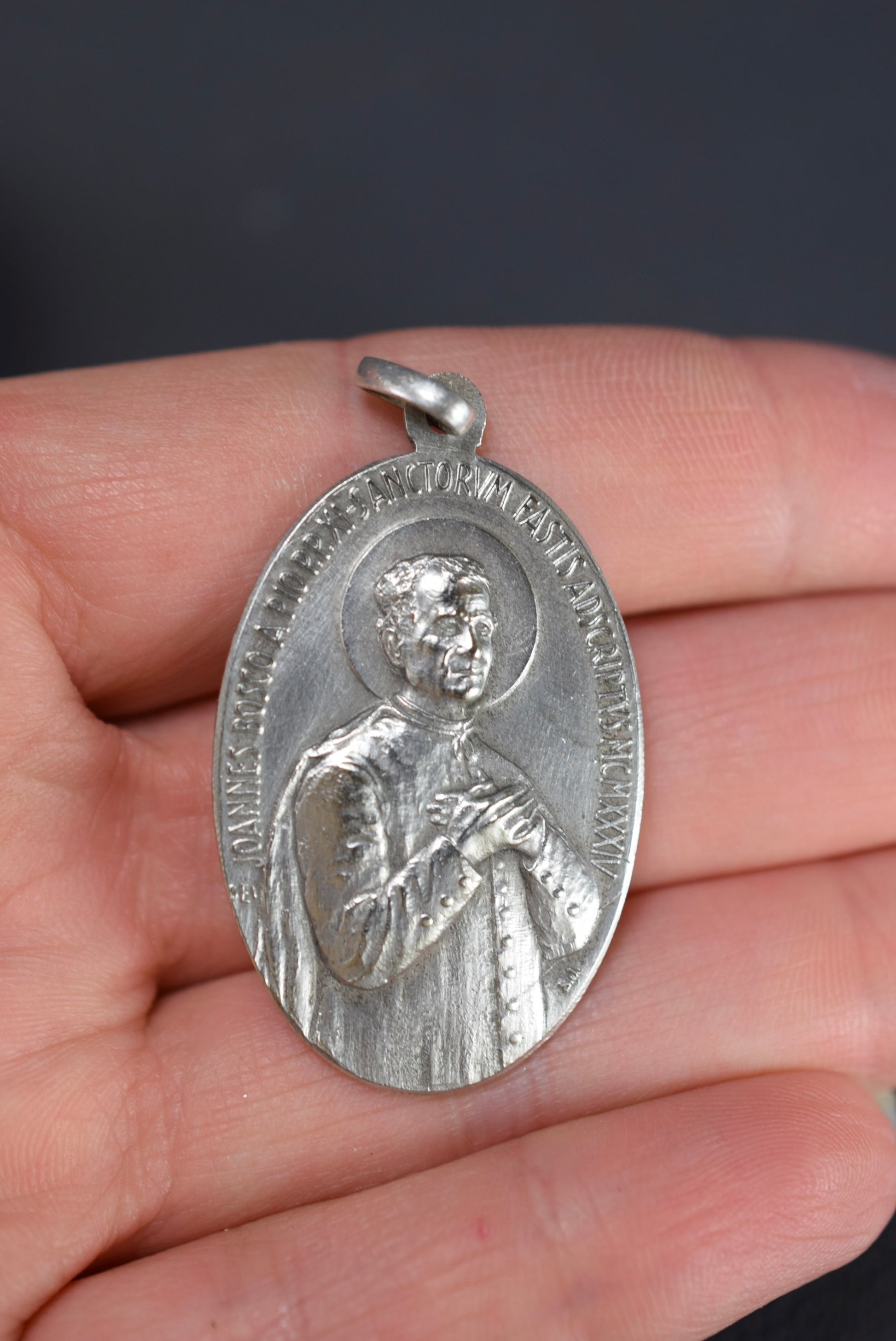 Une belle médaille religieuse vintage datant des années 1930. Le pendentif commémore les années saintes 1933 et 1934. La médaille catholique représente le pape Pie XI (1857-1939) des deux côtés.