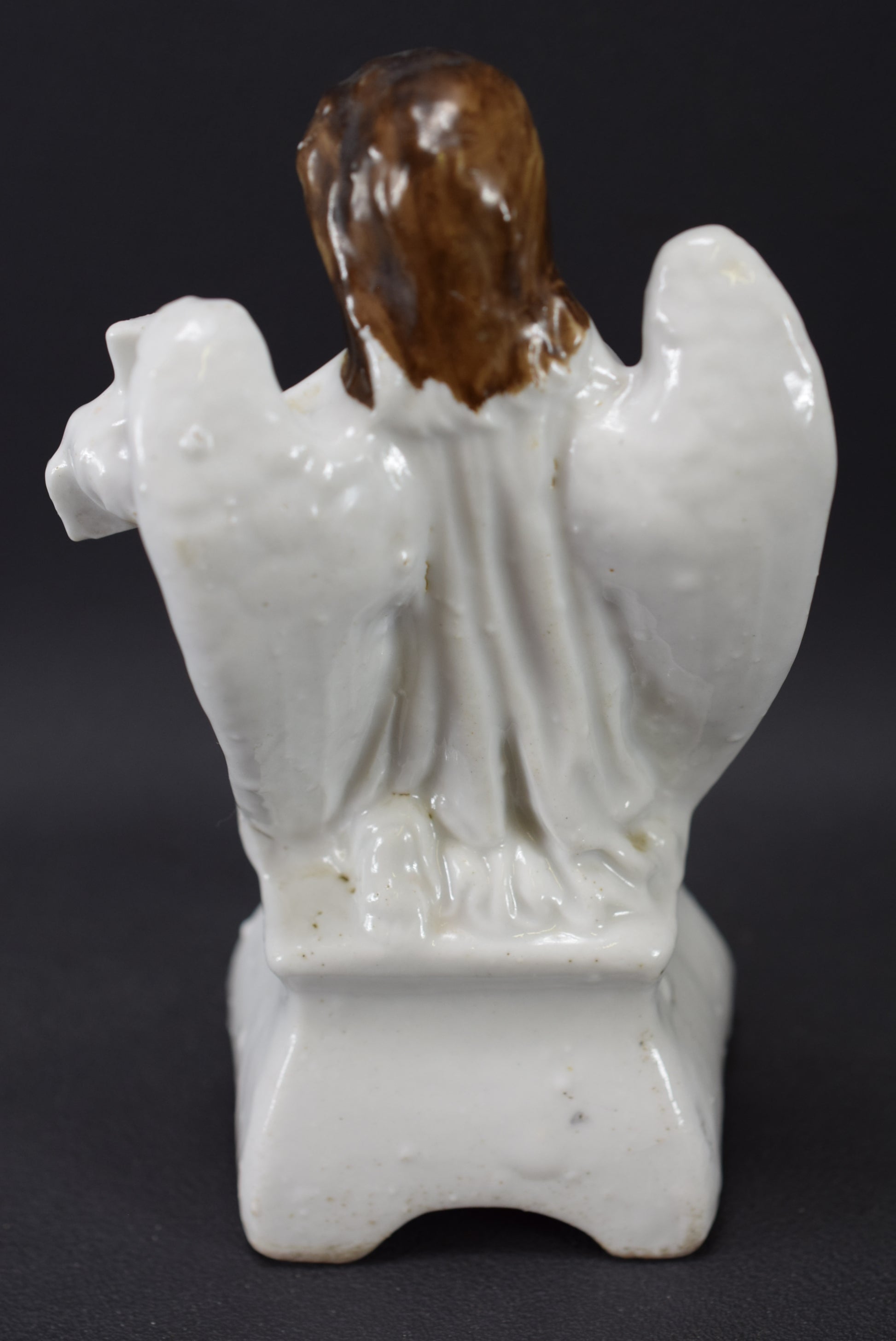 Un beau bénitier français de la fin du 19ème siècle. Le magnifique bénitier debout est en porcelaine blanche de Paris, également appelée "Vieux Paris". Le bénitier représente un charmant ange tenant une croix. Cet objet de collection religieux antique a été peint à la main.