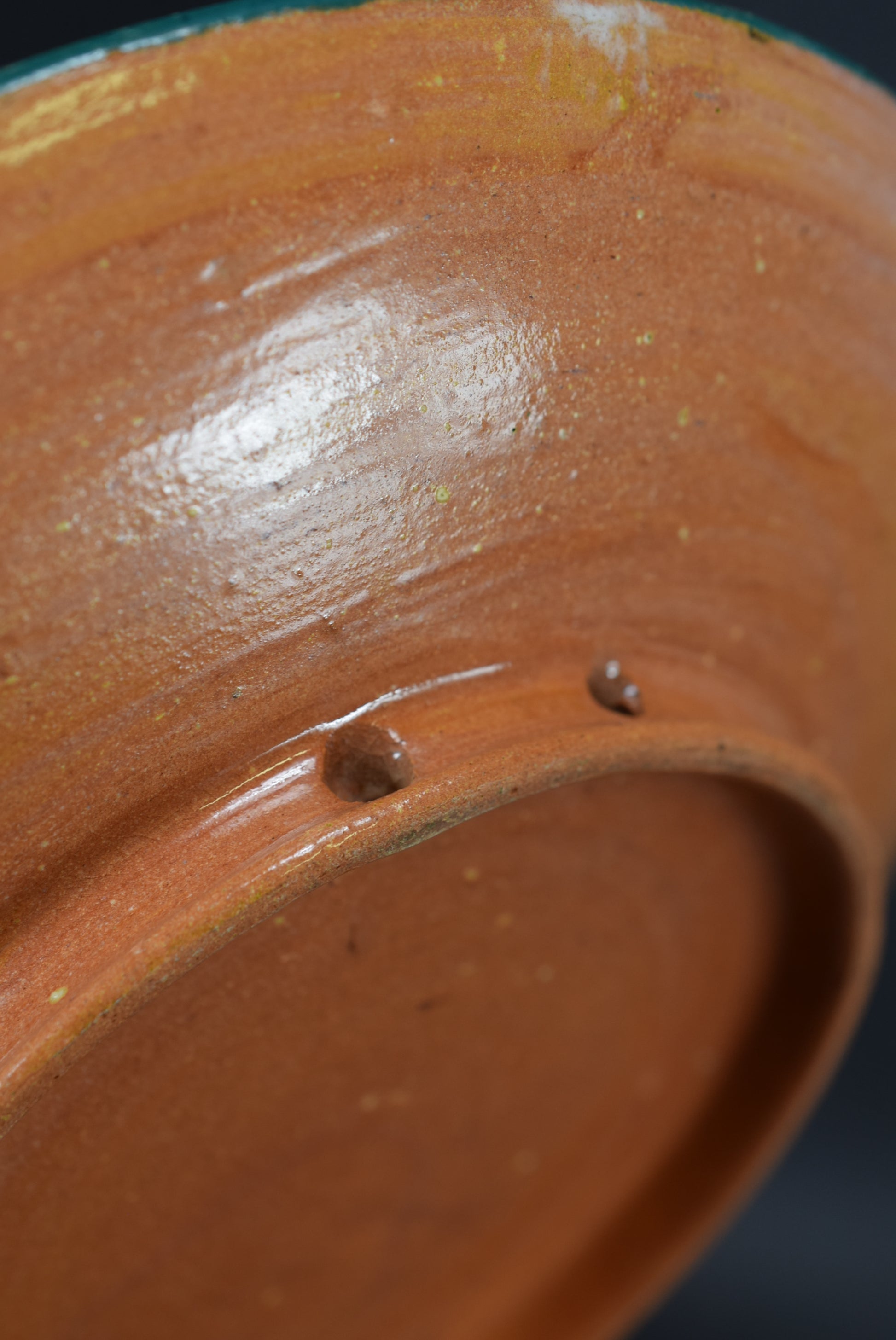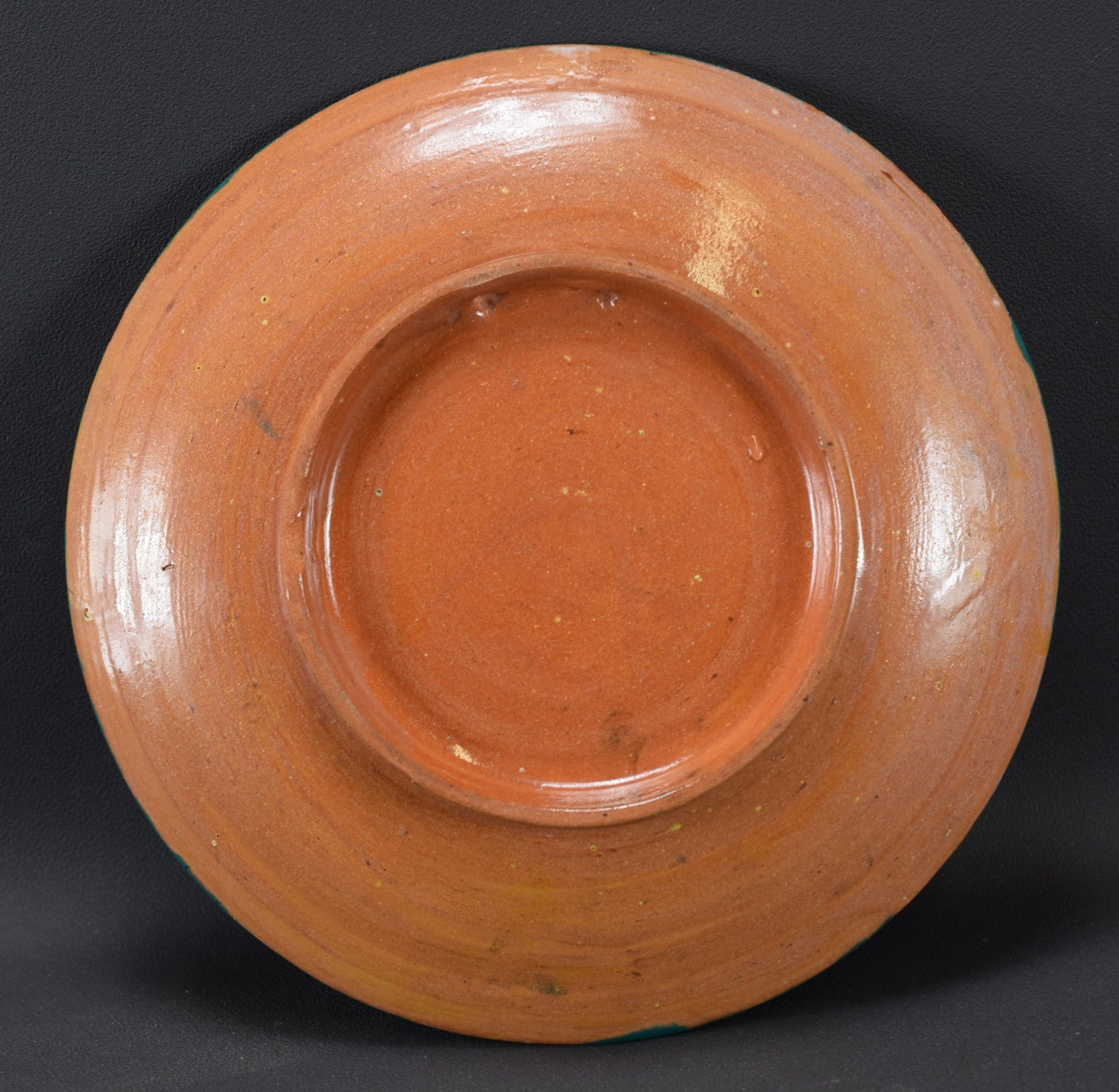 Une assiette murale vintage en poterie émaillée. Le décor peint à la main représente quatre poissons colorés et une écrevisse au milieu. Cette assiette murale faite à la main est très décorative.