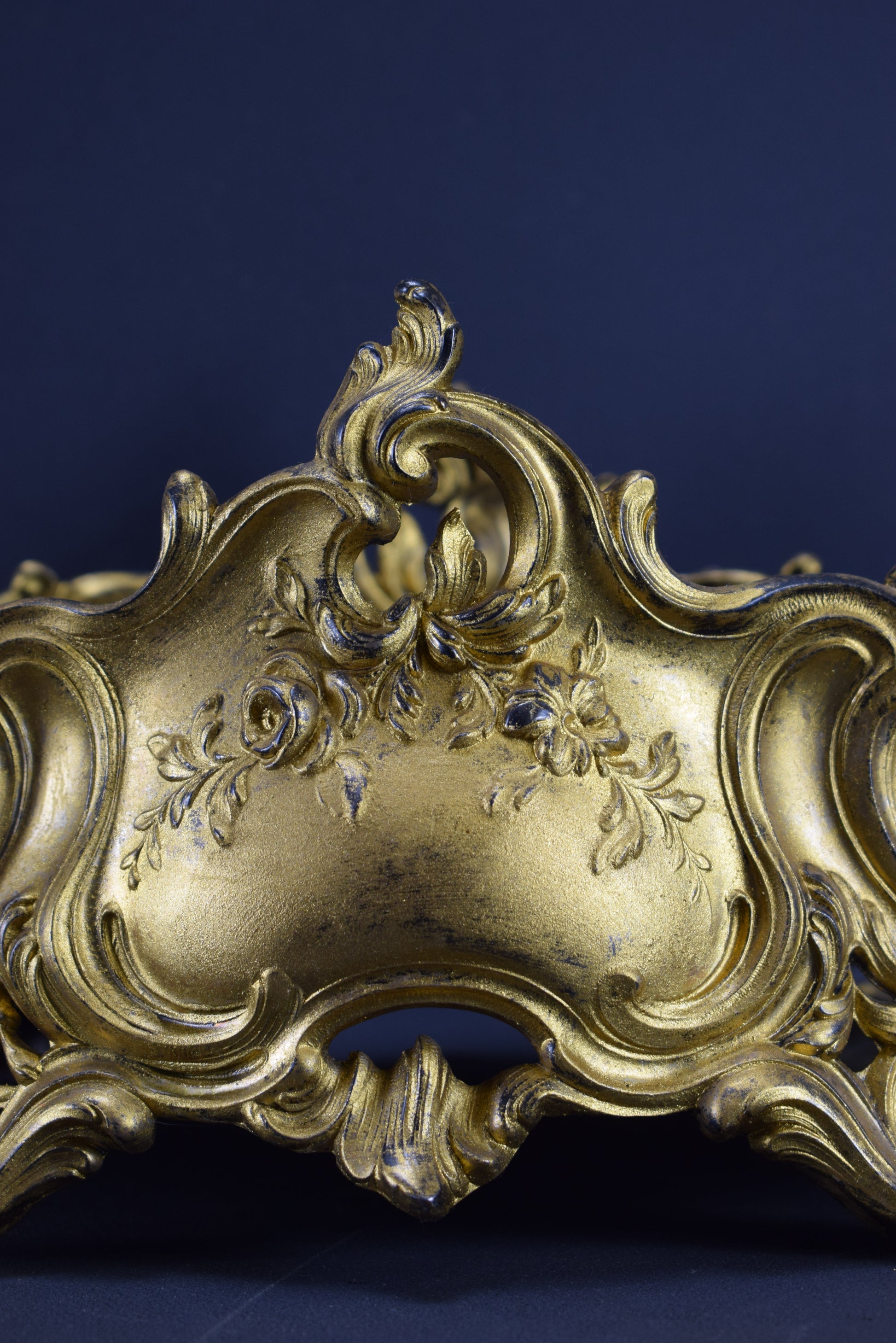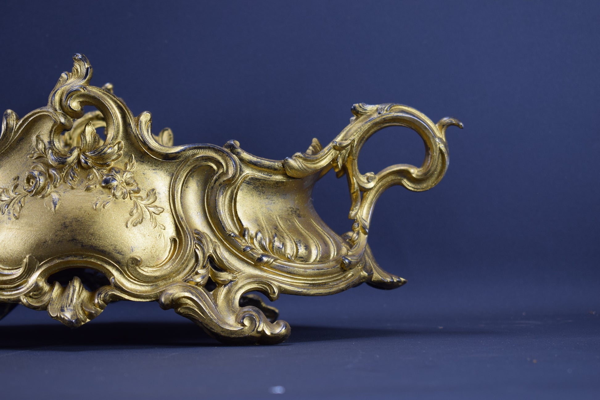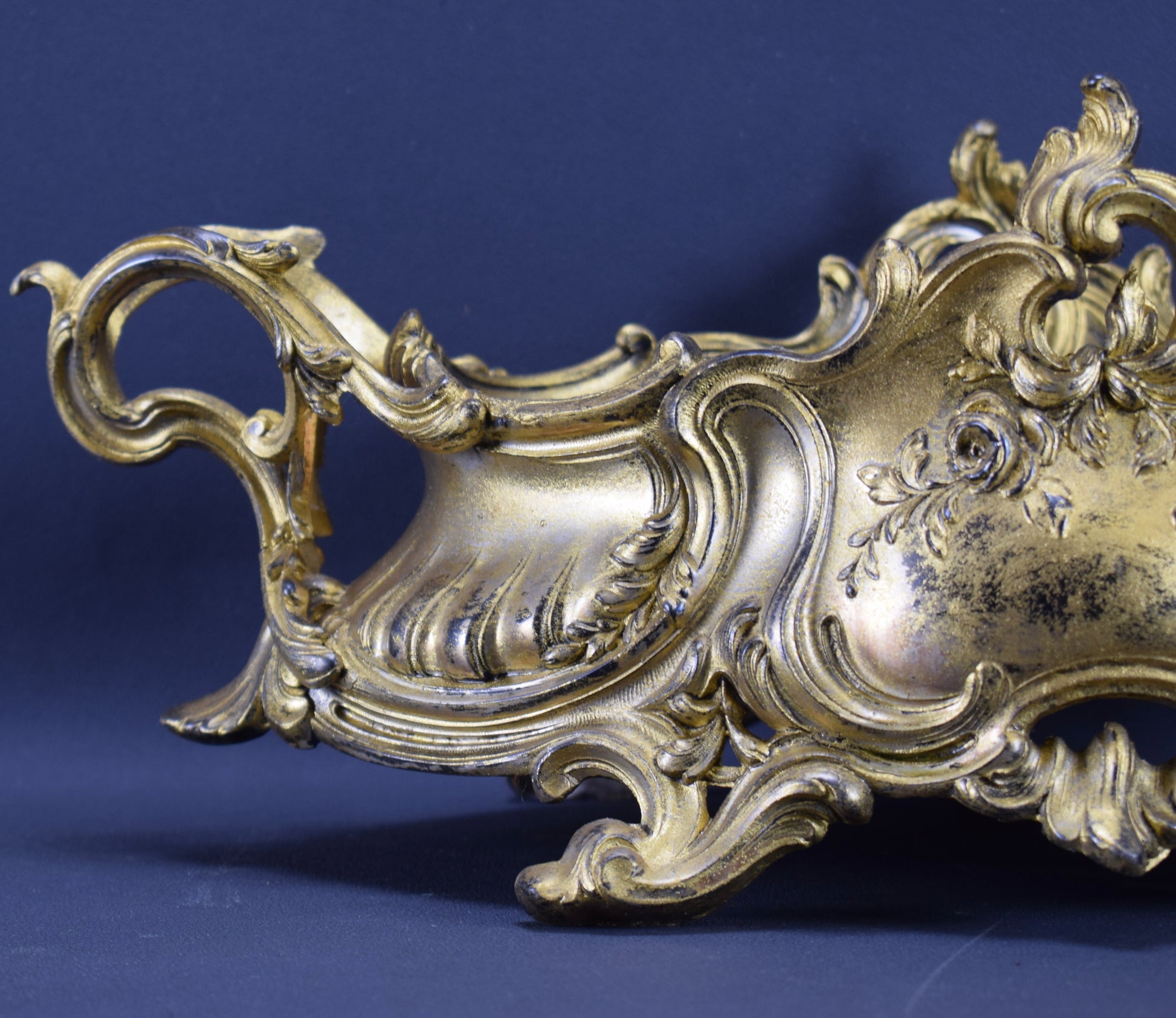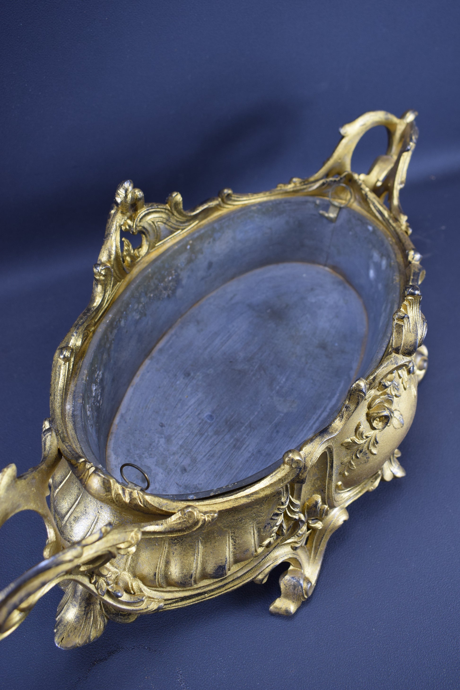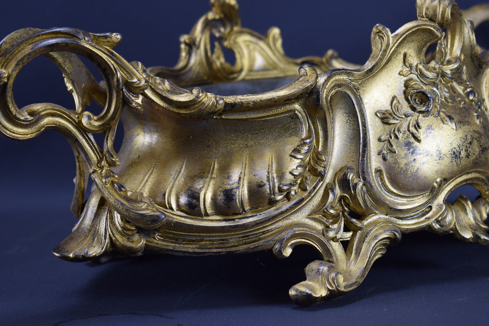 Un centre de table français antique ou "jardinière de table", de la période Art Nouveau, vers 1900, en régule ou en régule à patine dorée. Cette jolie pièce est finement décorée dans un superbe style rococo avec des fleurs.