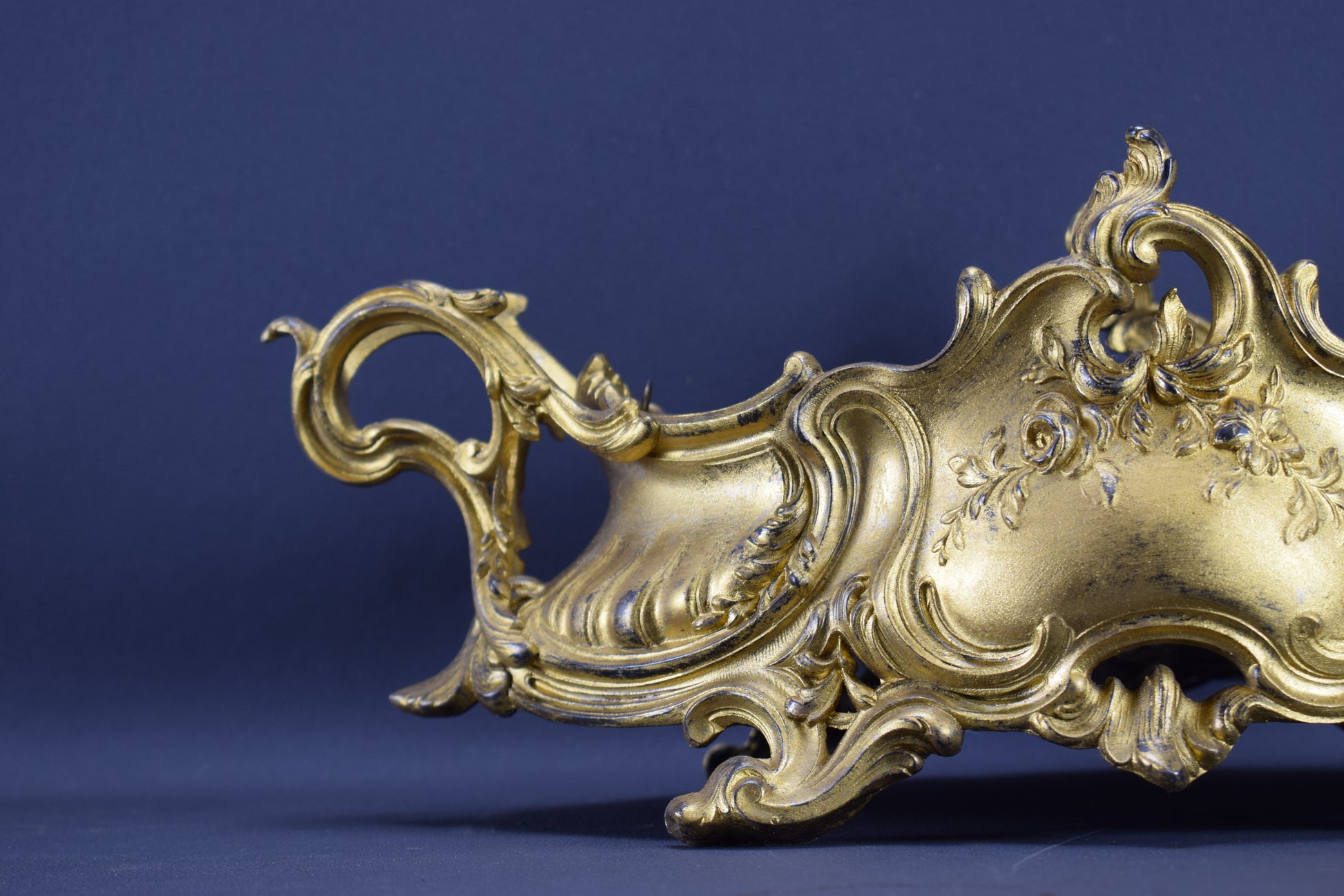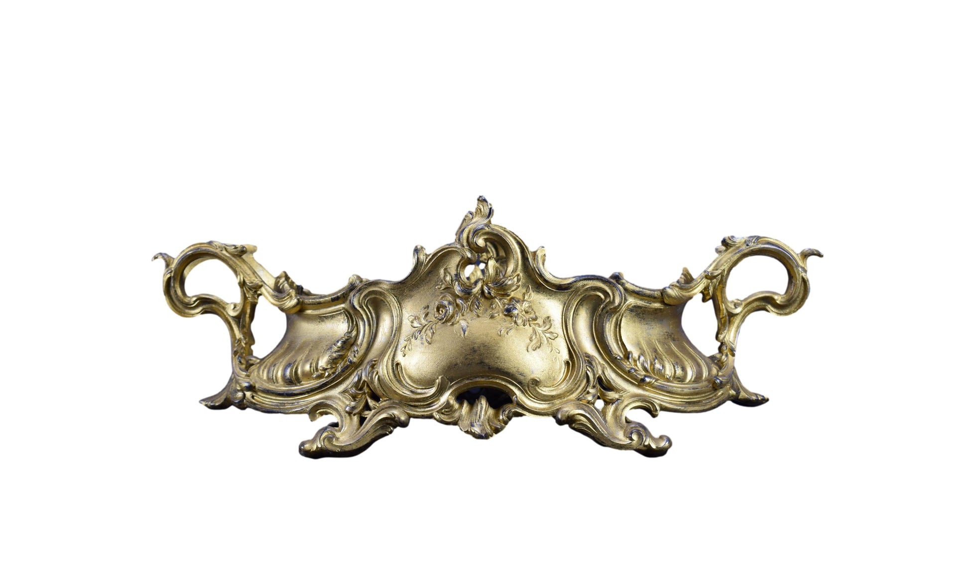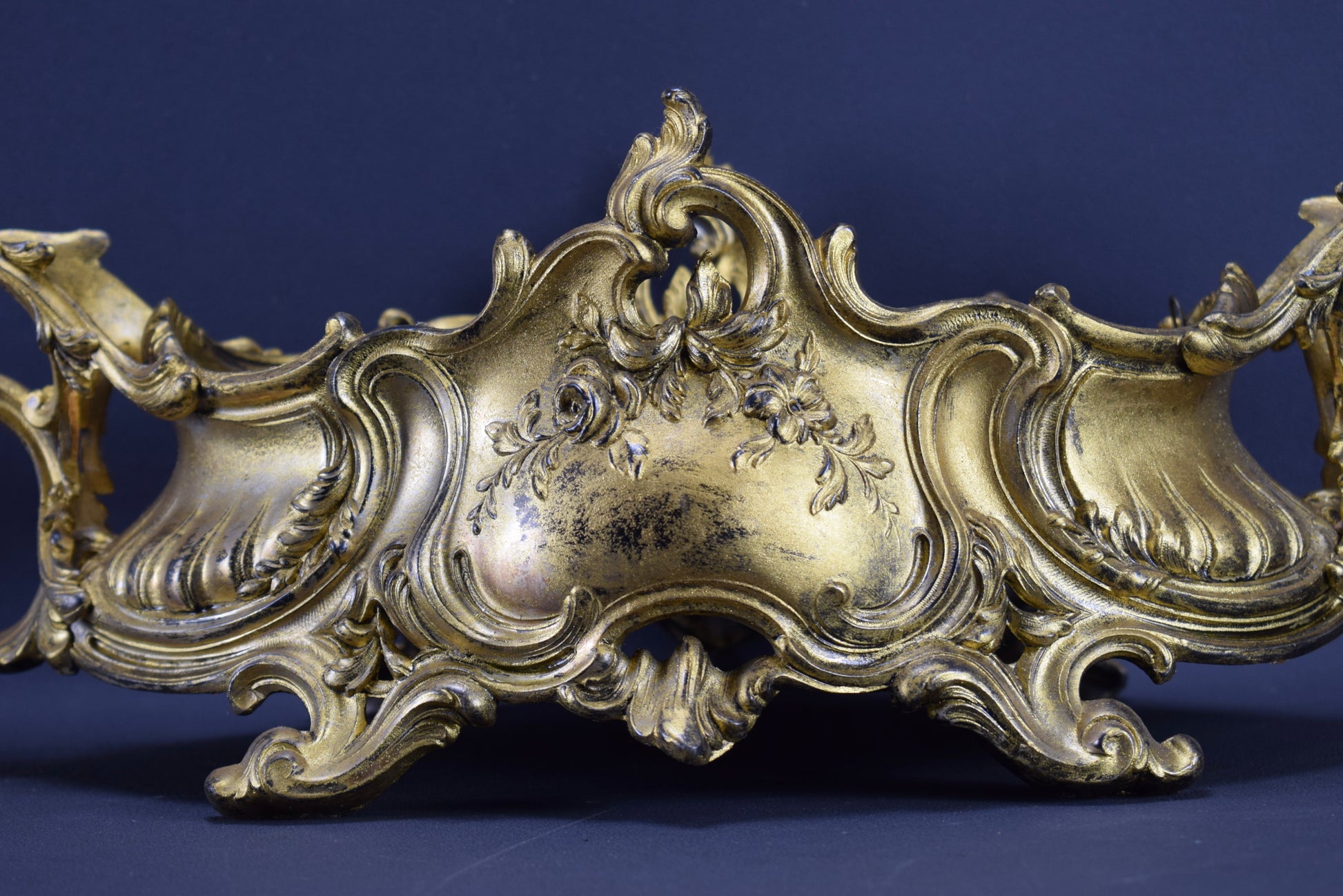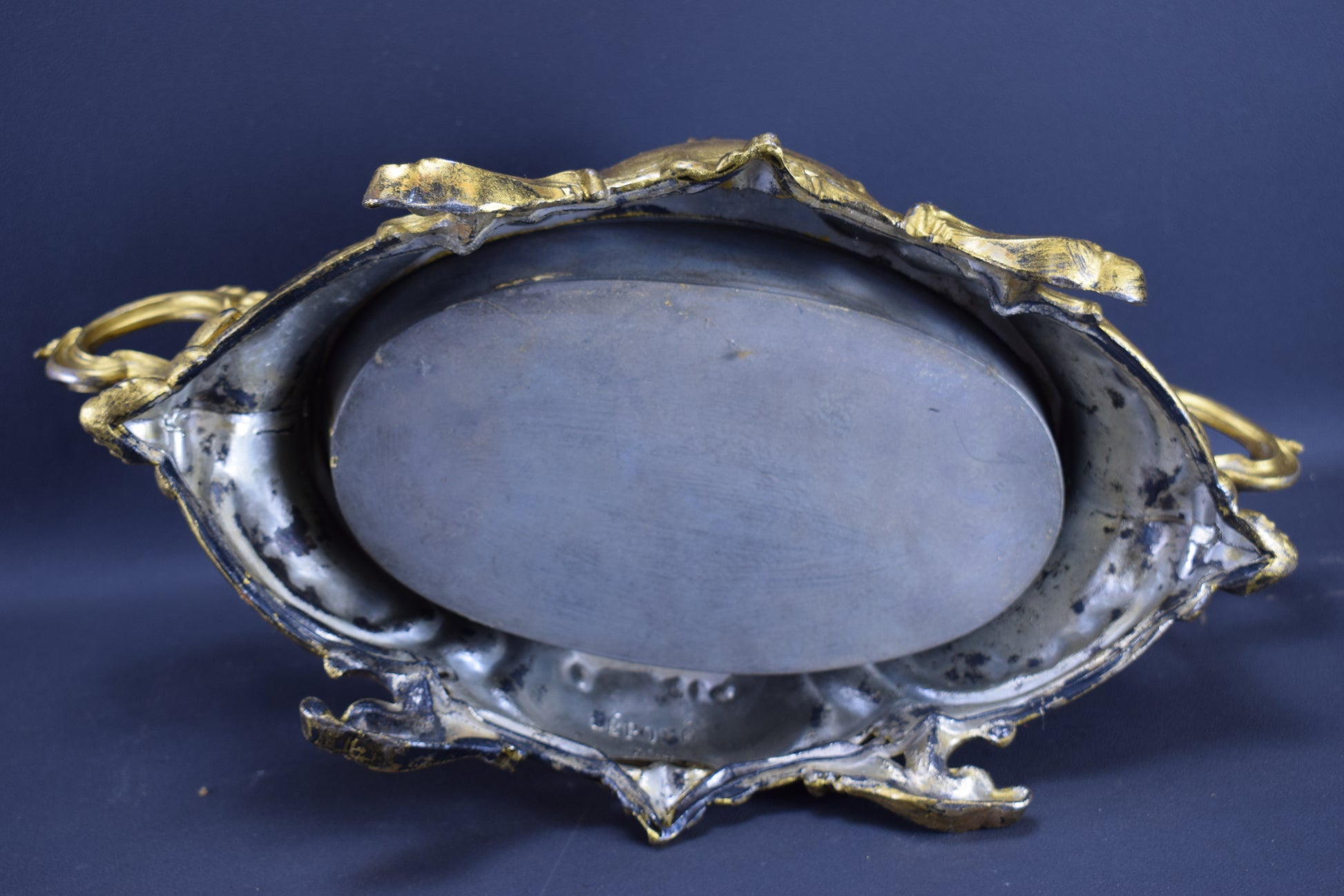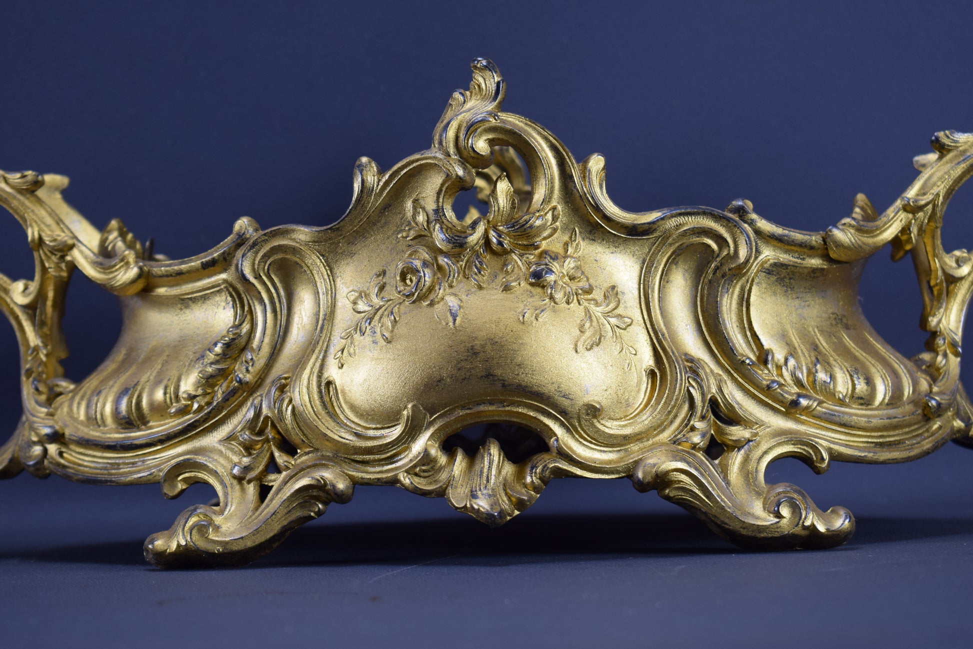 Un centre de table français antique ou "jardinière de table", de la période Art Nouveau, vers 1900, en régule ou en régule à patine dorée. Cette jolie pièce est finement décorée dans un superbe style rococo avec des fleurs.