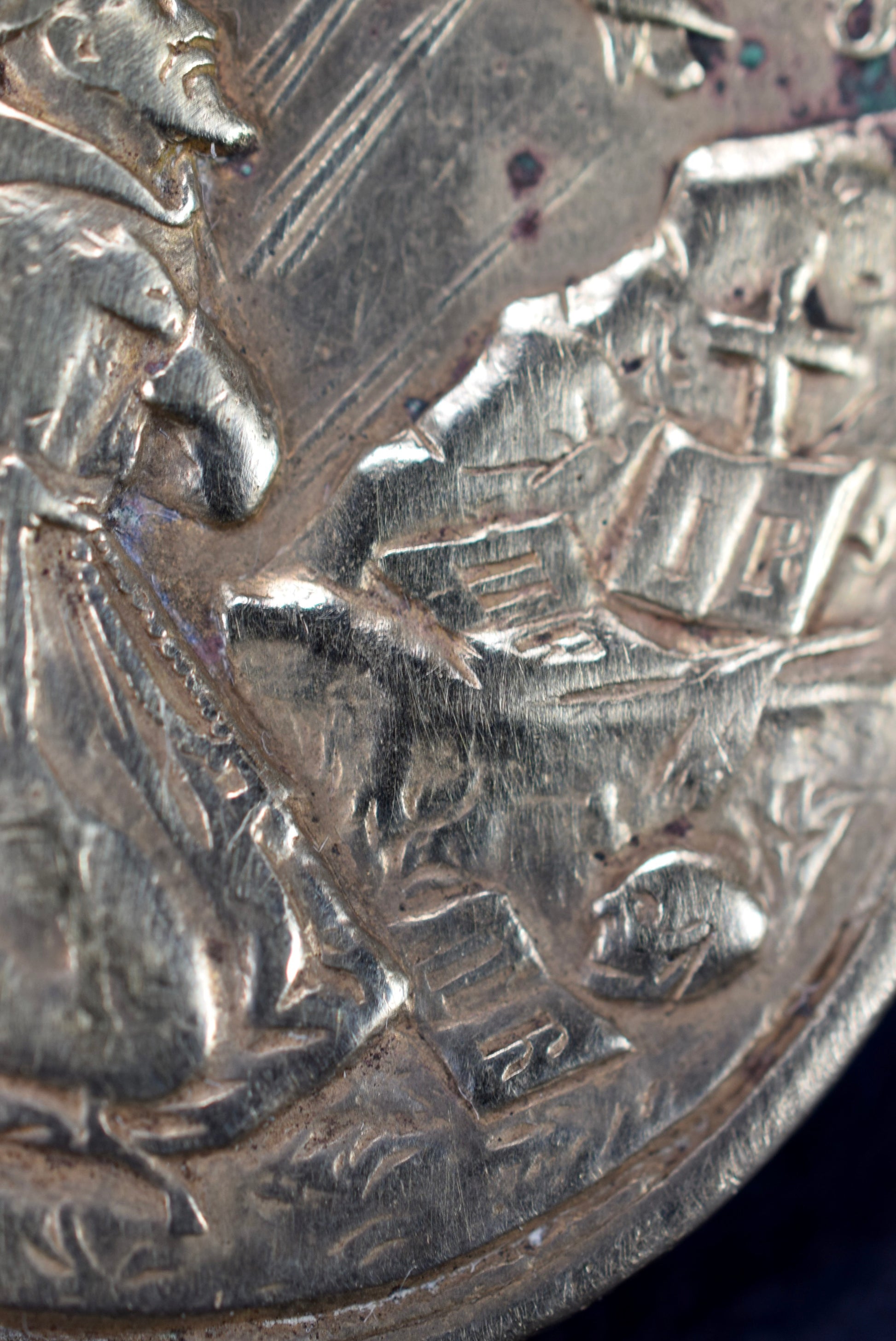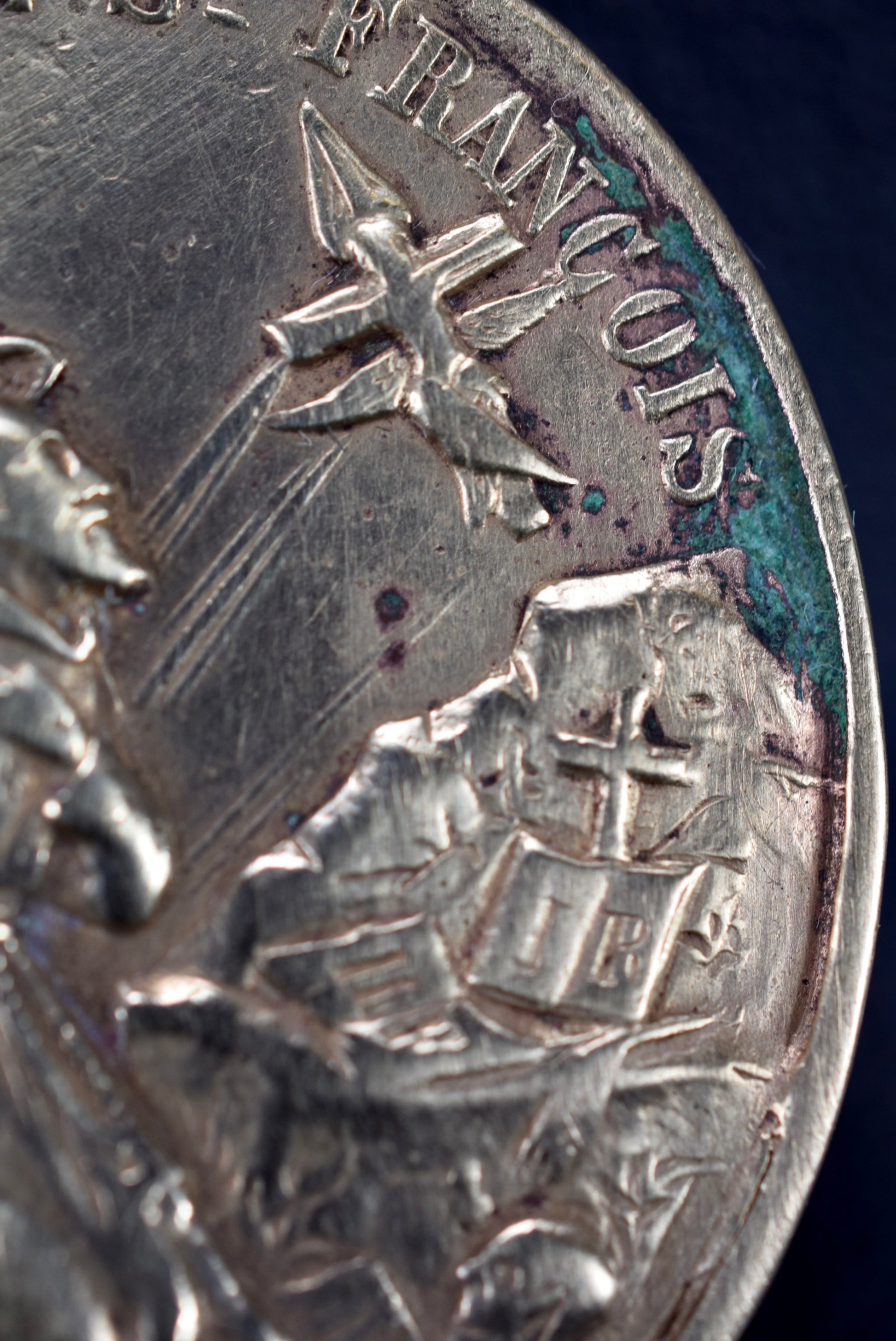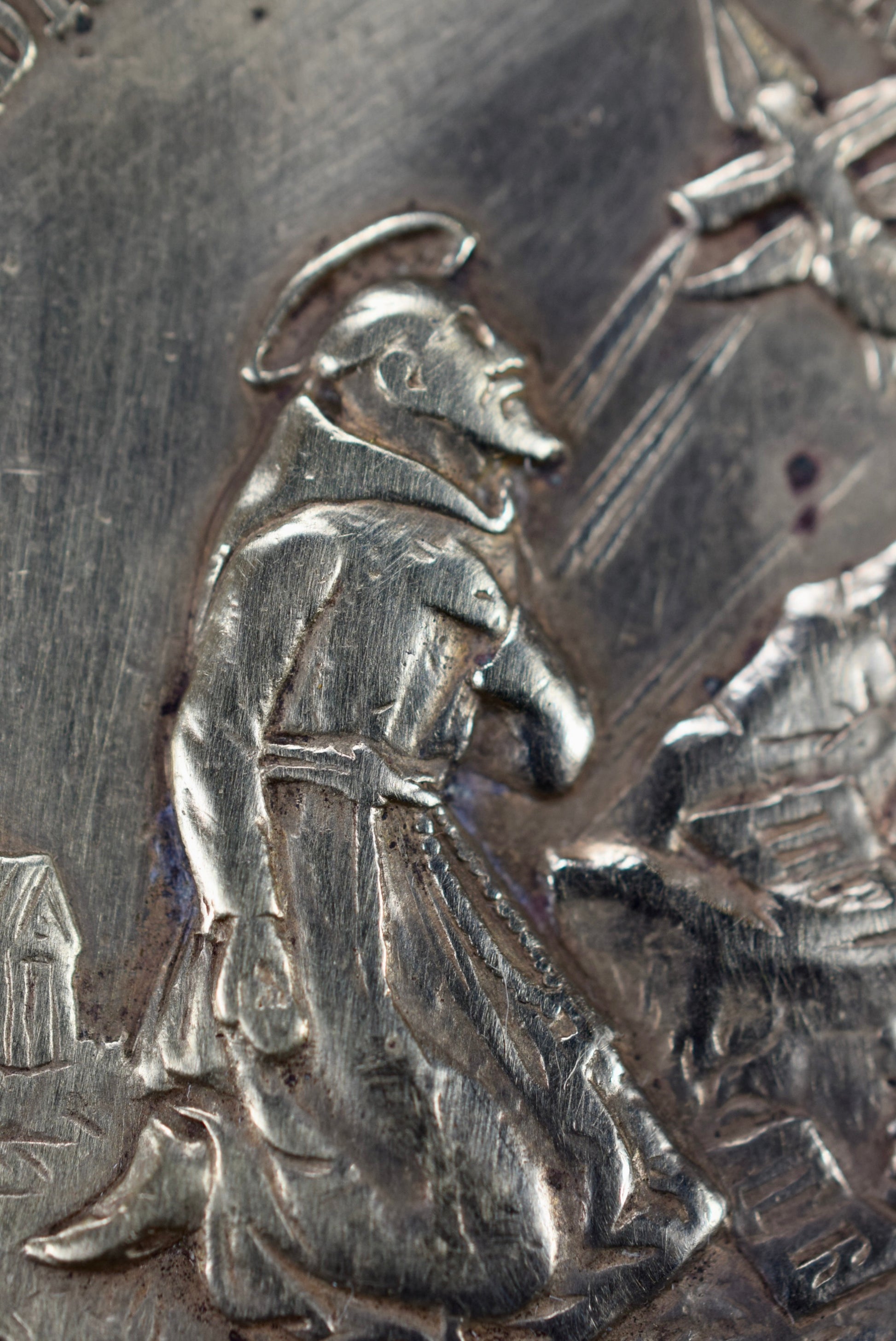 Une rare médaille française antique datant du 19ème siècle. Le pendentif religieux représente saint François d'Assise avec de fins détails. Sur ce côté vous pouvez lire les mots français : Tiers Ordre de St François signifiant en anglais Tiers Ordre de Saint François.