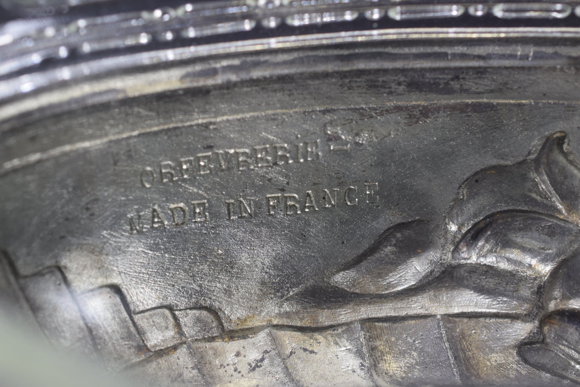 Overall good antique condition with signs of ages. Wears of the silver patina. The thick glass liner is good condition.