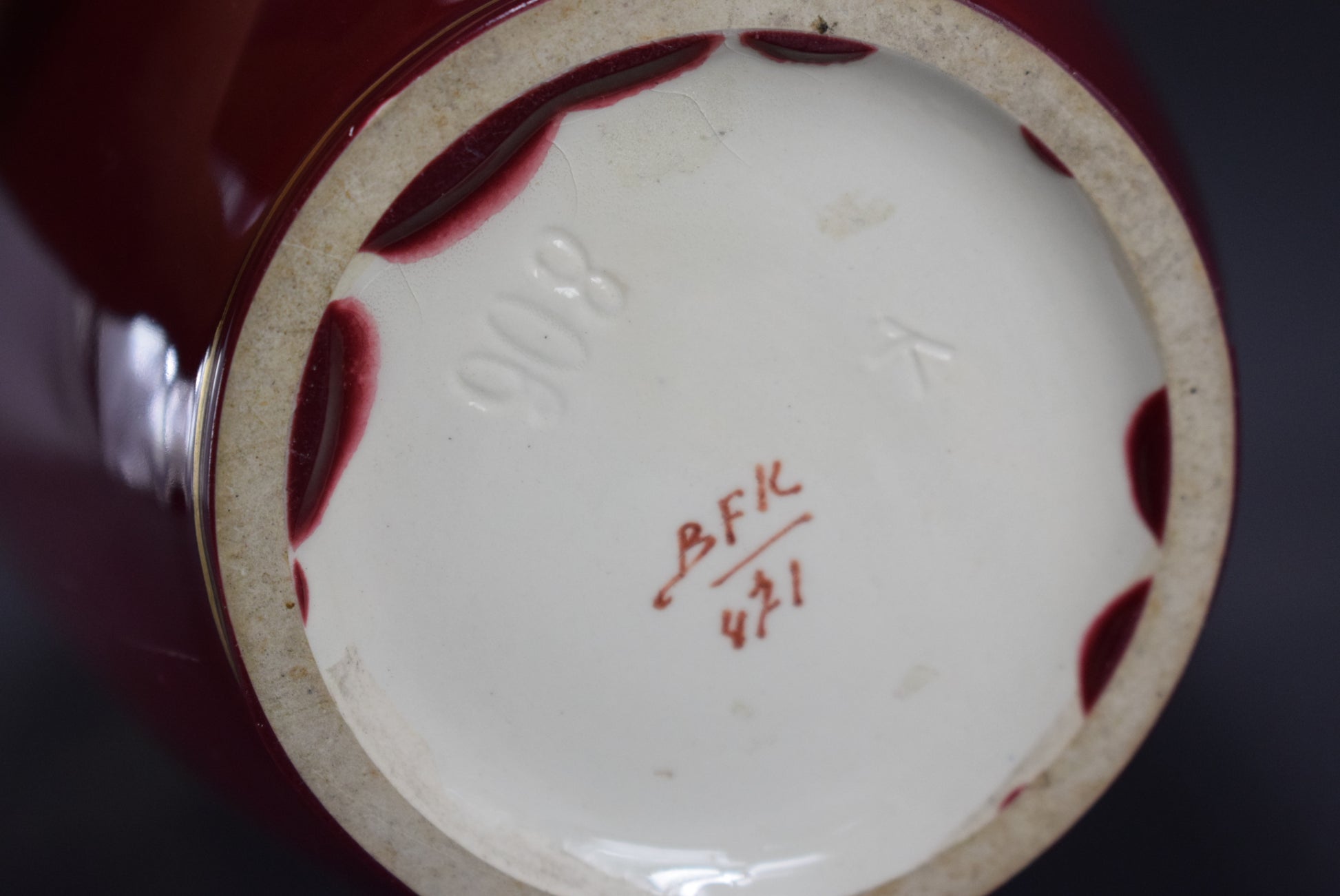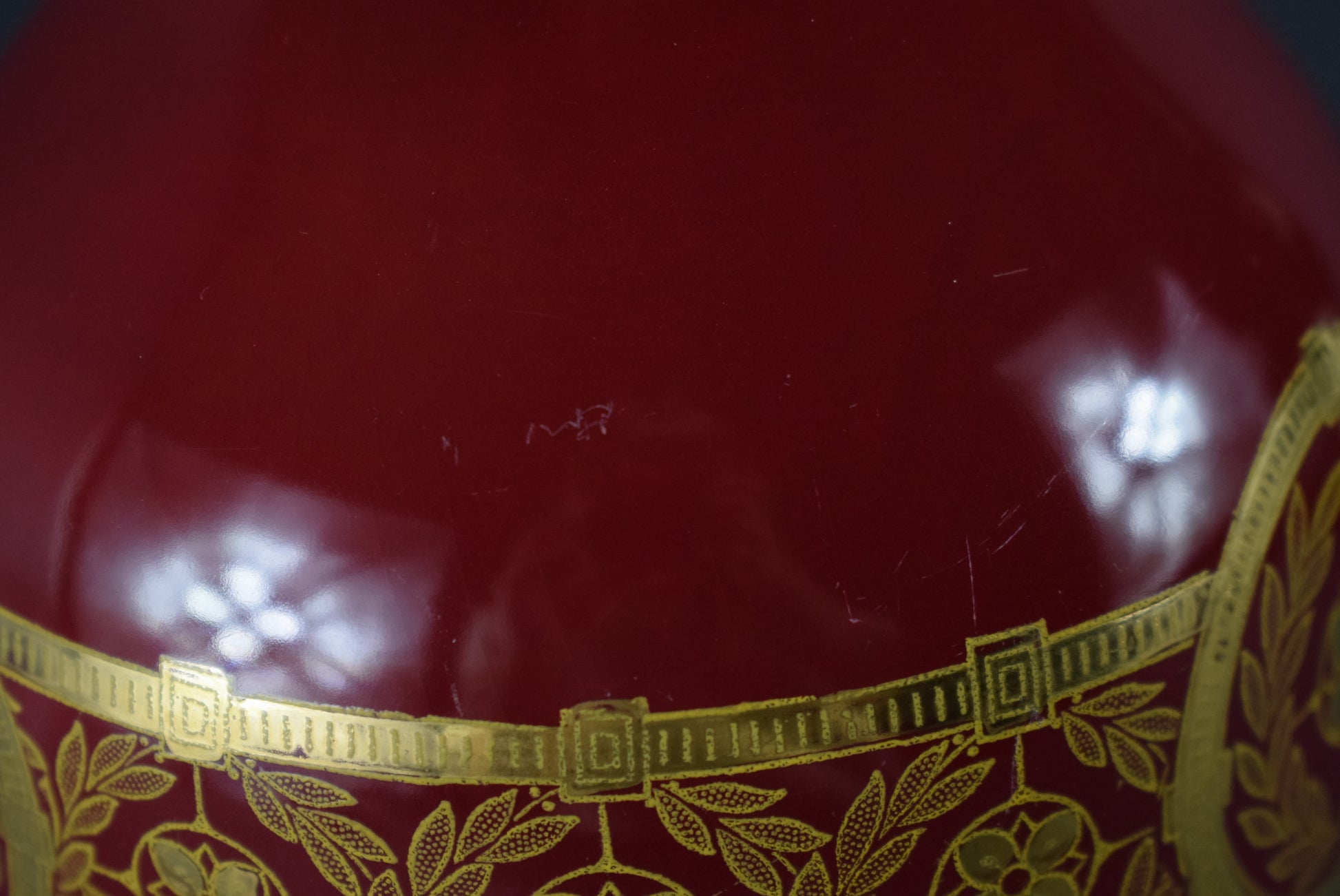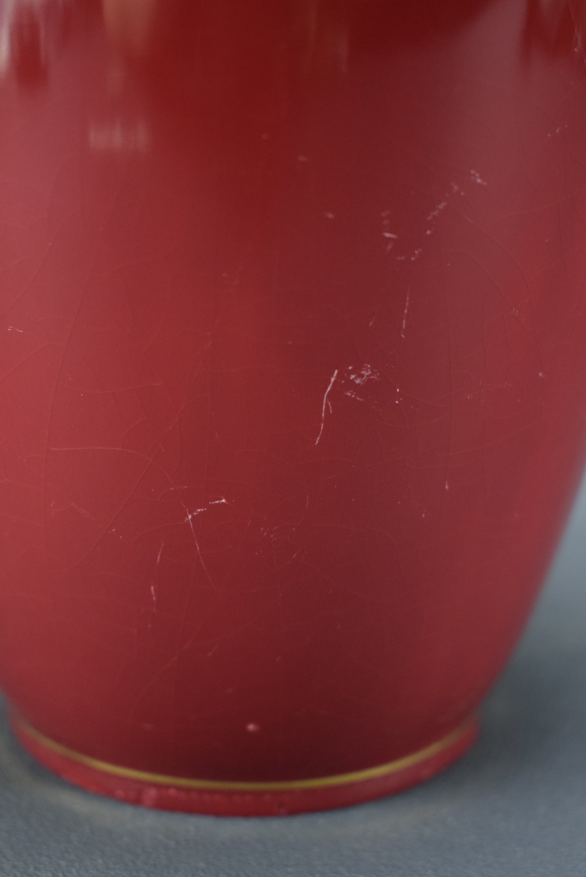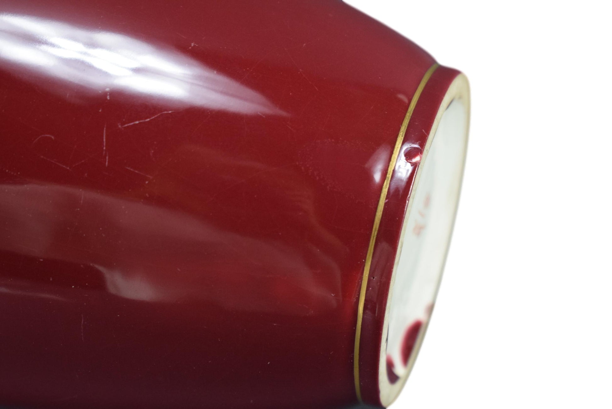 A beautiful French antique vase made of faience and dating to the early 20th century. The Art Deco golden decor features flowers and leaves on a dark red color. It would be wonderful filled with fresh flowers.