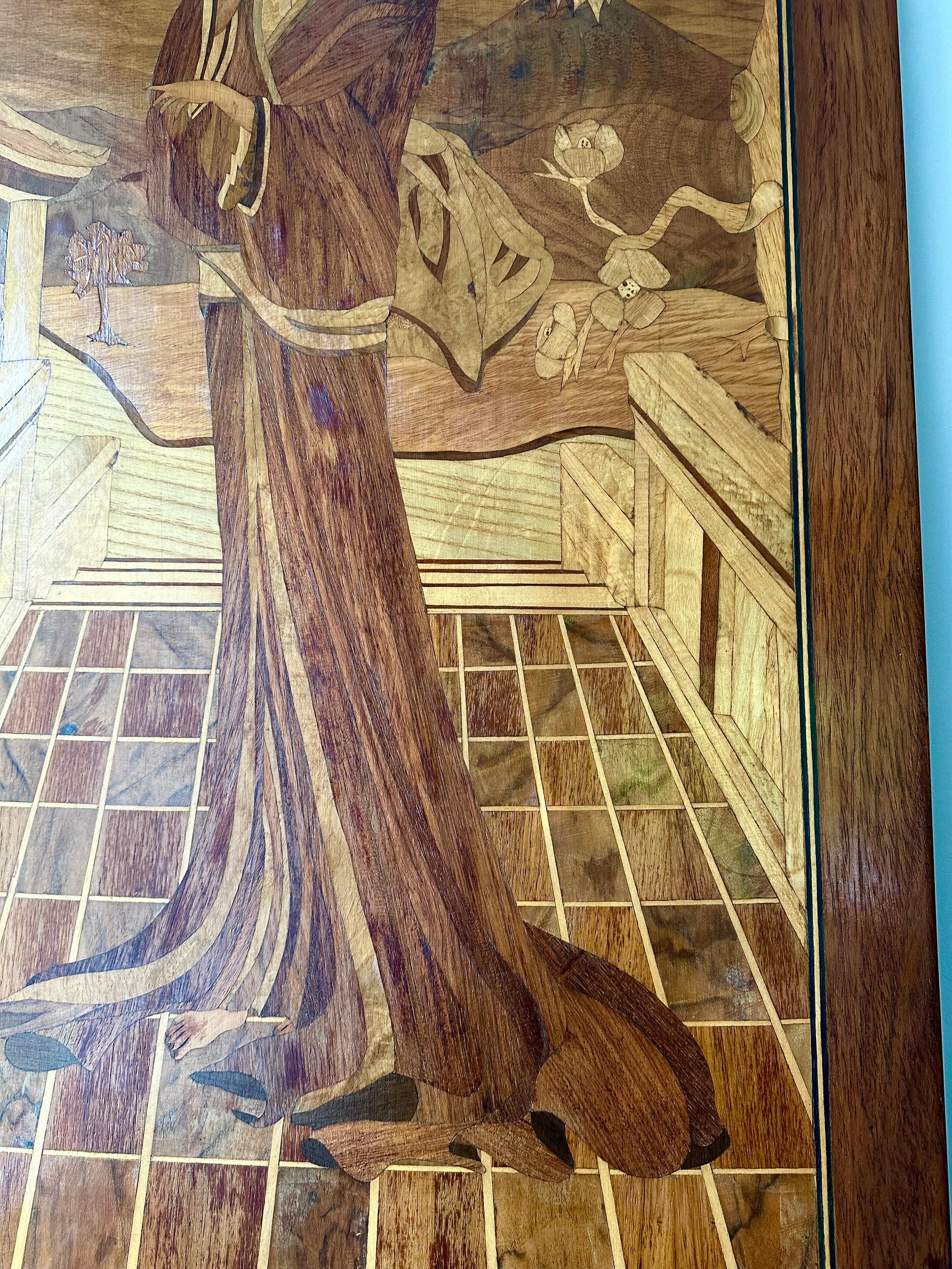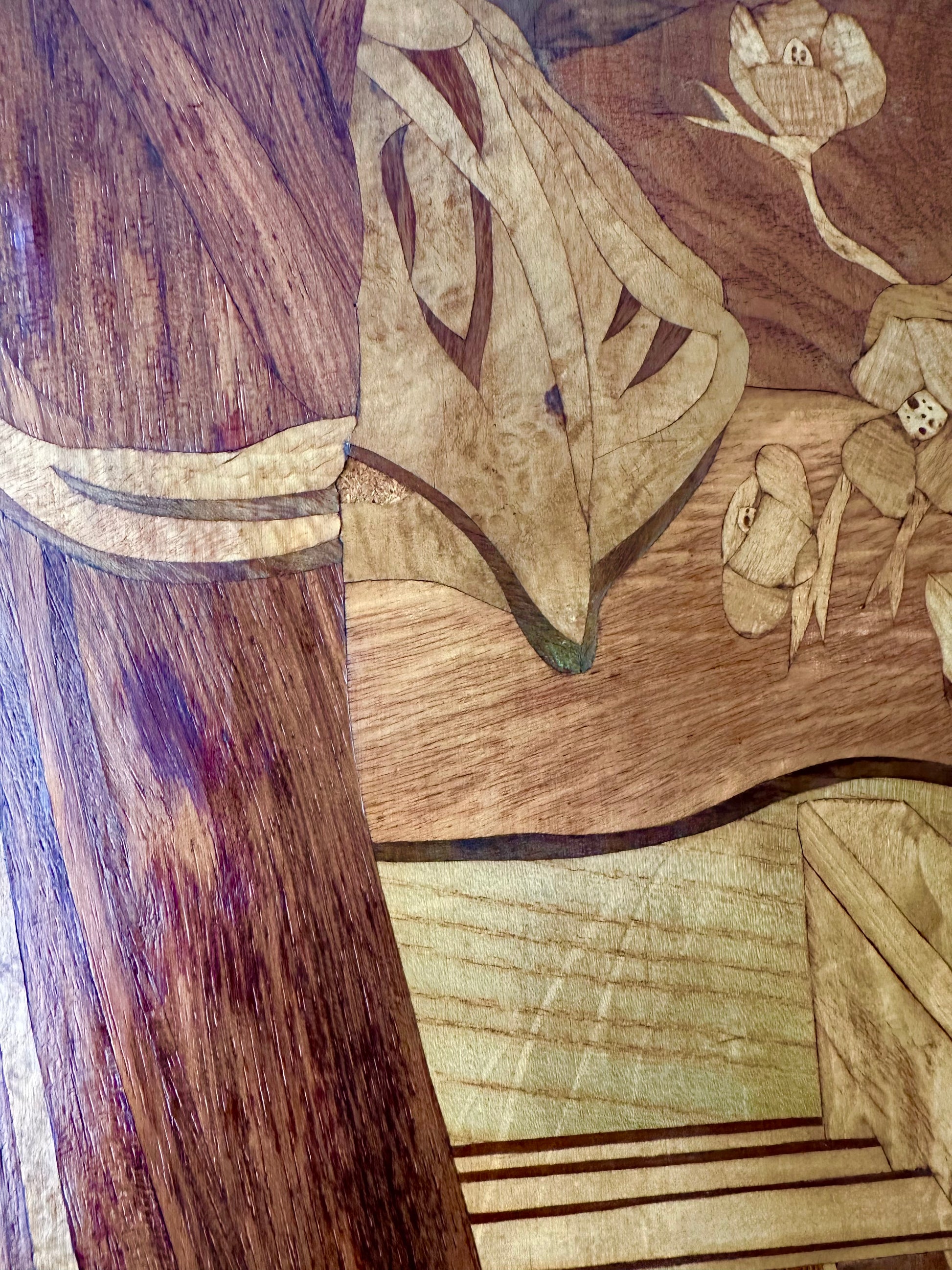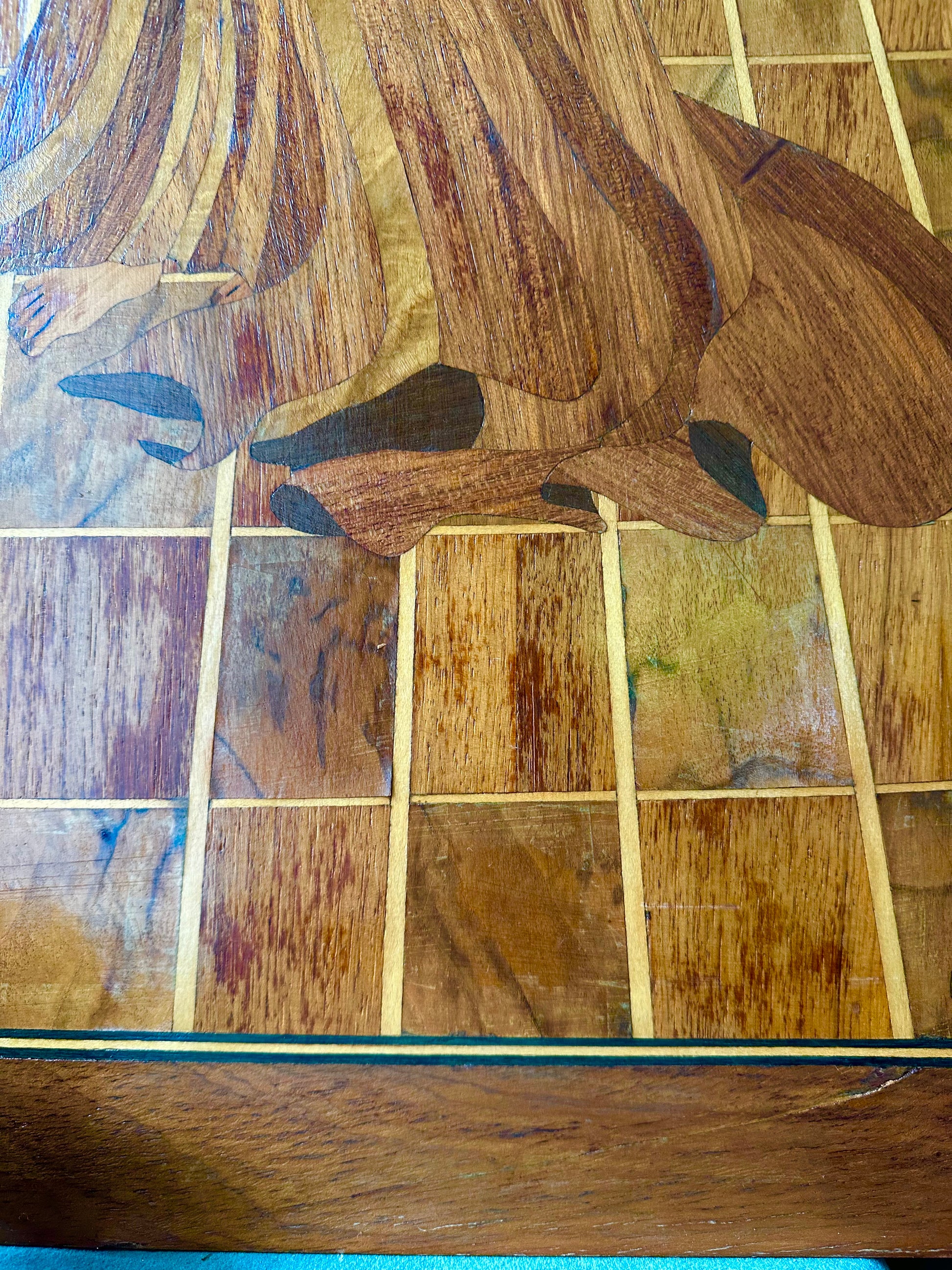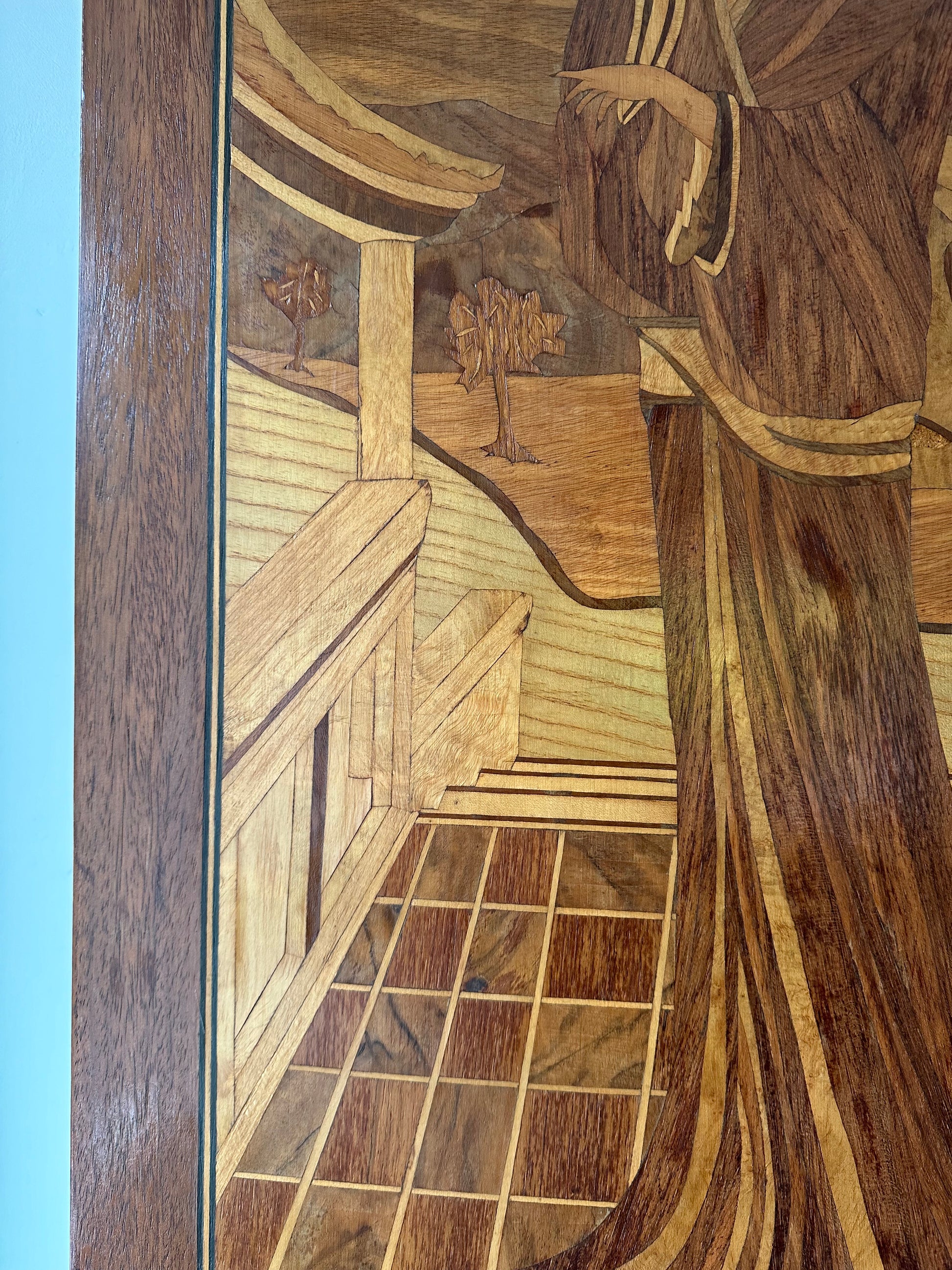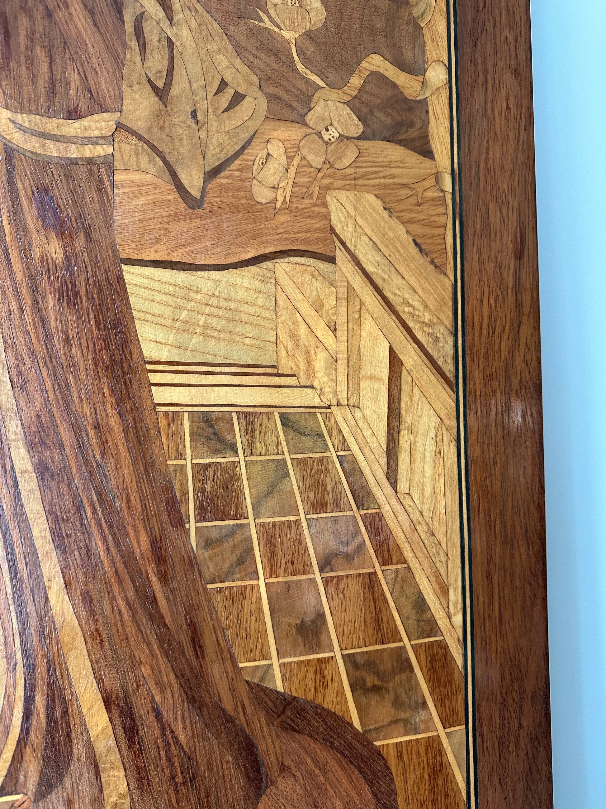 MATERIAL: handmade wood inlaid marquetry on chipboard panel