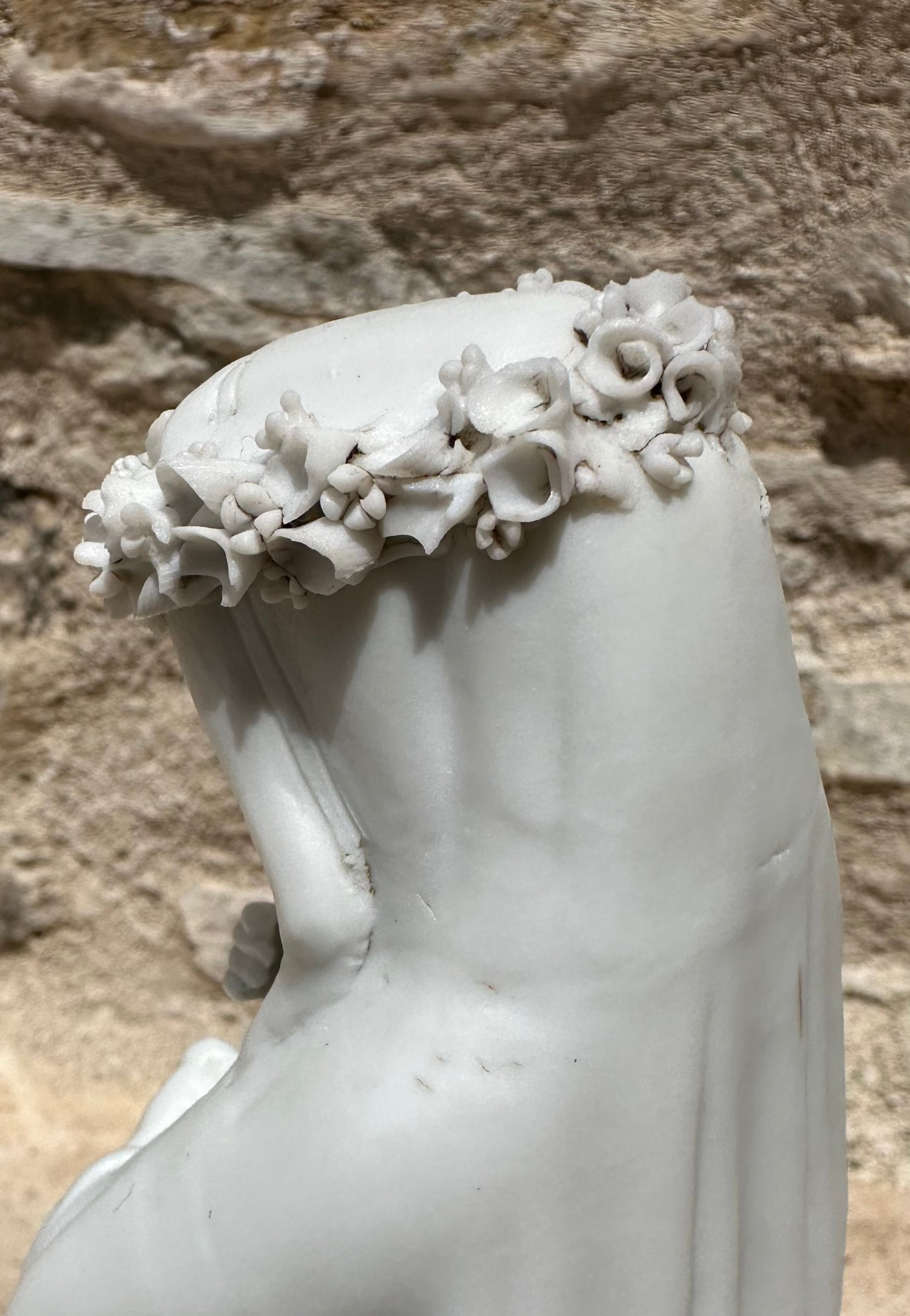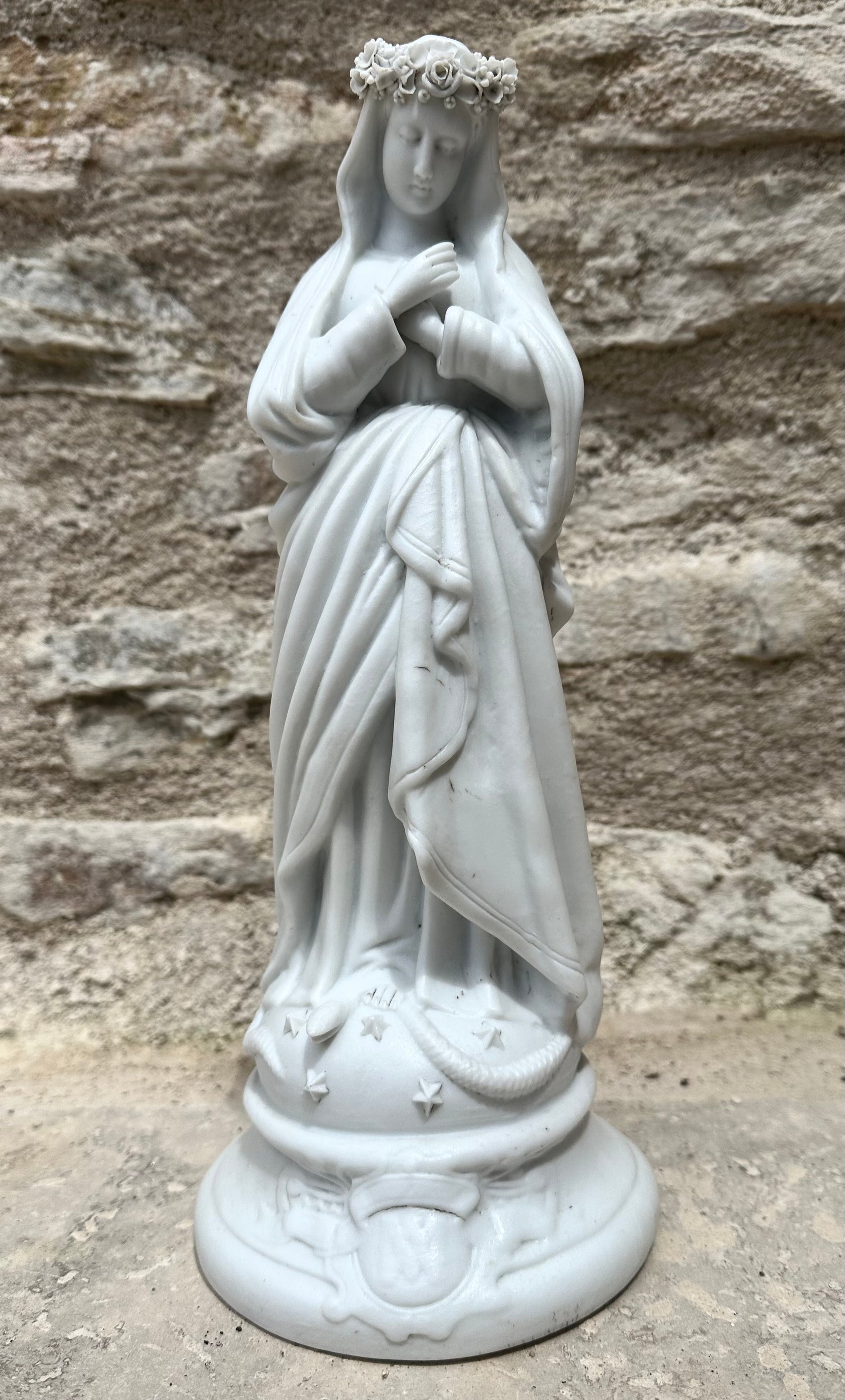 Whether displayed in a home, church, or collection of religious art, this bisque figurine serves as a beautiful reminder of the spiritual and artistic heritage embodied in the veneration of the Virgin Mary.