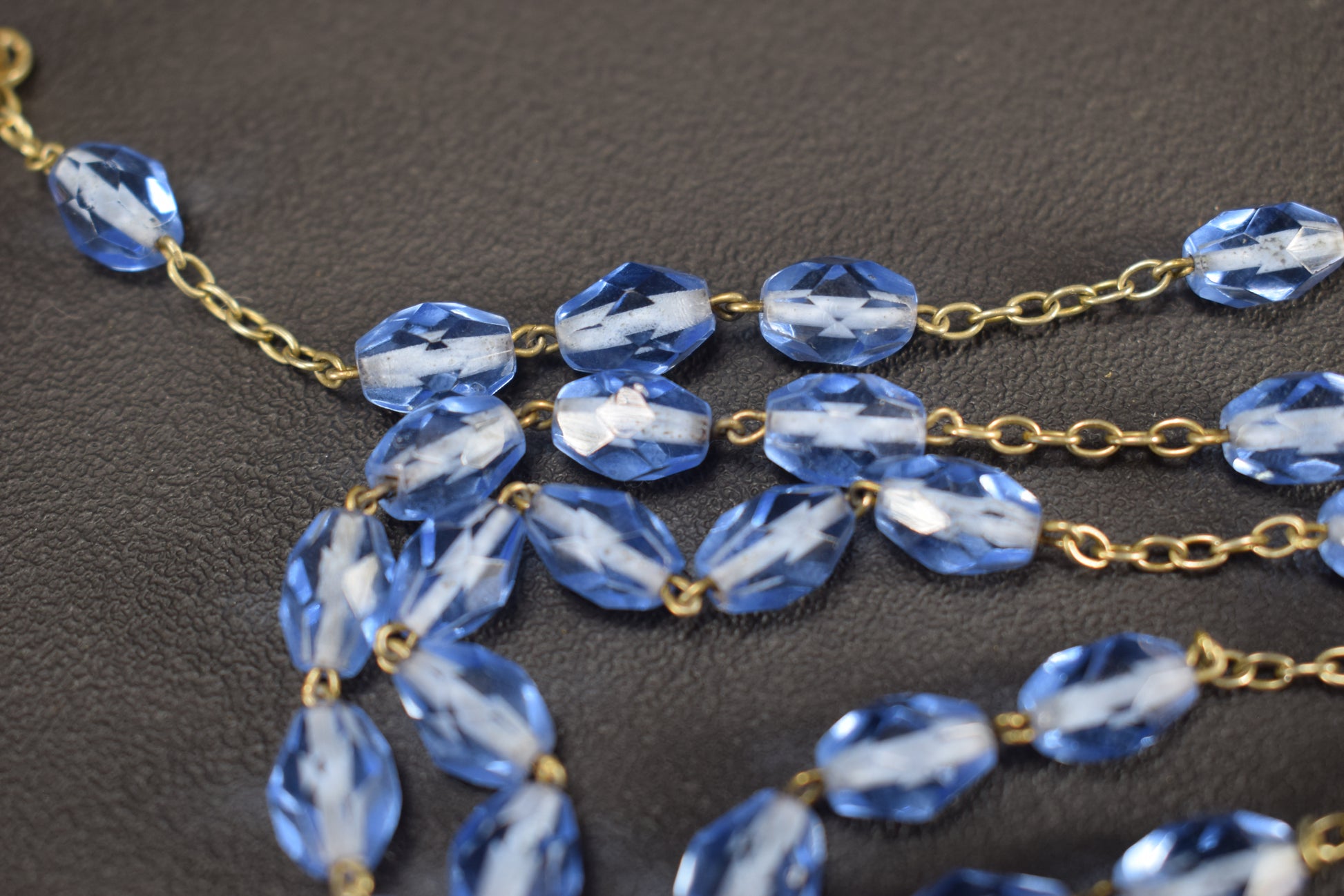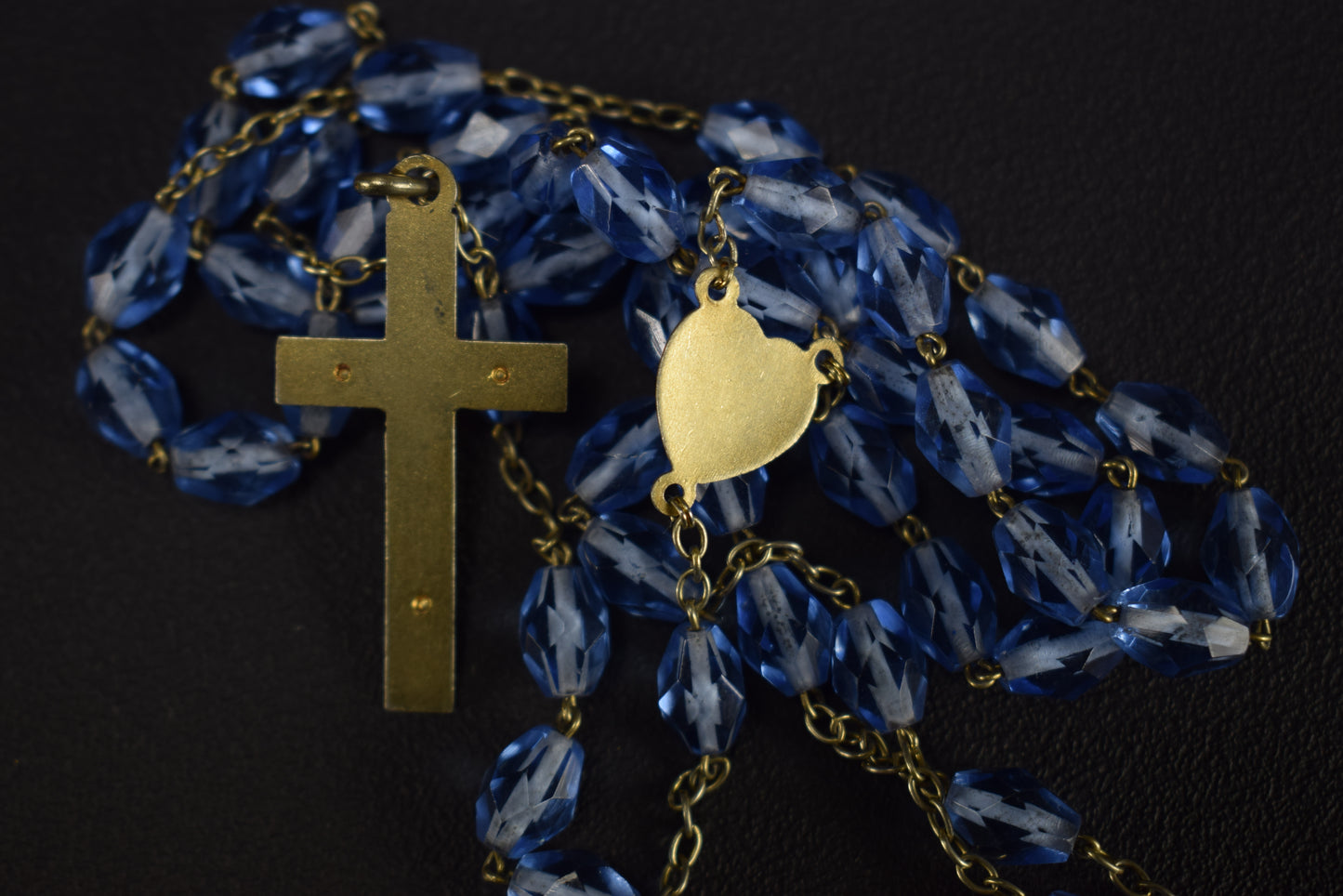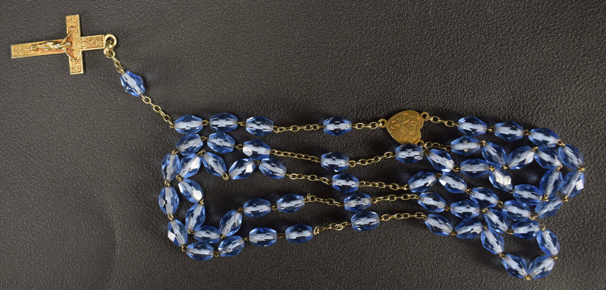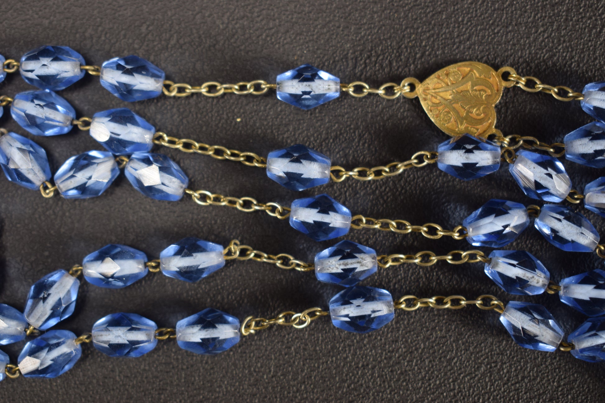 A lovely French antique rosary made of 59 blue faceted glass beads and gold plated sterling silver (vermeil). The Art Nouveau cross and connector are finely crafted.