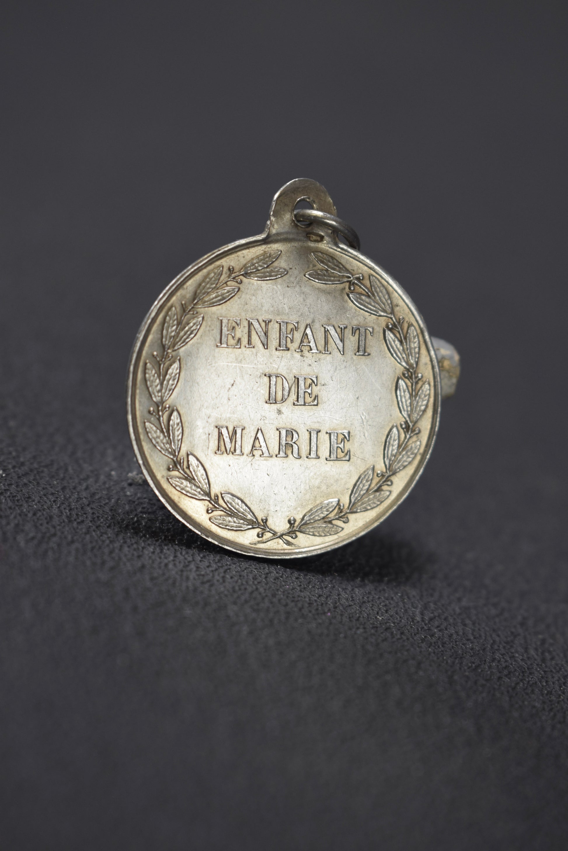 The reverse shows a crown of laurels and the words "Child of Mary" (Enfant de Marie).