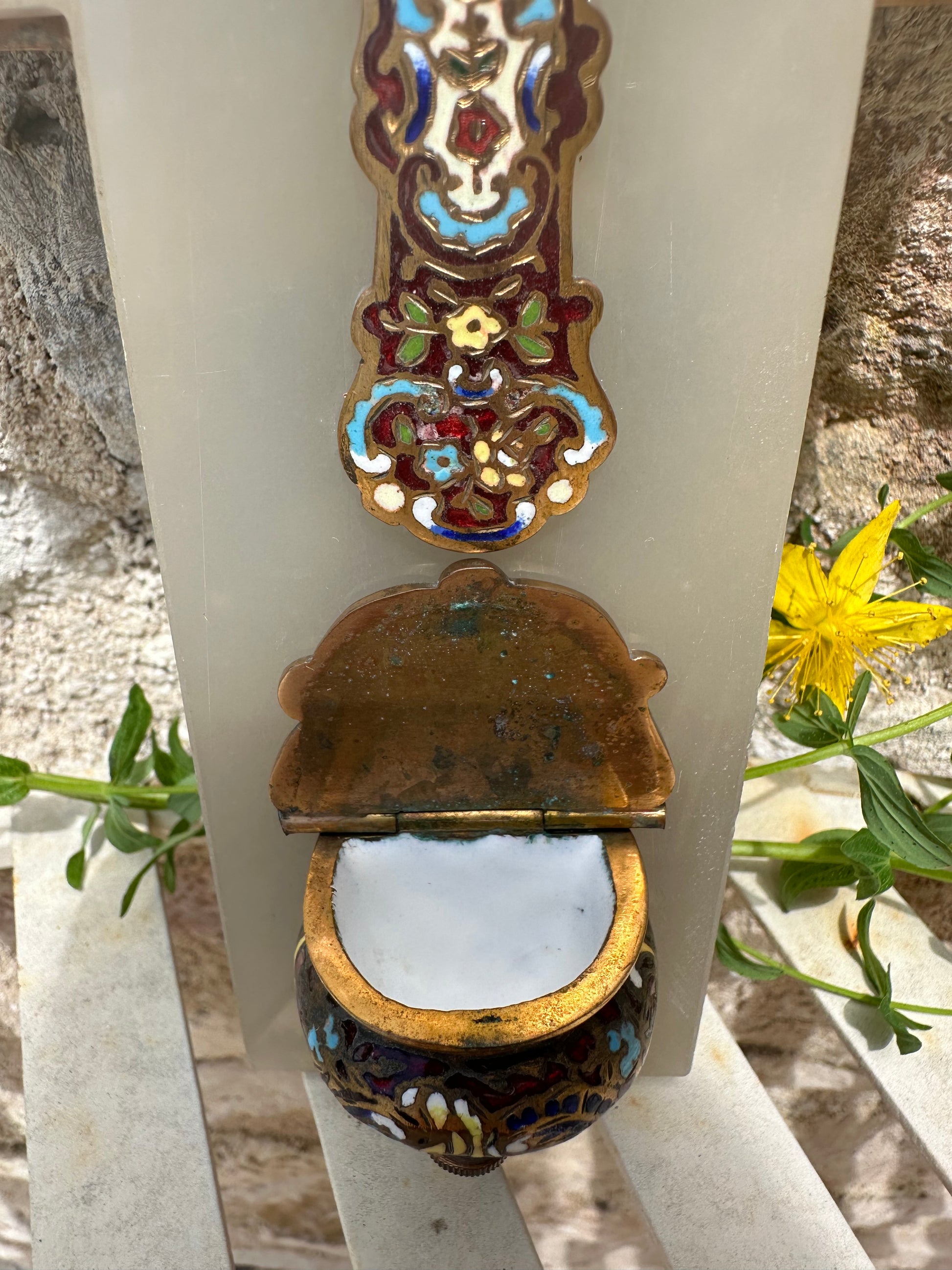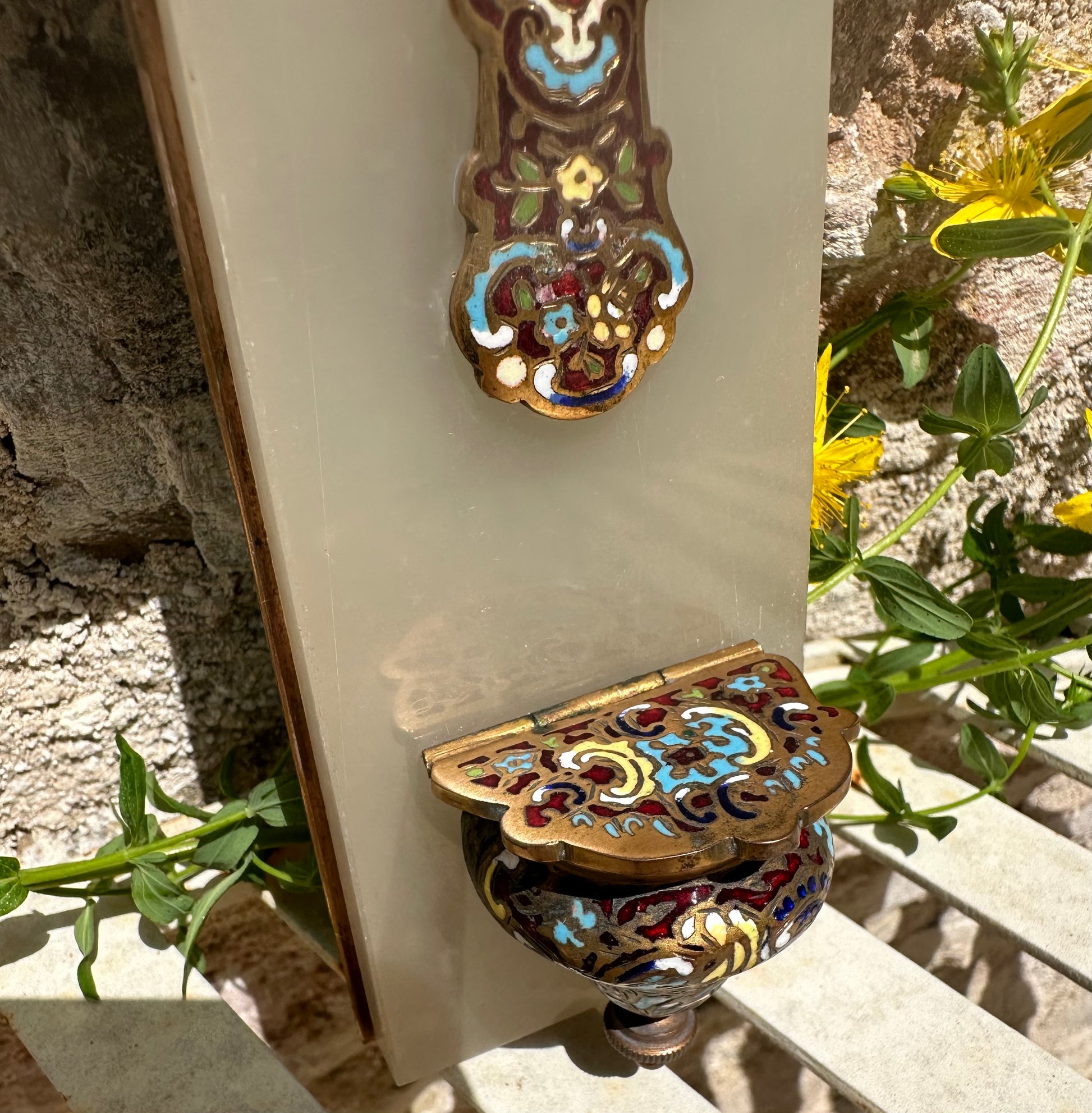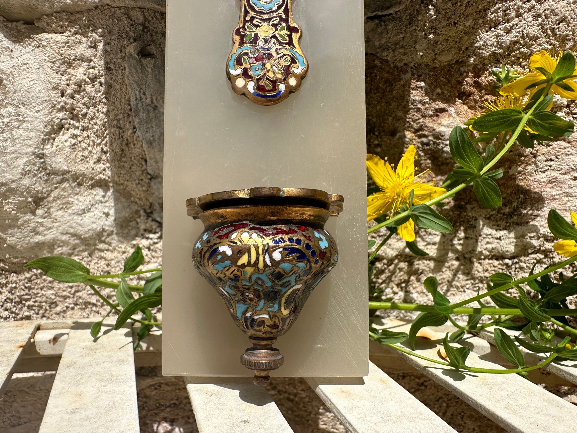 Antique French Cloisonne Enamel Holy Water Font on White Marble