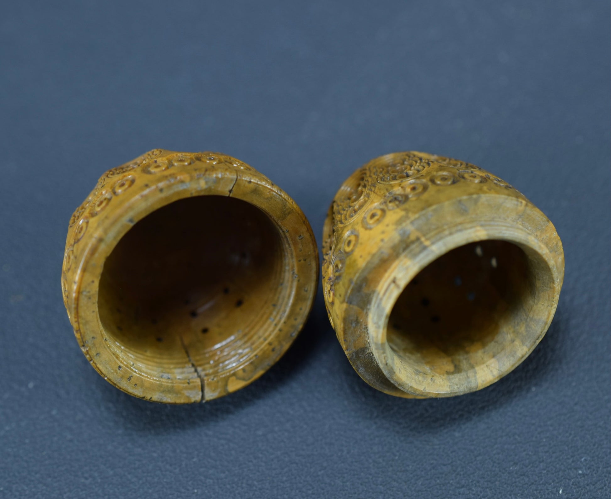 Condition: this tagua nut case is in antique condition. Signs of ages: cracks but not broken. Screws shut perfectly. Please take a close look at the photos.