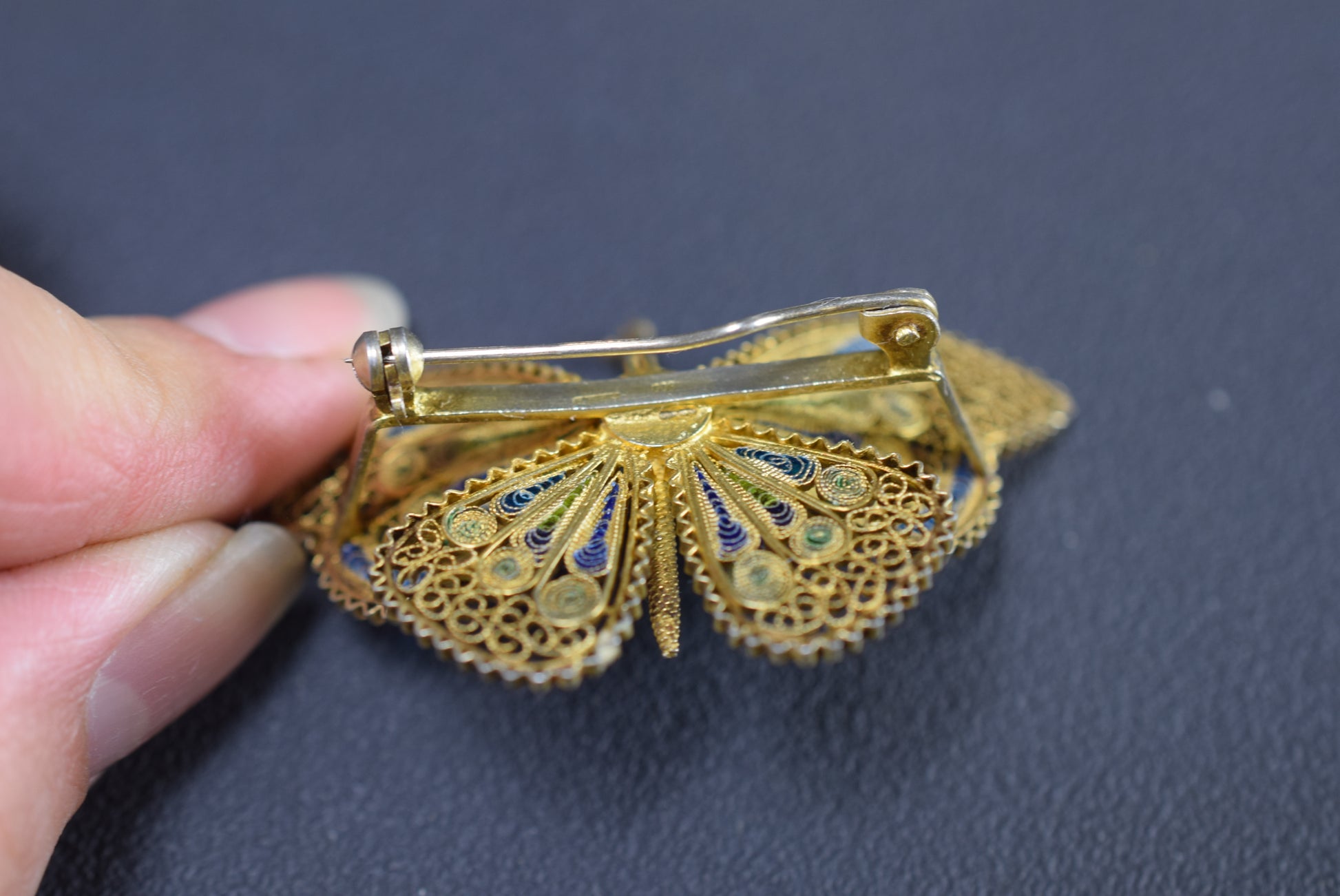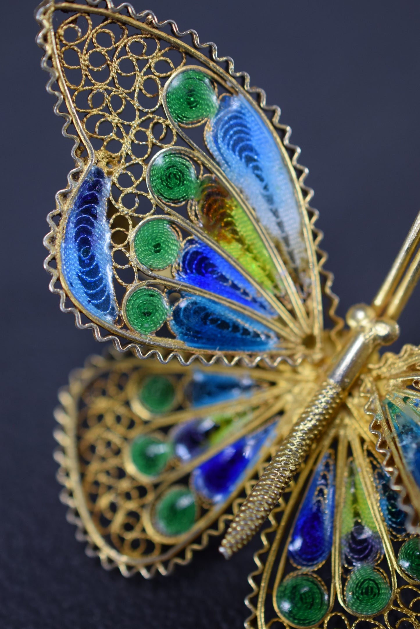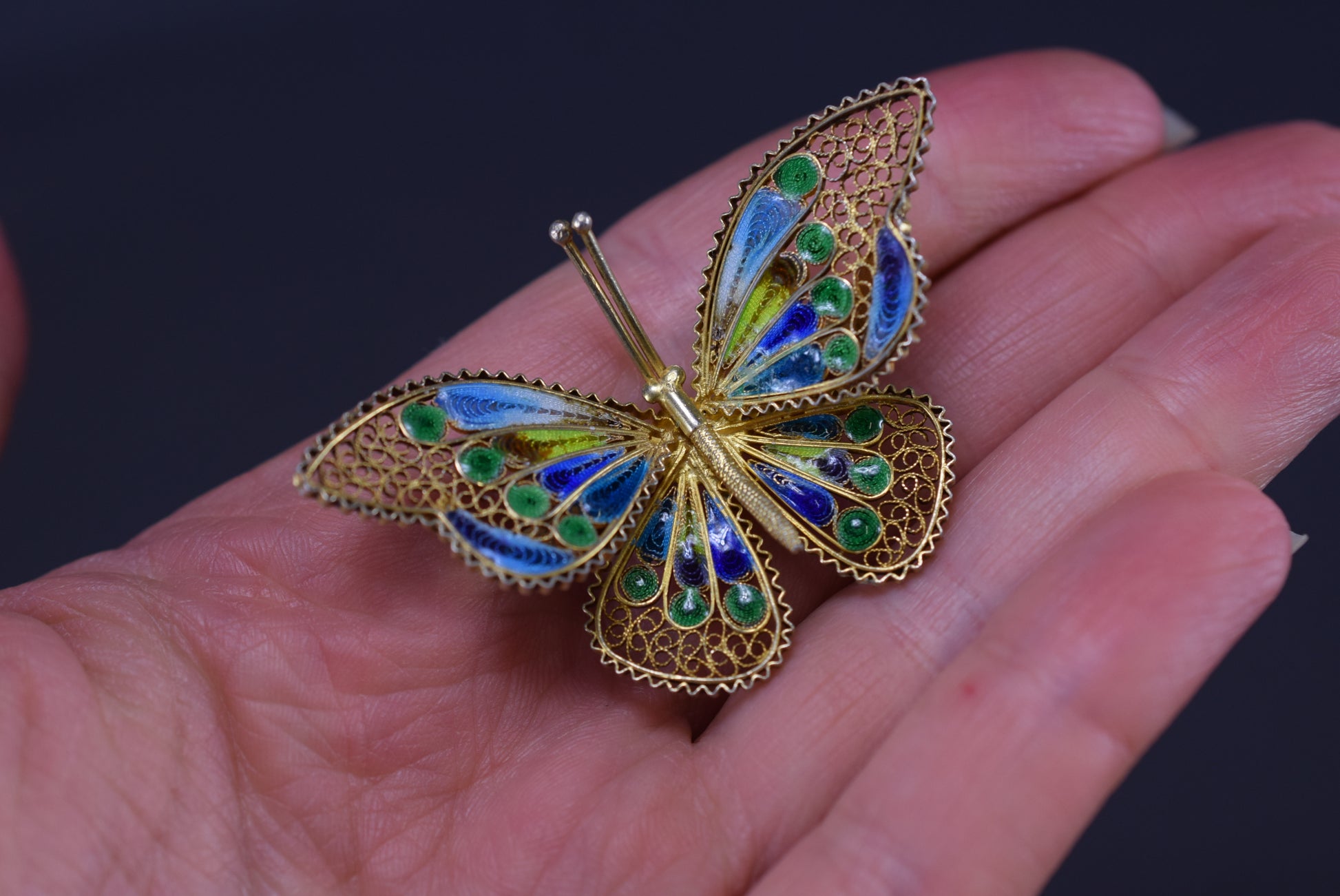 Enamel Filigree Silver Butterfly Brooch