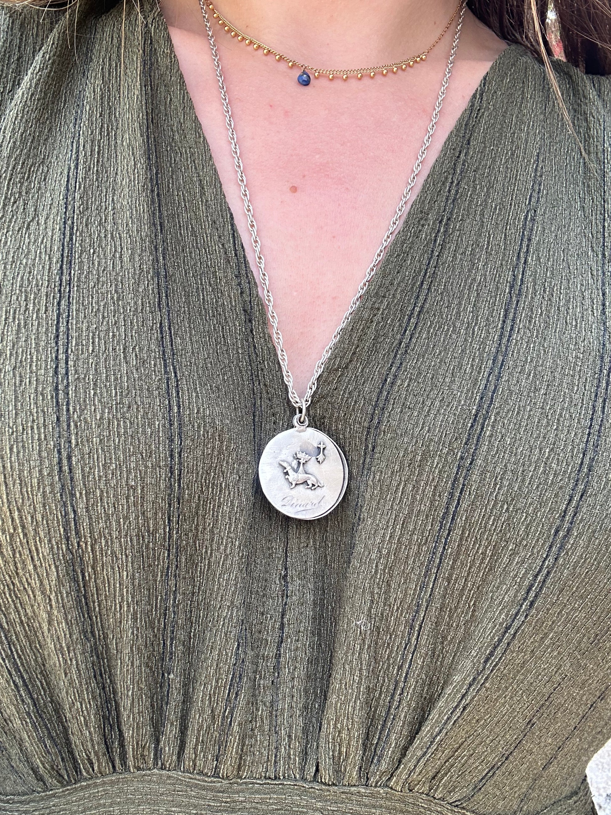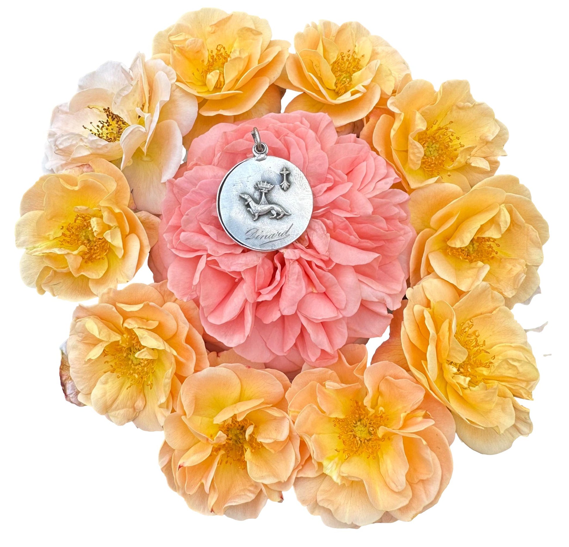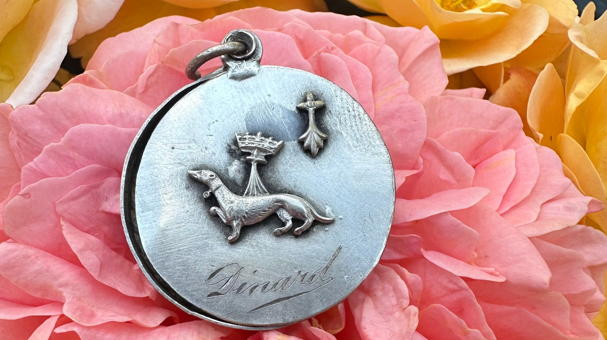 The front of the locket is adorned with the symbol of the French region of Brittany: the ermine. The ermine is a symbol of purity and honesty. The ermine emblem was adopted by Anne de Bretagne in the 15th century. The name of the renowned Breton seaside resort of Dinard is inscribed.