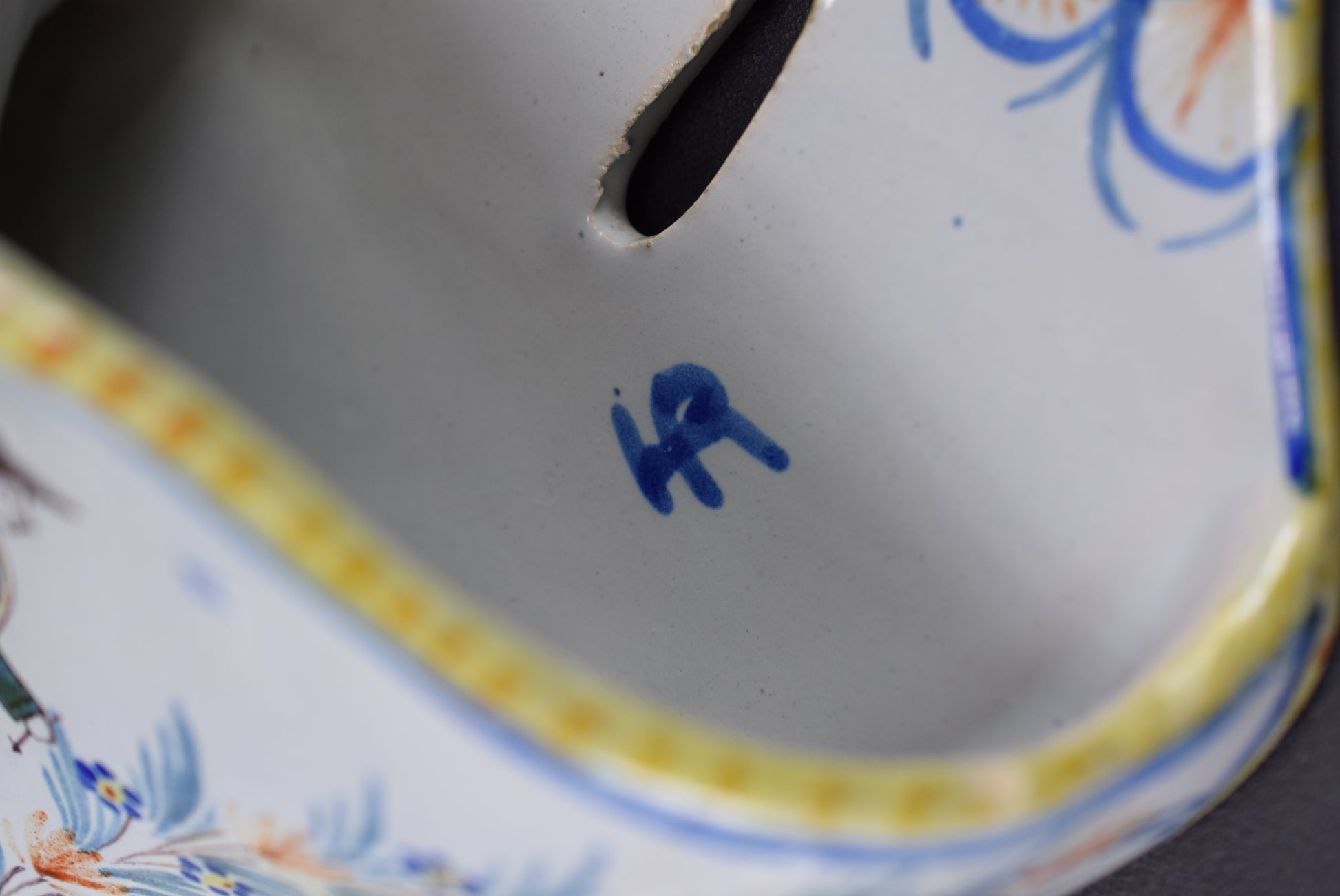 "The mark HR used without the addition of "Quimper" was affixed on earthenware parts from 1891 by the factory Henriot. By 1900 this monogram stops being only used and we find then "HR Quimper"."