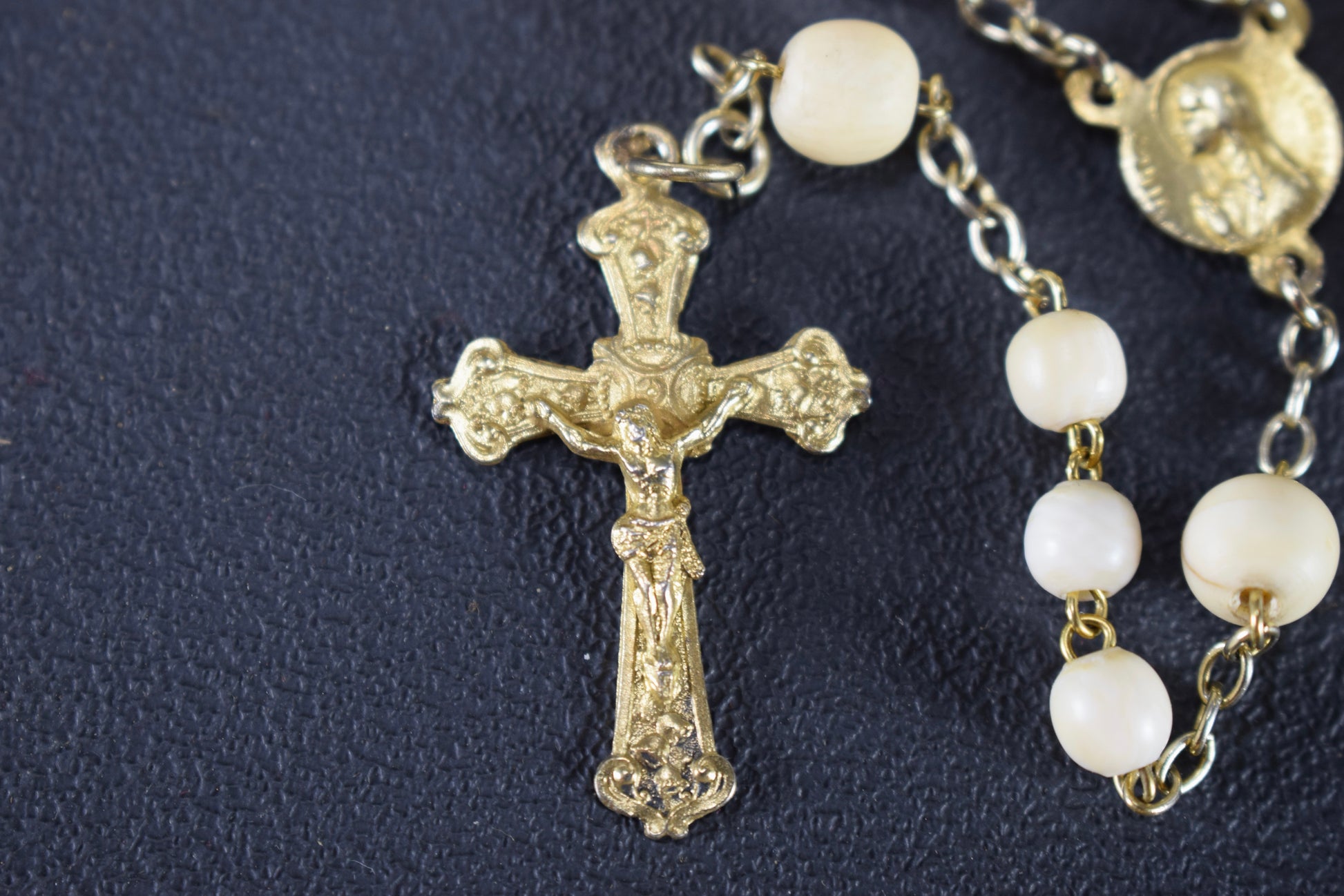 This classic religious jewelry would be a great Communion present or wedding gift and is in good antique condition with some normal signs of ages.