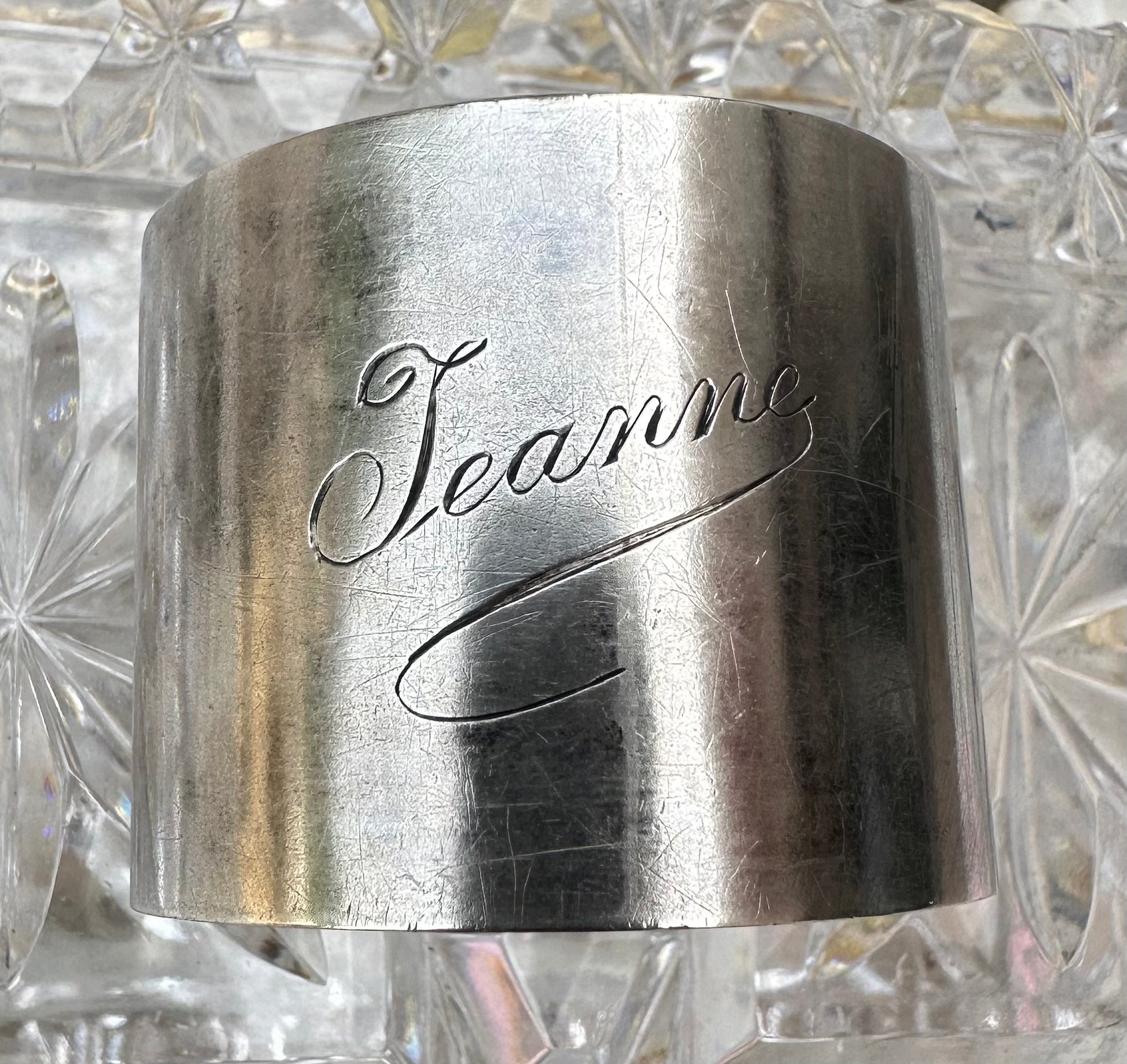 This 1900's silver napkin ring would be a perfect gift for all Jeanne at any occasions.