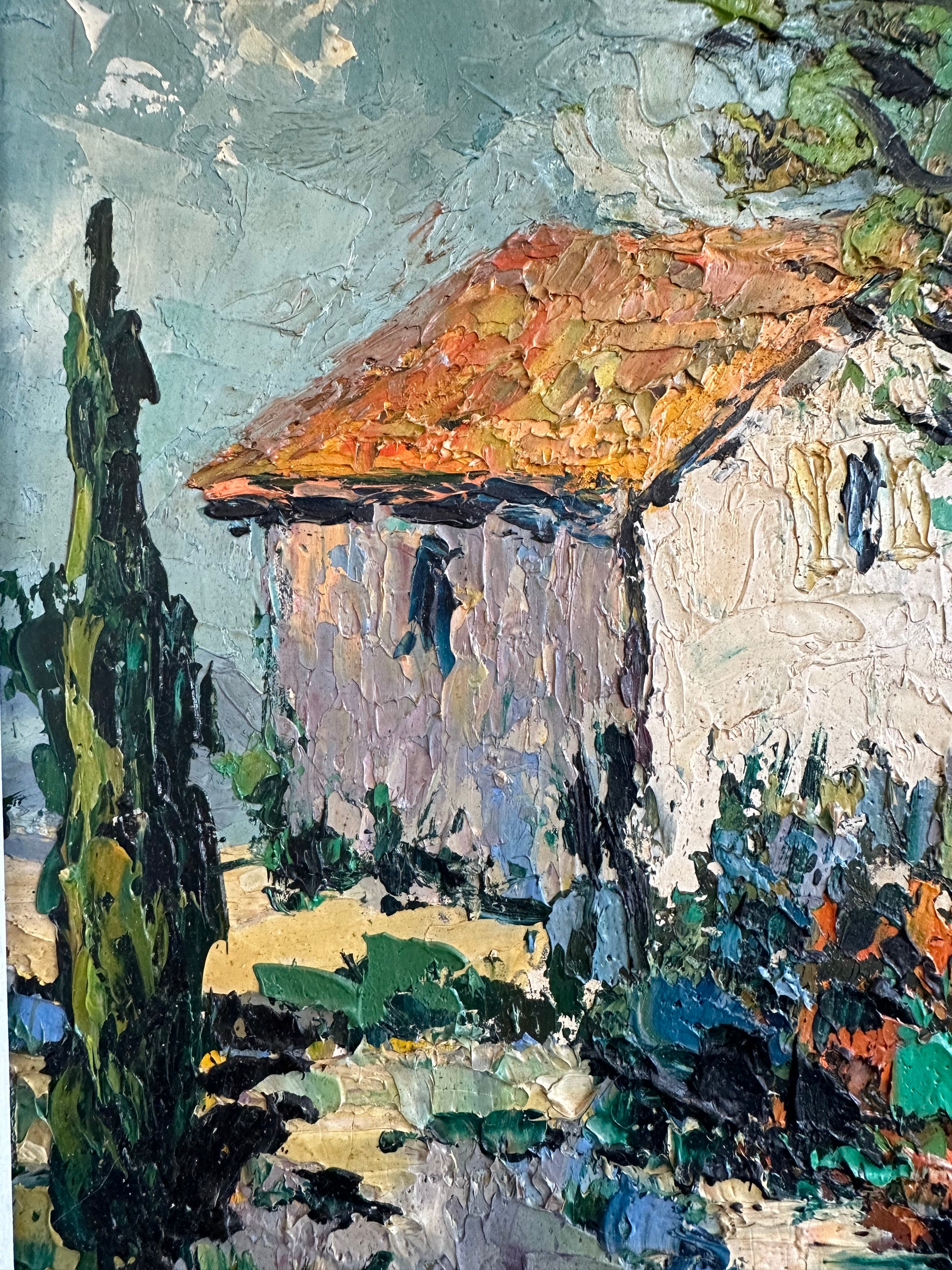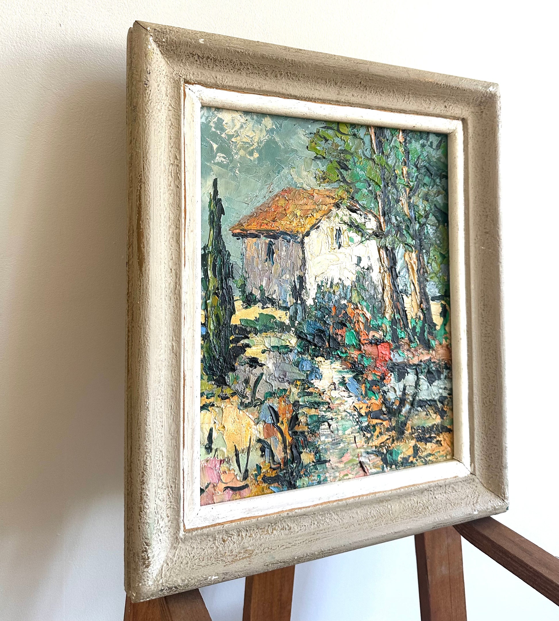 Bring a touch of Provence in your home with this beautiful vintage knife oil painting of a Provencal house.