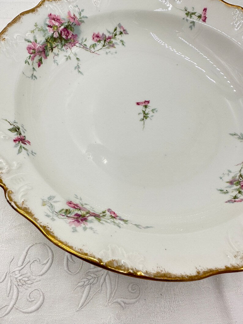 The wild rose designs add a touch of natural beauty and elegance, making these dishes perfect for both formal occasions and everyday use. Ideal for a variety of serving purposes, these dishes can effortlessly elevate the presentation of any meal. As antique pieces, they add historical value and charm to any fine china collection, reflecting the timeless artistry of Limoges porcelain.