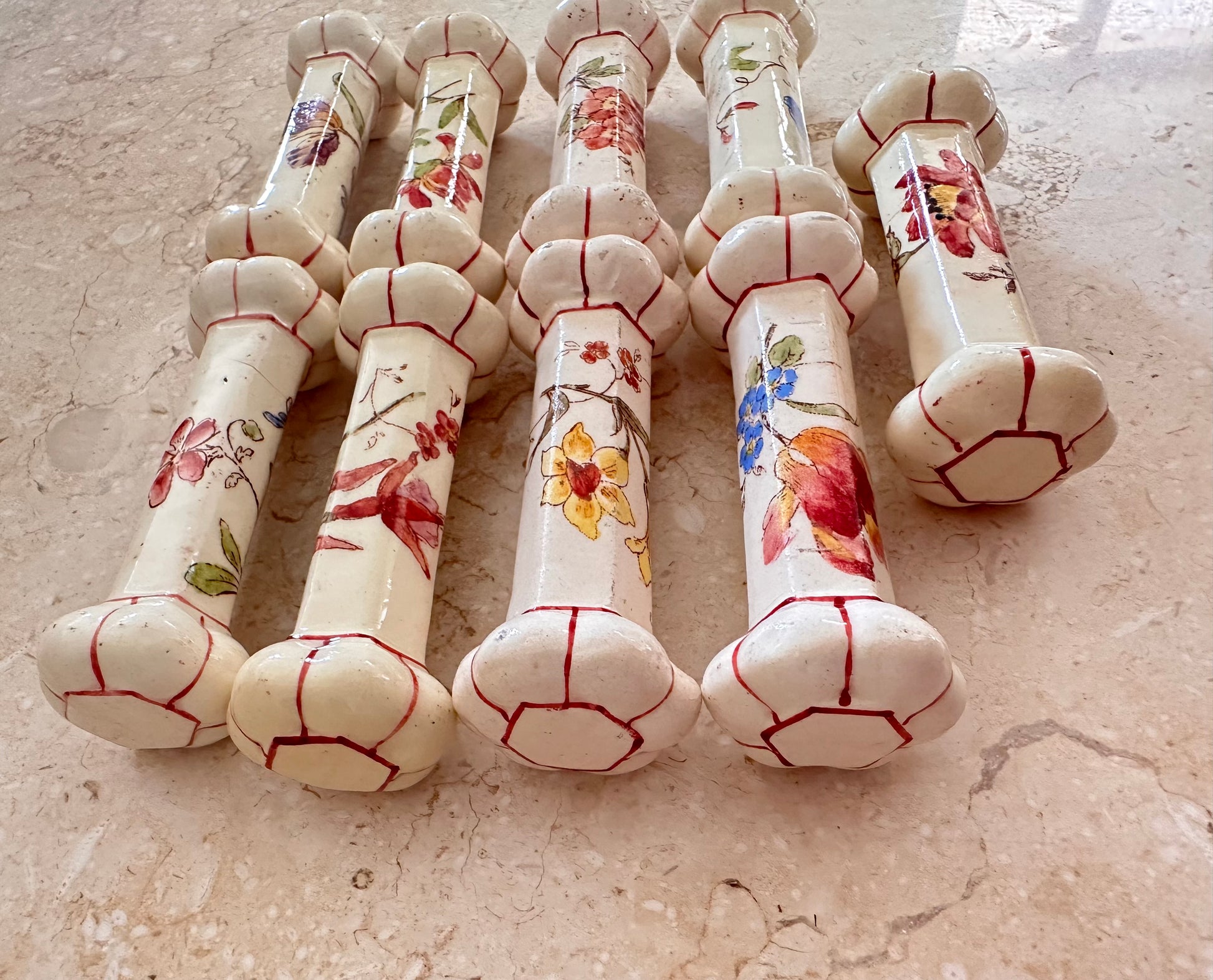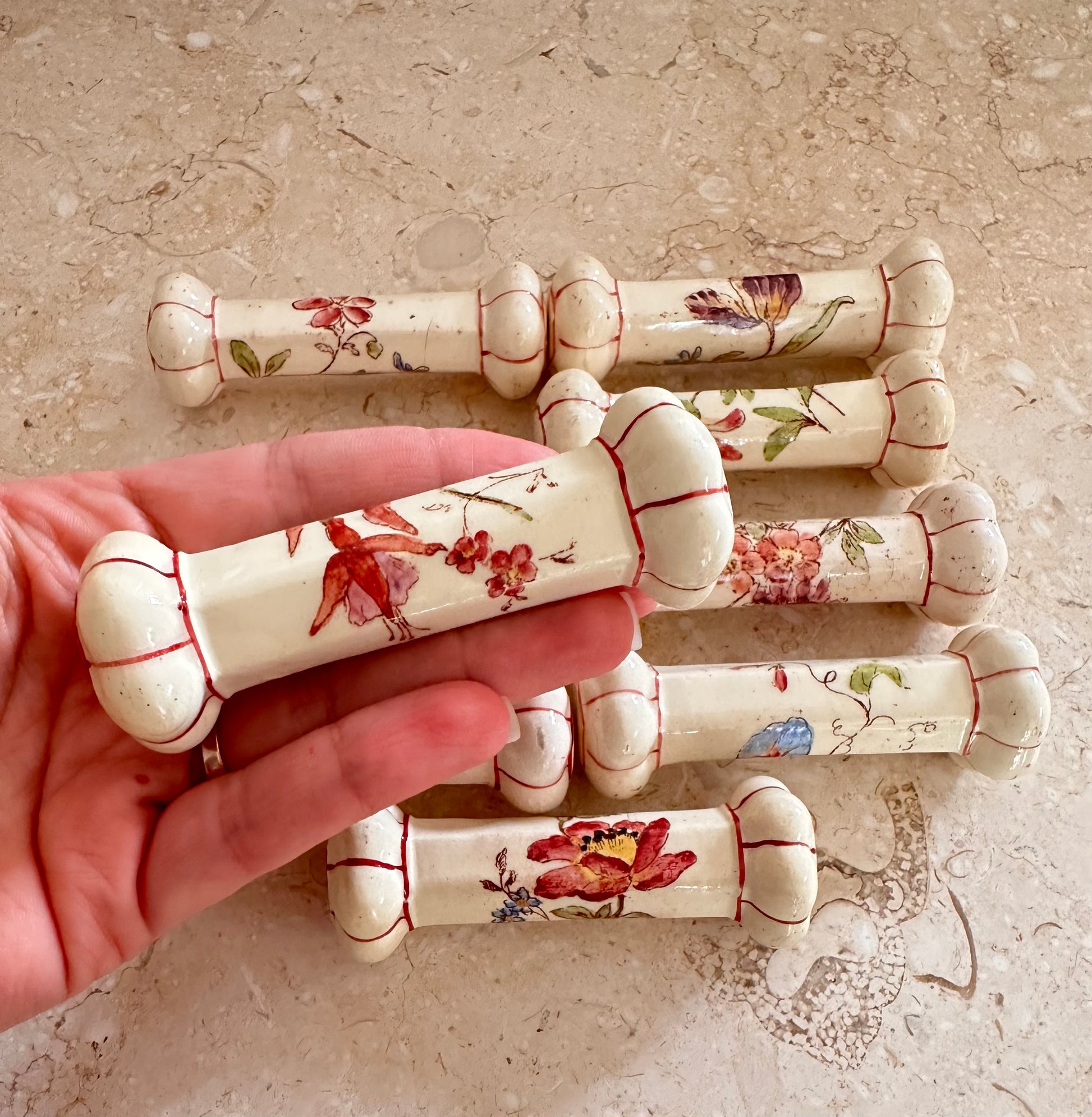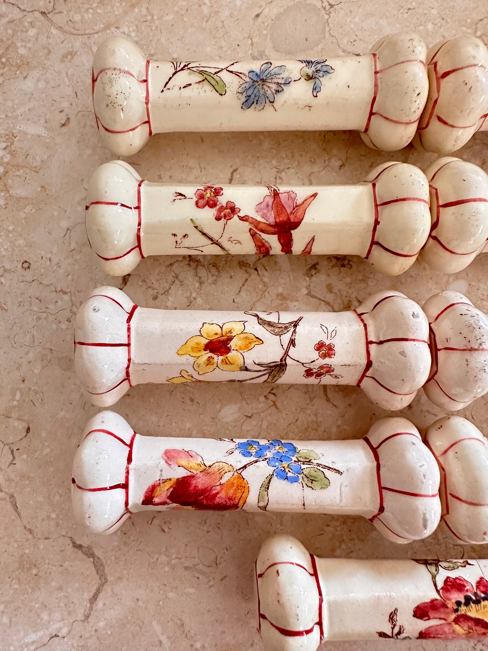 Vintage Handpainted Ceramic Knife Rests set of 9 Longchamp Pottery Antique French