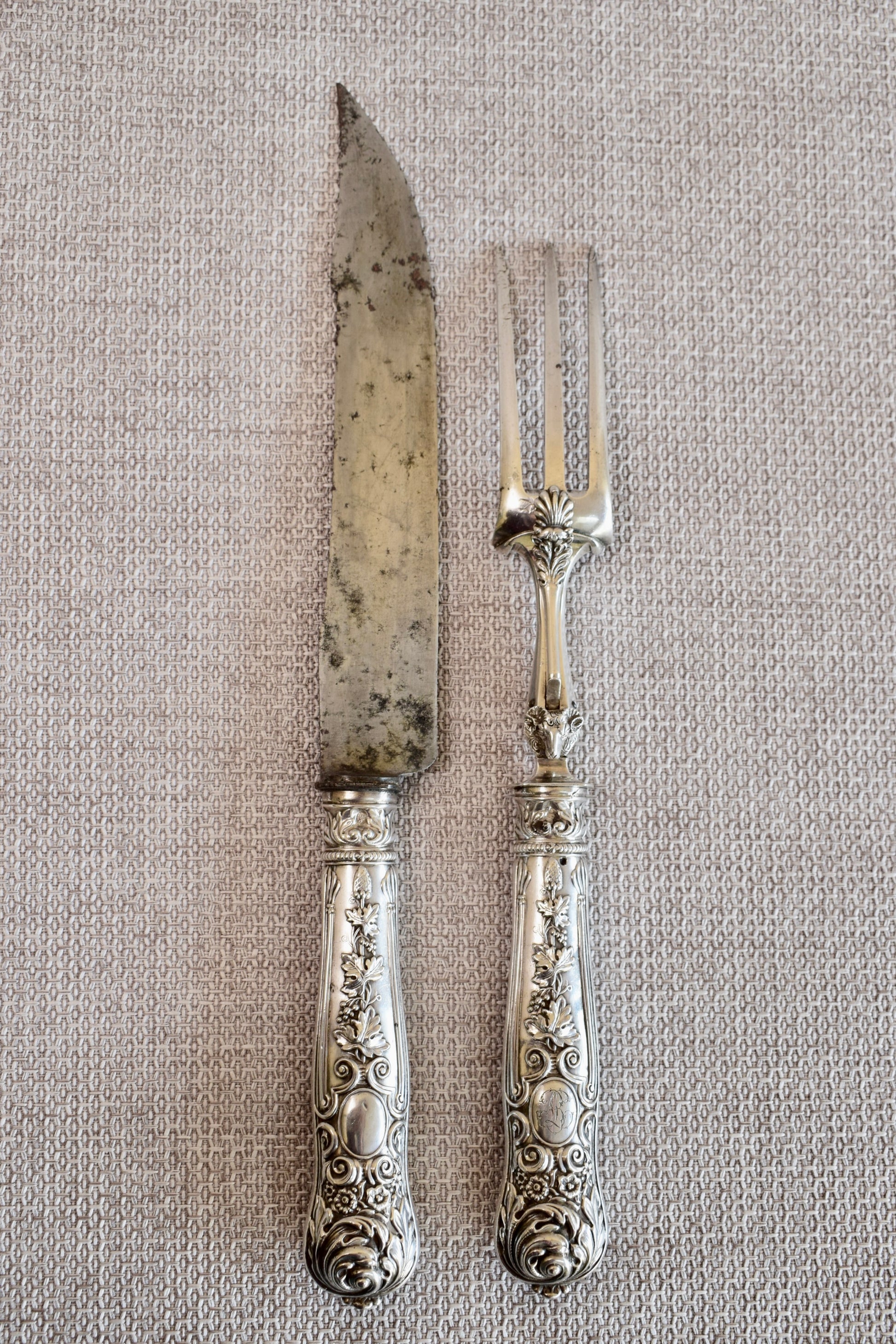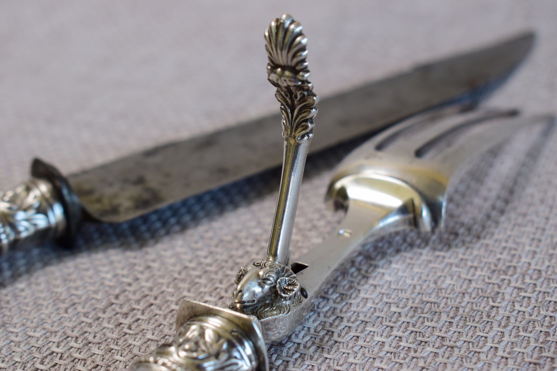A rare and beautifully preserved example of early Victorian-era French silver, this carving set is not only a functional heirloom but also a work of art that reflects the sophistication and attention to detail characteristic of Parisian silversmithing during the Restauration period.