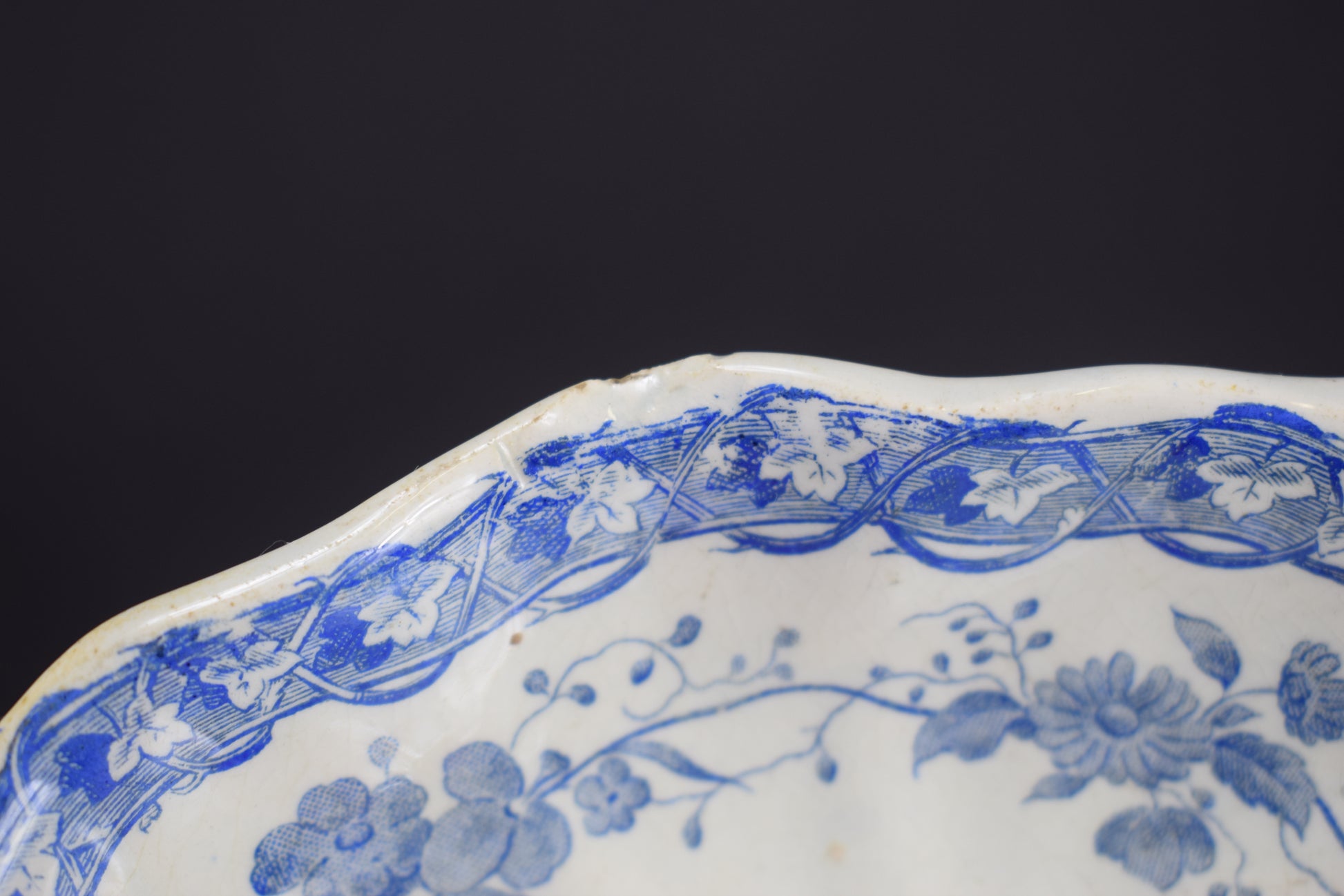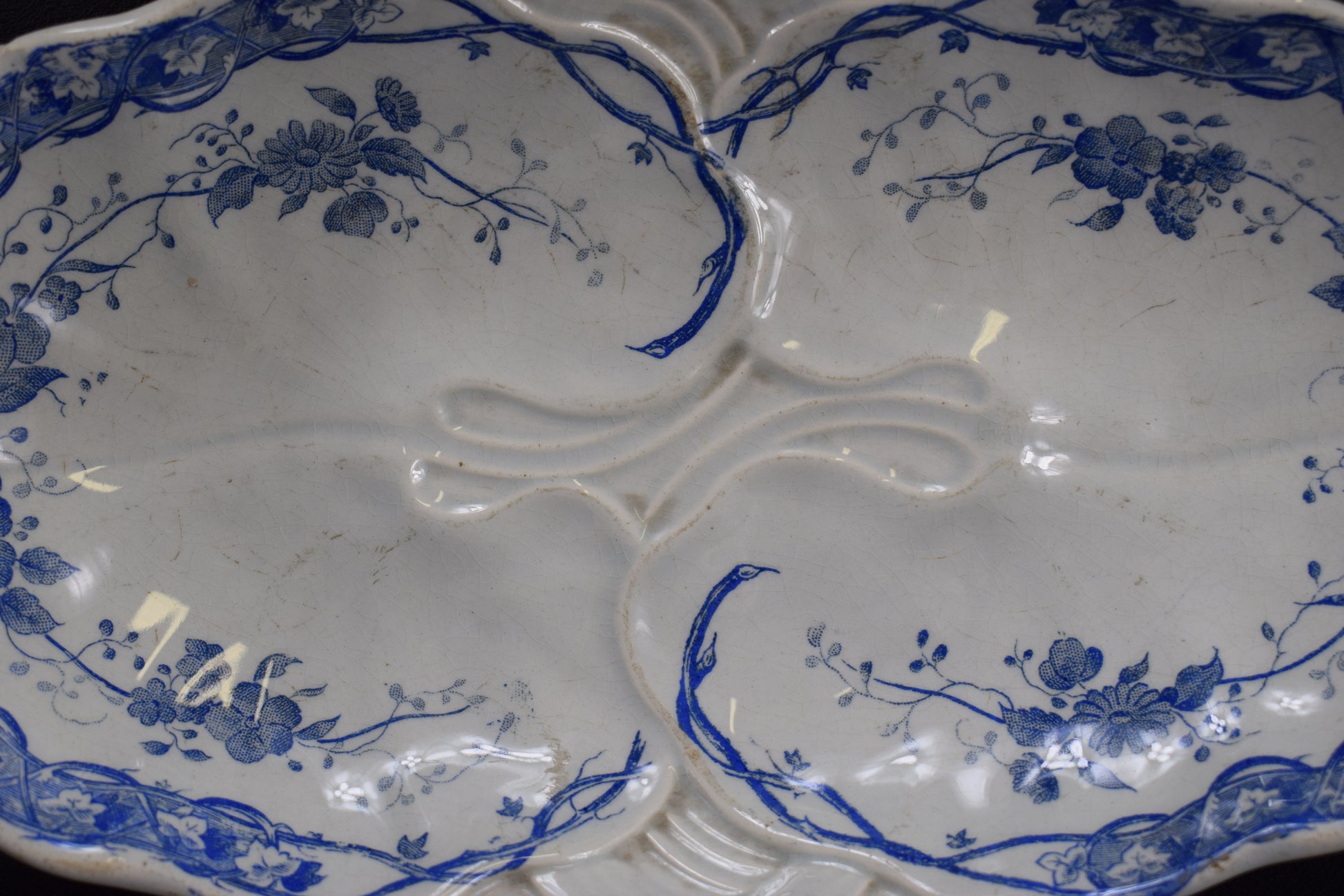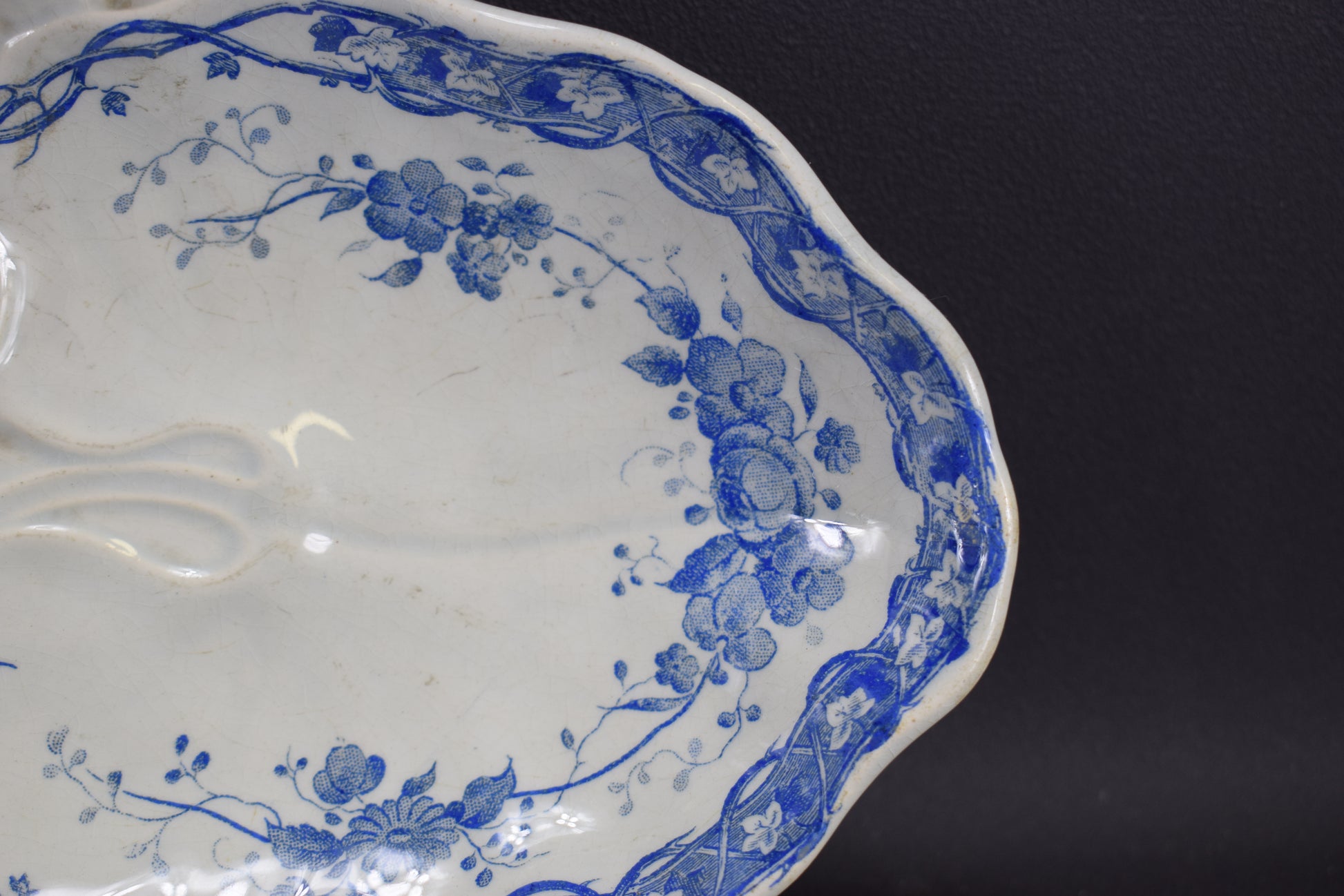 Creil & Montereau has produced these beautiful serving dishes. The charming blue decor features printed underglaze flowers, fruits and vine leaves. This pattern is called "Vigne". This pair of serving dishes is perfect to serve hors d'oeuvre.