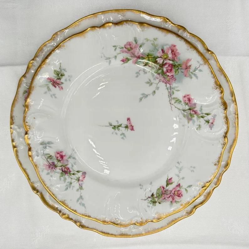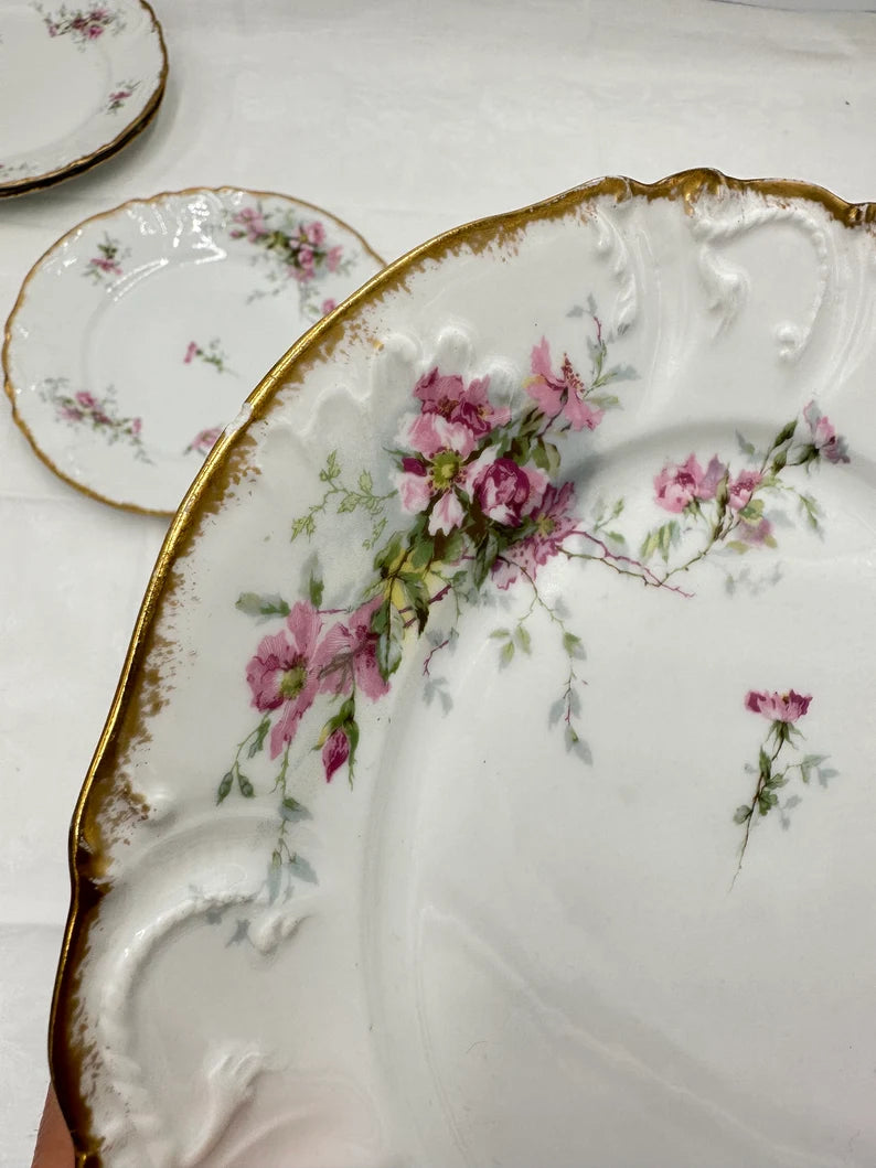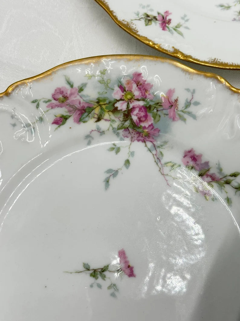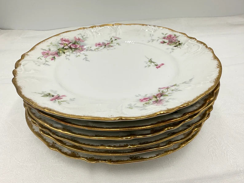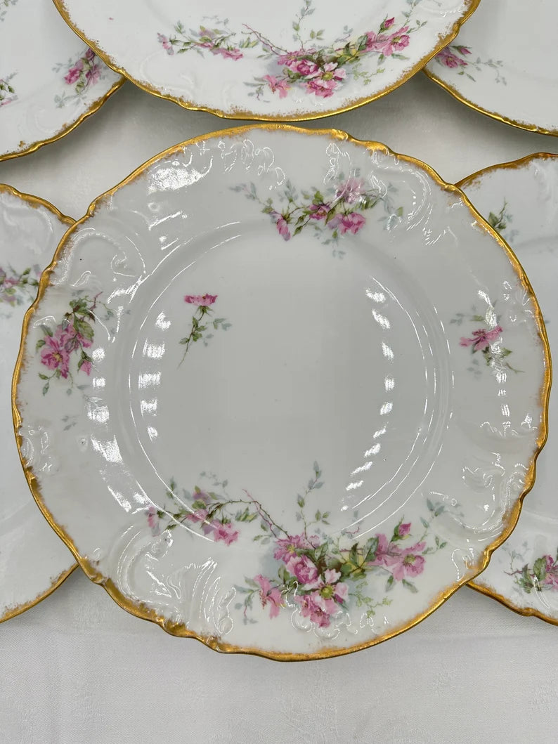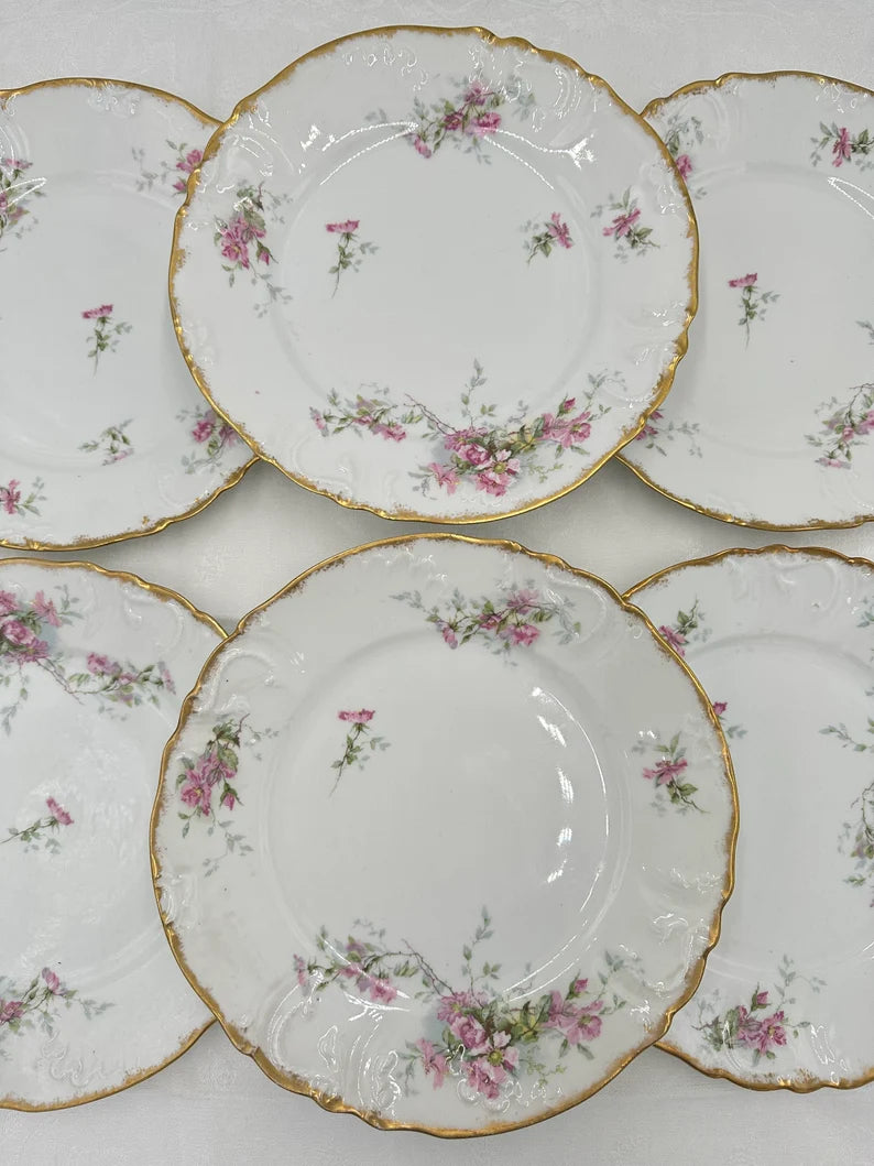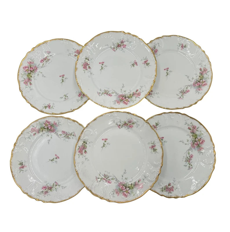 Set of 6 Limoges Porcelain Dinner Plates Pink Roses