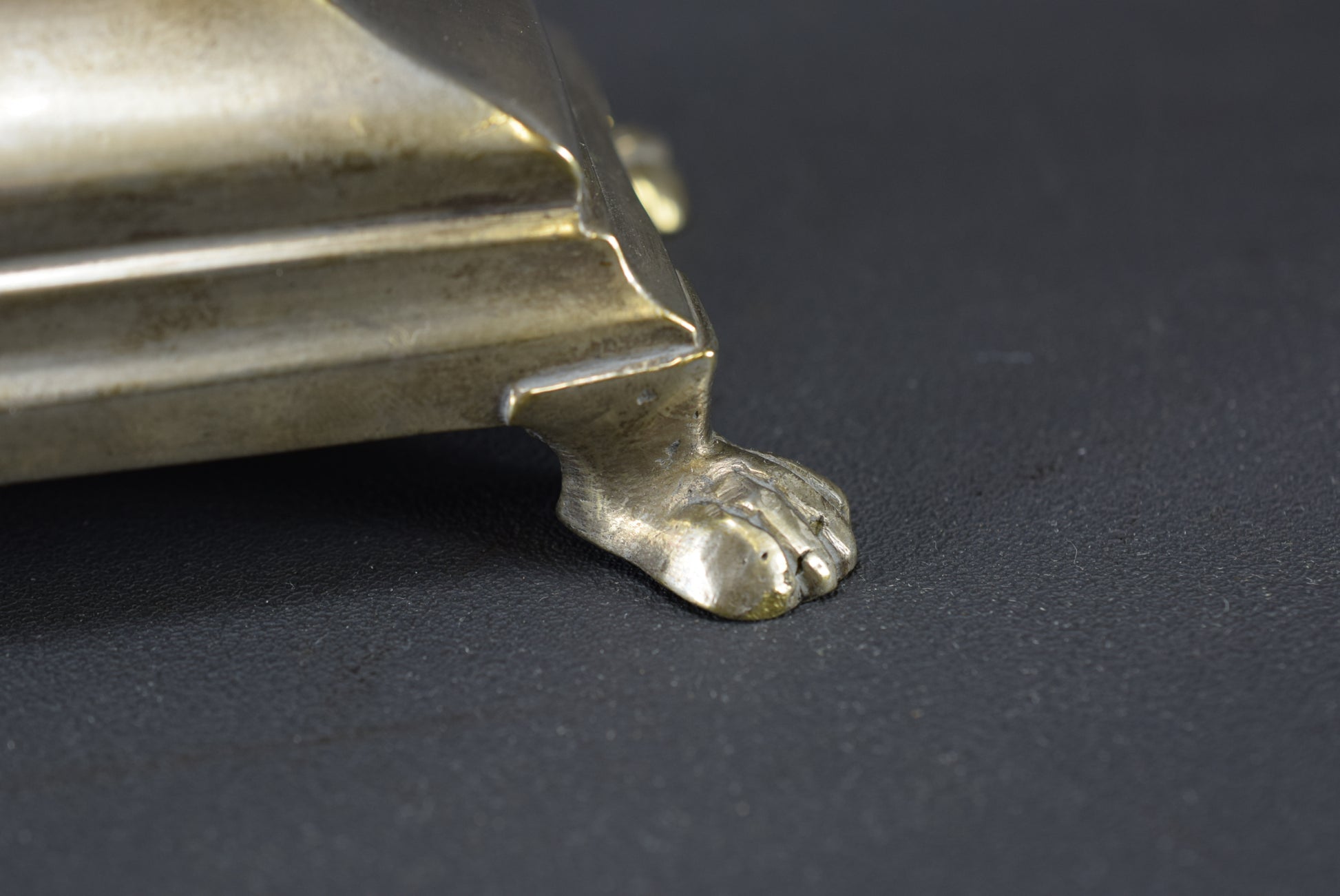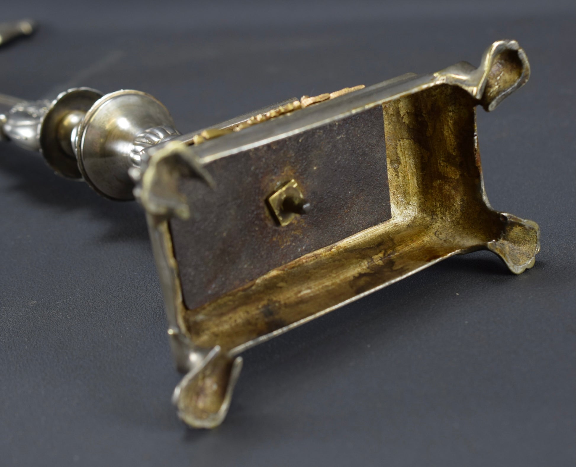 Good antique condition with some normal signs of ages. A crack on one foot. Antique patina. One nail is missing.