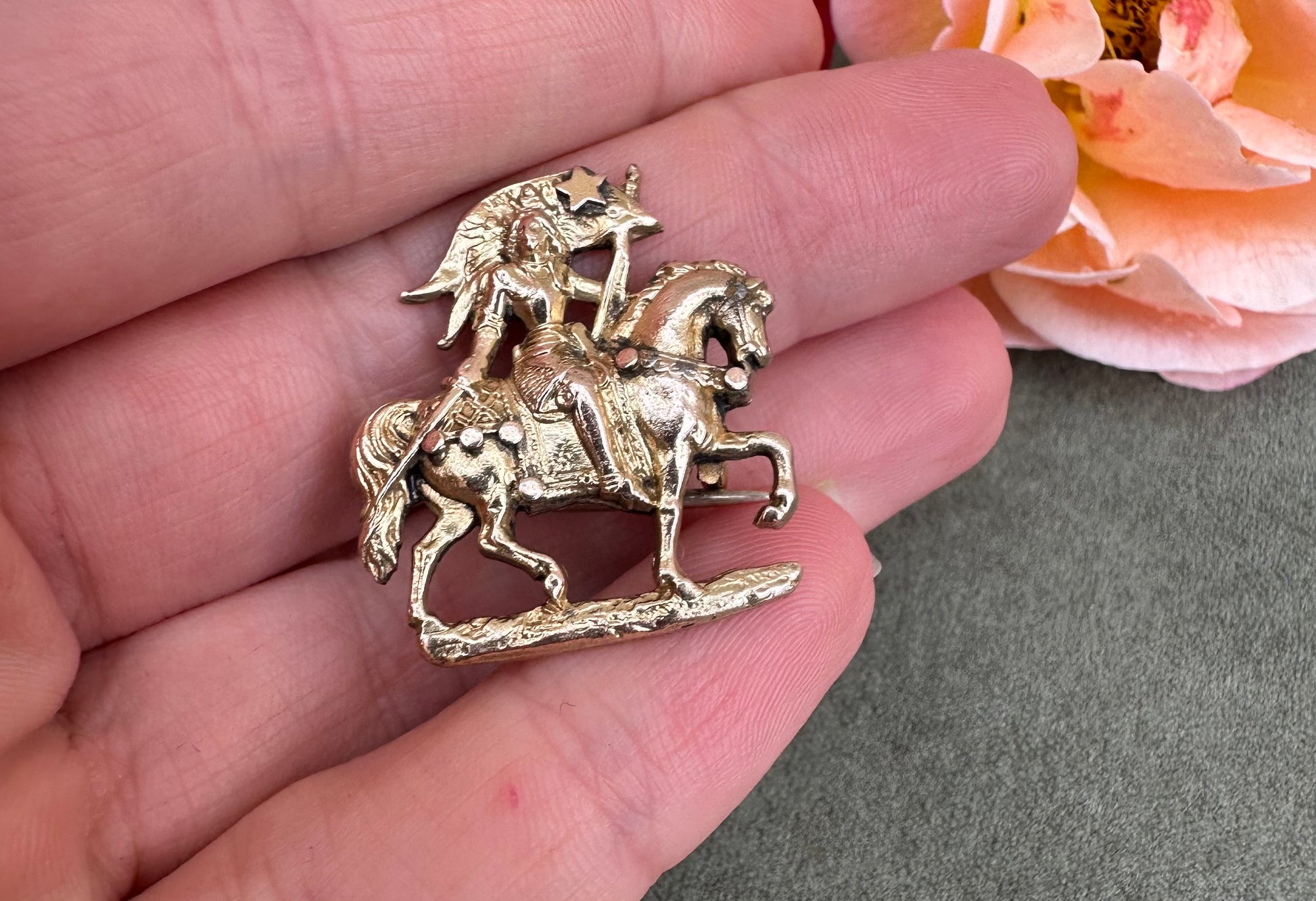 St Joan of Arc on Horseback Brooch