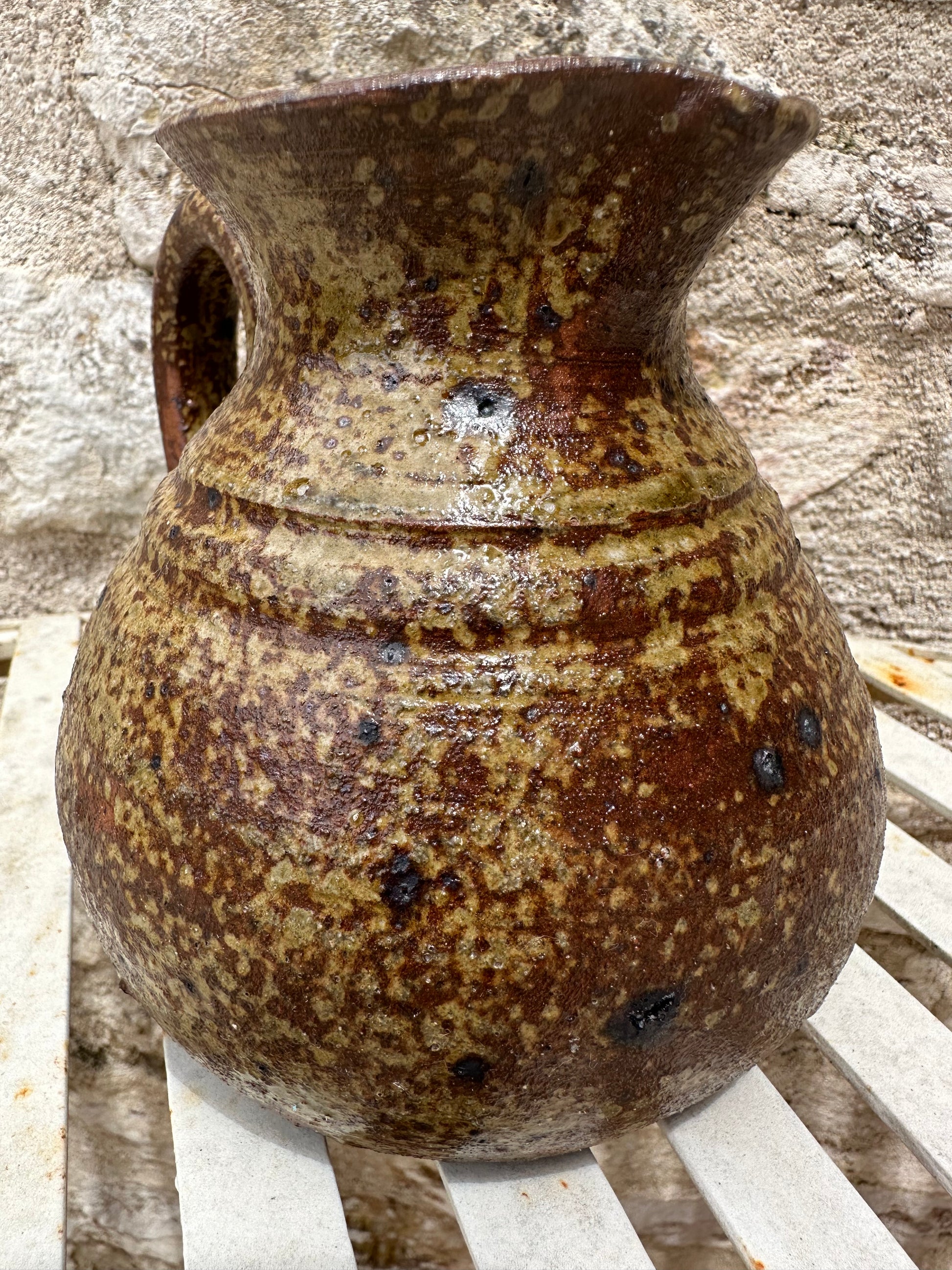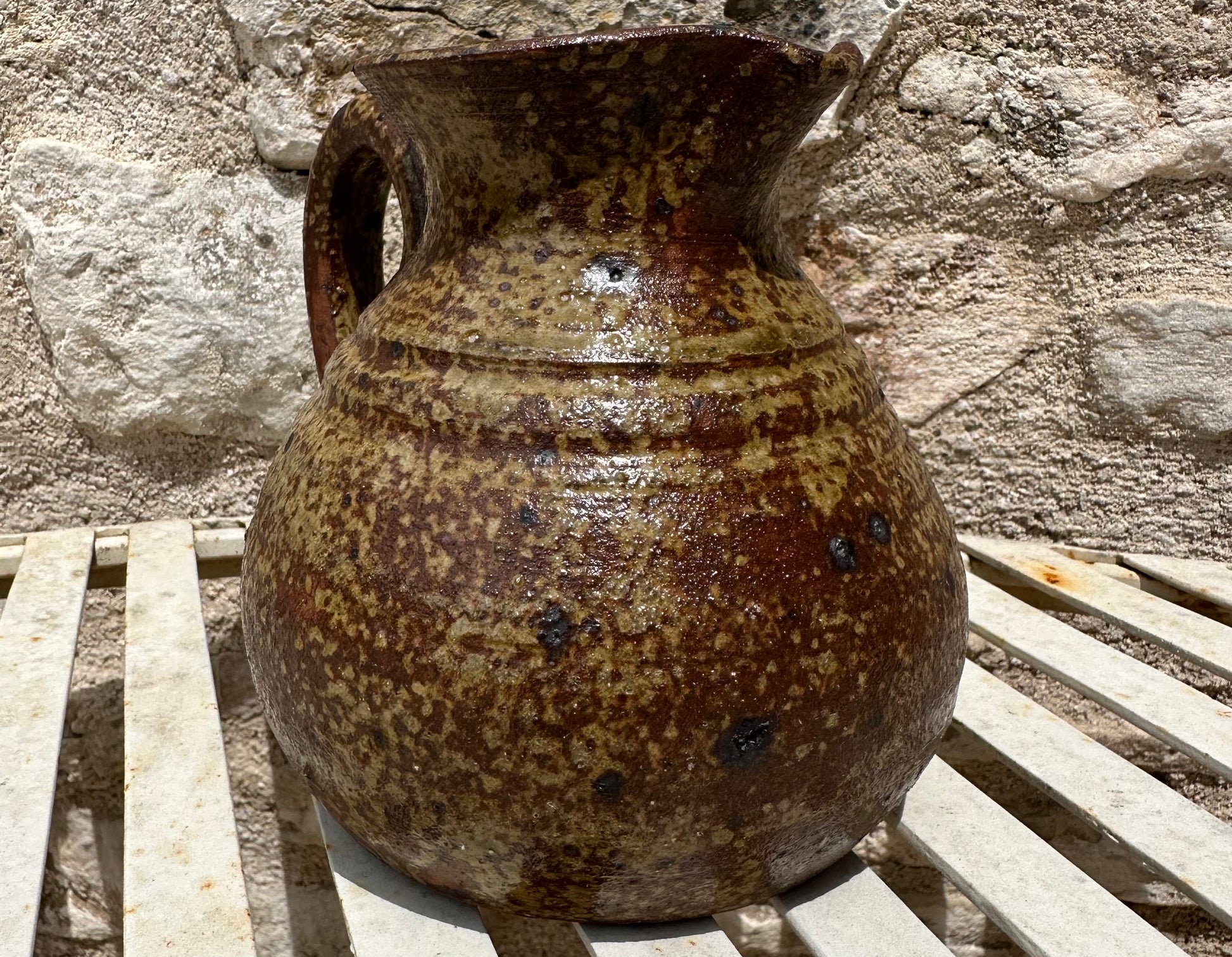 French Stoneware Pottery Pitcher, 1960's Ceramic Pot Vase Laborne Signed F.Baudat