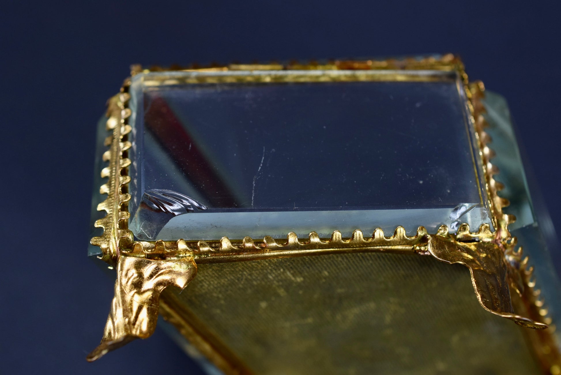 Condition: overall good antique condition with some signs of ages like wears. The lid opens and closes correctly. There are some splinters on the glass panels. Please take a close look at the photos, they are an integral part of the description.